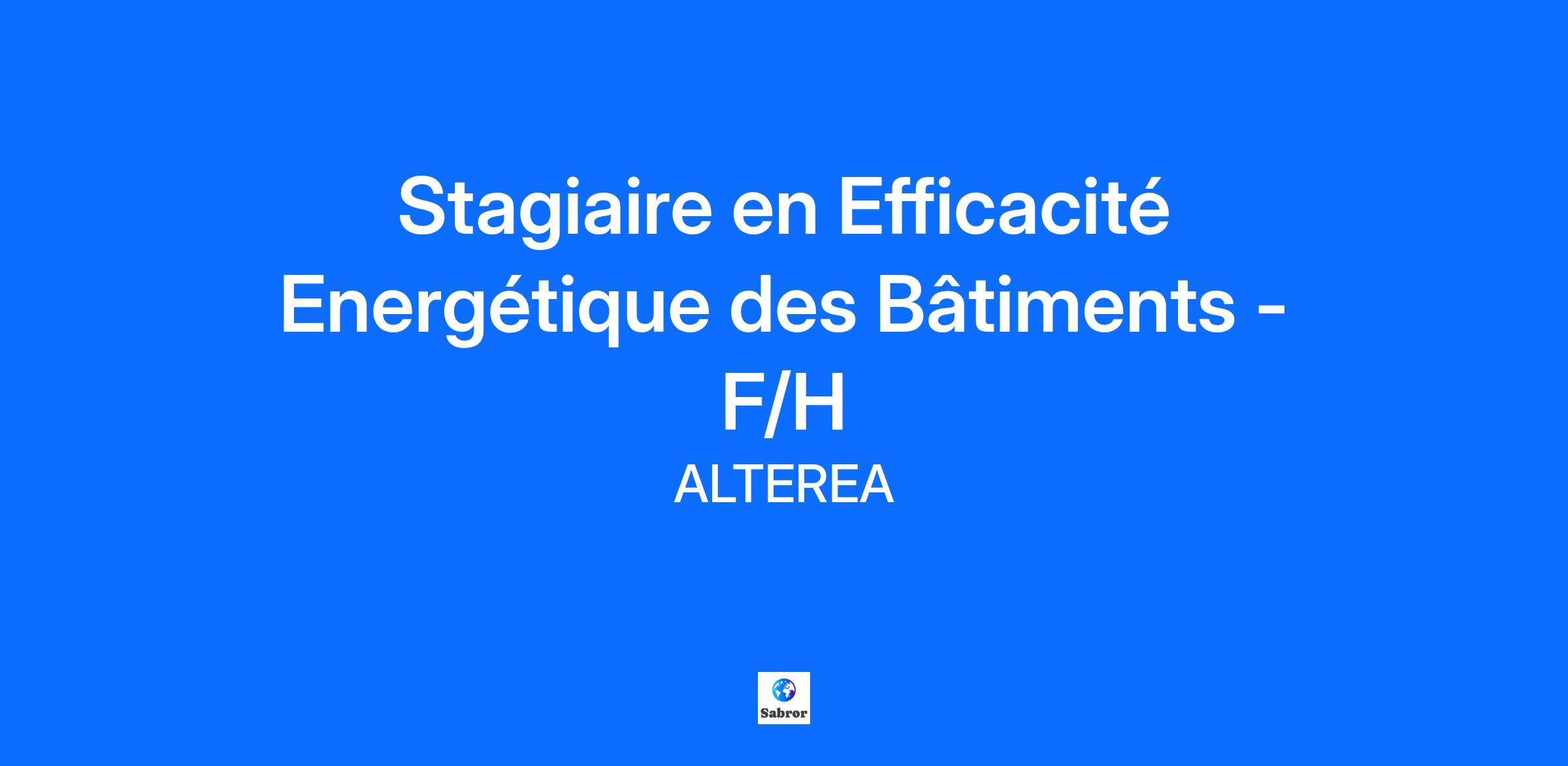 Description de l'entreprise ALTEREA, filiale du Groupe ALTYN, intervient comme ingénieriste TCE pour la transition énergétique, environnementale et numérique des bâtiments et des territoires. Nos équipes de Conseil, Assistance à maîtrise d’ouvrage, Maîtrise d’œuvre et Développement Commercial sont reparties sur le territoire national. ALTEREA affirme ses engagements en faveur de la lutte contre le changement climatique en devenant société à mission depuis juillet 2022. Envie d’en savoir plus ? C’est par ici Description du poste Des missions responsabilisantes… Accompagné/e par un/e Expert/e, vous bénéficiez d’une formation à nos outils et nos process dans le but d’acquérir rapidement de l’autonomie sur des missions diverses : Visites de sites : relevés sur l’enveloppe, les systèmes et prises de mesures Réalisation d’études thermiques, préconisations et chiffrages Rédaction de rapports d’audits énergétiques Réalisation de DPE Réalisation de diagnostics techniques tous corps d’états Quelques exemples de projets : Diagnostics énergétiques de copropriétés, collèges et lycées Etudes de faisabilité en EnR Etudes thermiques règlementaires (TH-CE ex) Mesures et instrumentations sur site (Thermographie infrarouge, mesures des débits de ventilations …) Stage à pourvoir à partir de février 2026 pour une durée de 4 à 6 mois (Flexibilité sur les dates de démarrage) Qualifications Des étudiants passionnés… Etudiant/e en formation bâtiment et idéalement avec une spécialisation en Energie, vous êtes : Attiré/e par le travail en équipe Organisé/e, et rigoureux/se Attiré/e par la réhabilitation et la performance énergétique et environnementale des bâtiments Familier/e du cadre règlementaire de la maîtrise de l'énergie et des outils de calcul réglementaire énergétique A l’aise dans l’utilisation des outils bureautiques traditionnels Informations complémentaires Une fois votre candidature retenue par notre équipe Recrutement, vous êtes contacté/e pour un premier entretien RH. A l'issue de ce premier échange, et si nos attentes communes sont en phase, vous serez alors convié/e à un entretien technique pour rencontrer un/e de nos opérationnels/les afin de discuter ensemble des attentes pour la mission et de votre futur environnement de travail. Expliquez-nous simplement, en quelques lignes, pourquoi vous aimeriez nous rejoindre en joignant votre CV. A très bientôt ! L'équipe Recrutement