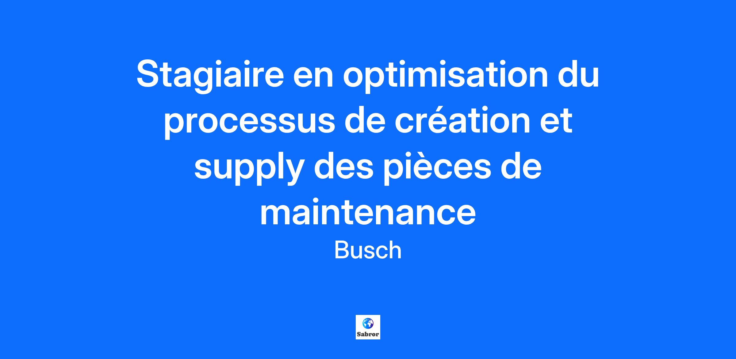 Venez grandir avec nous - Qu'il s'agisse de créer de l'énergie verte, de développer des médicaments qui sauvent des vies ou de permettre la nanotechnologie, l'utilisation intelligente du vide est essentielle pour relever les défis de notre avenir. Aussi diversifié et illimité que l'est le monde du vide, les emplois et les opportunités chez Busch le sont également. C'est la carrière que vous recherchez. Rejoindre l'équipe Busch, c'est travailler dans un environnement familial, rapide et innovant, soutenu par plus de 3500 professionnels dans 44 pays à travers le monde. Nous sommes le premier concepteur et fabricant de pompes à vide et de systèmes industriels. Nous disposons d'une unité de production de classe mondiale, engagée dans notre expansion "Made in America", et nous nous concentrons sur la réalisation de l'usine intelligente de demain. C'est là que notre équipe Lean s'épanouit - en fournissant à nos opérations une vision, des conseils, un soutien et un appui pour le progrès culturel et technique. Vous êtes quelqu'un qui voit les opportunités, qui n'a pas peur de poser des questions, qui aime les défis et qui n'est jamais satisfait. Vous vous concentrez sur la chaîne de valeur, vous savez déceler les gaspillages dans les processus et vous aimez aider les équipes à réussir. Vous êtes naturellement motivé par la curiosité, l'engagement, la conscience professionnelle et la créativité. Description du stage : Au sein du service CMS Support et Service, vous serez en charge de : Faire un audit du processus actuel au sein d’AFS pour la création des pièces de maintenance, leur approvisionnement et la gestion des stocks de sécurité + stockage. Proposer des pistes d’amélioration applicables à AFS. Mettre en place un processus et un workflow adapté au service AFS et plus spécifiquement pour l’équipe CMS Support et Service. Profil recherché : Fin de cursus école d’ingénieur. Master Supply Chain. Ingénierie. Compétences souhaitées : Compétences techniques générales. LEAN. Méthode. Amélioration continue. Langues : Français. Anglais courant (lu, parlé, écrit). Durée du stage : 3 à 4 mois. Tous les candidats qualifiés seront pris en considération pour un emploi sans distinction de race, de couleur, de religion, de sexe, d'orientation sexuelle, d'identité de genre, d'origine nationale ou de handicap.