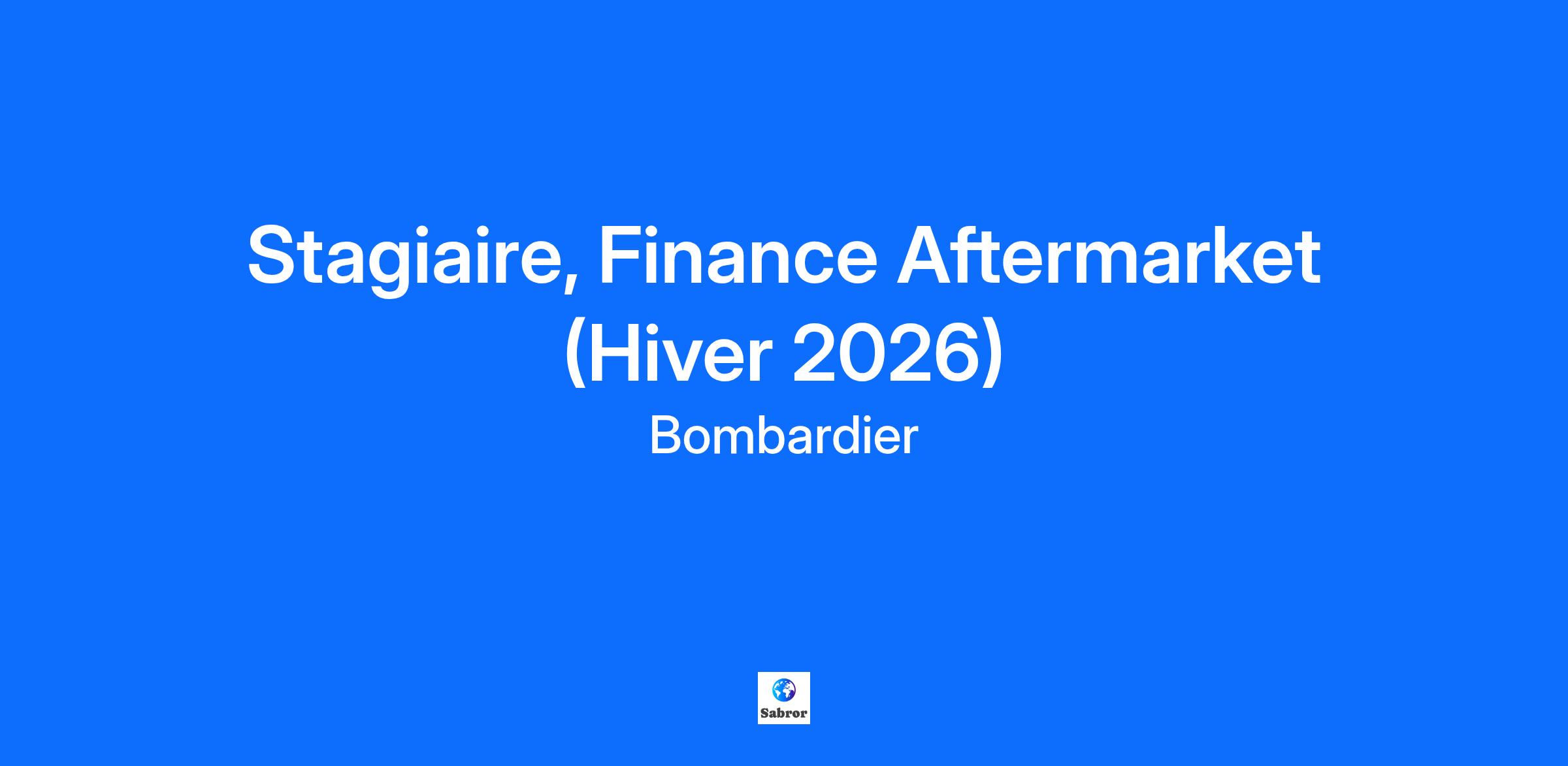 L’innovation est dans notre ADN… est-elle dans le vôtre?Bombardier est un leader mondial de l’industrie de l’aviation en créant des avions novateurs qui changent la donne sur leur marché. Ses produits et services fournissent des expériences de calibre international établissant de nouvelles normes en matière de confort-passager, d’efficacité écoénergétique, de fiabilité et de sécurité. Nous sommes une organisation mondiale axée sur la collaboration et l'esprit d'équipe. Votre billet d’embarquement comprendra… Plusieurs conférences : Rencontrez un.e exécutif.ve Envolée au féminin Apprendre davantage sur Bombardier : Conférence sur Les produits Bombardier Visites des sites Bombardier L’Académie d'apprentissage Bombardier De nombreuses opportunités de réseautage et d'échanges sociaux : Du bénévolat Réseauter pour réussir 5 à 7, repas entre stagiaires, et bien plus encore! Dans le cadre de votre stage, vous contribuerez à: • Supporter une équipe d’analyste financier dans leurs différentes tâches quotidienne, incluant le suivi de projet, des dépenses opérationnelles et la préparation de rapport pour les gestionnaires • Participer activement au processus de régularisation en fin de mois.• Collaborer à la préparation des résultats mensuels de l’équipe de la technologie de l’information.• Contribuer à l’avancement et l’achèvement de projet spéciauxComment vous épanouir dans ce rôle? • Vous étudiez en comptabilité, finance ou administration des affaires • Vous êtes dynamique et faites preuve de débrouillardise.• Vous aimé le travail d’équipe et la collaboration avec plusieurs collègues.• Vous possédez de bonnes aptitudes de communication en français et en anglais.• Vous faites preuve de patience, de persévérance et d’organisation. • Vous possédez une bonne maîtrise d’Excel et de Power Point. Information d’embarquement: Site: Centre Administratif (CA) Durée: 8 mois Travail flexible-Hybride Il est important de noter que nos opportunités de stage sont ouvertes aux étudiants et non aux nouveaux gradués. Tous nos stagiaires peuvent être appelés à voyager occasionnellement à l'extérieur du Canada pour des raisons de formation ou de travail.