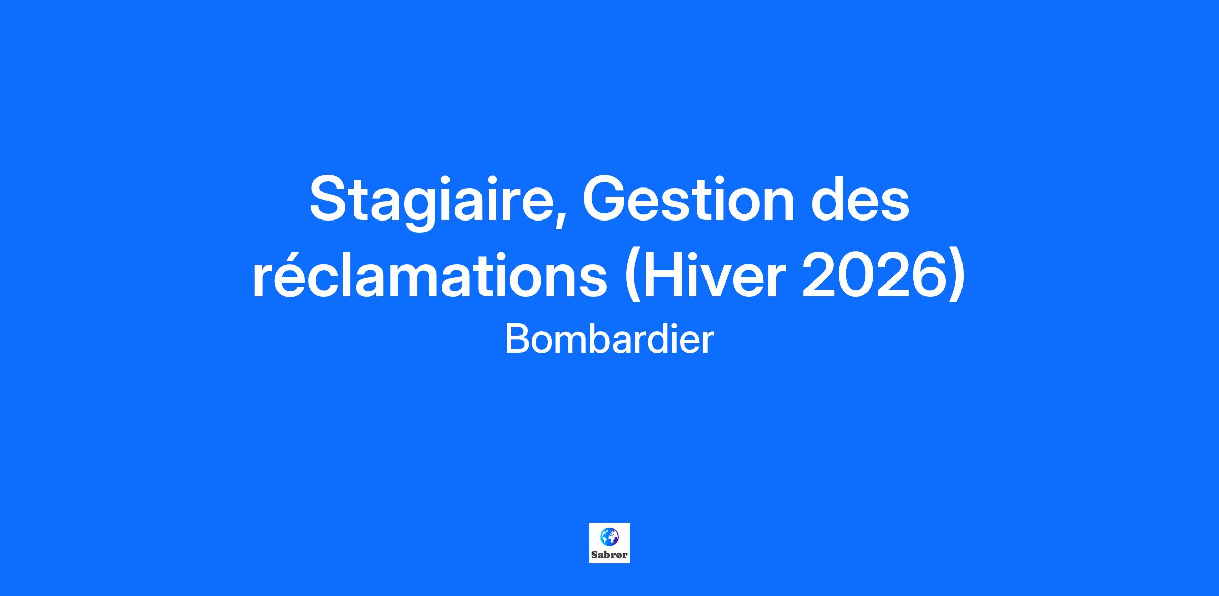 L’innovation est dans notre ADN… est-elle dans le vôtre?Bombardier est un leader mondial de l’industrie de l’aviation en créant des avions novateurs qui changent la donne sur leur marché. Ses produits et services fournissent des expériences de calibre international établissant de nouvelles normes en matière de confort-passager, d’efficacité écoénergétique, de fiabilité et de sécurité. Nous sommes une organisation mondiale axée sur la collaboration et l'esprit d'équipe. Votre billet d’embarquement comprendra… Plusieurs conférences : Rencontrez un.e exécutif.ve Envolée au féminin Apprendre davantage sur Bombardier : Conférence sur Les produits Bombardier Visites des sites Bombardier L’Académie d'apprentissage Bombardier De nombreuses opportunités de réseautage et d'échanges sociaux : Du bénévolat Réseauter pour réussir 5 à 7, repas entre stagiaires, et bien plus encore! Quelles sont vos contributions envers l’équipe? Fournir un soutien au gestionnaire des réclamations dans la gestion quotidienne des dossiers liés aux différents programmes de compensation ; Participer à des projets et à des réunions concernant la gestion des réclamations ; Travailler en étroite collaboration avec le Service médical, les Ressources humaines et les représentants syndicaux afin de s'assurer que les dossiers sont transmis aux autorités compétentes et traités dans les délais prescrits ; Produire divers rapports et apporter un soutien aux tâches administratives ; Fournir toutes les informations nécessaires au service de la paie ; Effectuer diverses transactions dans nos systèmes et assurer la mise à jour des données. Développer ses connaissances des différents régimes de compensation ainsi que ses compétences analytiques et de suivi en gestion de l'invalidité ; Développer ses connaissances de différentes applications/logiciels tels que divers systèmes RH/Paie et la plateforme CNESST ; Participer aux enquêtes sur les dossiers CNESST et aux évaluations ergonomiques des postes. Comment vous épanouir dans ce rôle? Vous poursuivez un baccalauréat en gestion des ressources humaines ou en relations industrielles ; Vous êtes un joueur d’équipe hautement motivé avec d’excellentes compétences en communication (orale et écrite). Vous êtes une personne rigoureuse et attentive aux détails ; Vous maîtrisez parfaitement la suite Office, et en particulier le logiciel Excel ; Vous êtes une personne organisée et structurée ; Vous êtes capable de maintenir une stricte confidentialité. Information d’embarquement: Site: Marcel-Laurin Plant 1 Durée: 12 mois Travail flexible-Hybride Il est important de noter que nos opportunités de stage sont ouvertes aux étudiants et non aux nouveaux gradués. Tous nos stagiaires peuvent être appelés à voyager occasionnellement à l'extérieur du Canada pour des raisons de formation ou de travail.