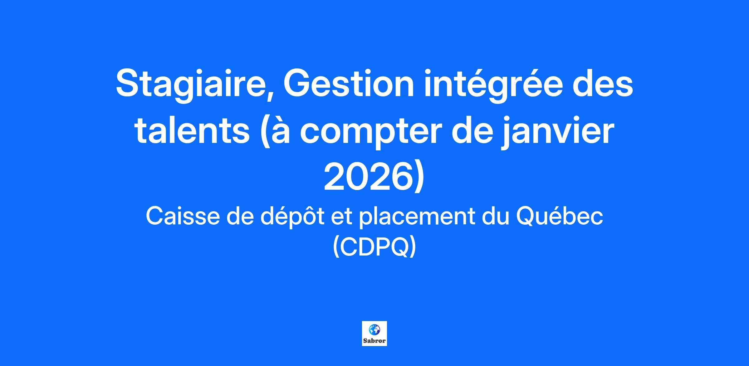 Become invested in the community! Join a global investment group and take pride in helping build a sustainable future. At La Caisse: We value your unique contribution to a world-class team. We give you work that allows you to flourish and excel. We offer opportunities to learn from experts who generously share their knowledge. We are fully invested so that you can fulfil our mission every day. Over the years, we have built a strong culture based on four pillars: ambition to push ourselves further, accountability to bring our convictions to life, openness to grow through creative ideas, and collaboration to drive us toward the best outcomes. Job Description Stage de six (6) mois - Janvier à juillet 2026 Vous voulez contribuer à façonner l’avenir de la gestion de talents dans une organisation dynamique ? Joignez-vous à notre équipe pour un stage stimulant où vous pourrez mettre à profit votre passion pour développer le plein potentiel des employé.e.s. Ce stage vous permettra de développer une compréhension approfondie des stratégies de gestion des talents, d’acquérir une expérience concrète en gestion de projet, et de collaborer avec des équipes multidisciplinaires. La personne occupant ce poste, soutient l’équipe Gestion intégrée des talents dans différentes sphères d’activités : incluant le développement du leadership, la gestion de la performance et de la relève, les activités de développement des compétences, l’évaluation des programmes, ainsi que d’autres projets connexes. Ce que vous ferez Contribuer à une variété de projets liés au développement du leadership, à la gestion de la performance et de la relève et au transfert des apprentissages ; Soutenir l’équipe dans la vigie des meilleures pratiques, la préparation de présentations, l’architecture et la mise en œuvre de nos activités ; Mettre en place des indicateurs de mesure d’impact de nos programmes de gestion des talents (collecte de données, analyse, recommandations) ; Prendre en charge des livrables de projets (ex. : design de programmes de formation, recommandations sur des contenus, outils pour soutenir l’évolution de notre modèle de service). Ce que vous apprendrez : Les fondements de la gestion intégrée des talents dans un contexte organisationnel complexe ; Comment structurer et piloter des projets RH à impact stratégique ; Les meilleures pratiques en matière de développement du leadership, de gestion de la performance et de la relève ; L’analyse de données RH pour évaluer l’impact des programmes et formuler des recommandations. Ce qui vous distingue Esprit analytique, rigueur et résolution de problème ; Gestion des priorités et projets ; Sens de l’initiative et de l’autonomie ; Excellentes habiletés en communication écrite et orale. Ce que vous apportez Études universitaires de deuxième ou de troisième cycle en développement organisationnel, en psychologie du travail ou dans tout autre domaine pertinent ; Excellent dossier académique ; Habileté de recherche ; Maîtrise de la Suite Office, notamment de Powerpoint ; Connaissances en intelligence artificielle (IA), un atout ; Excellente maîtrise du français, tant à l’oral qu’à l’écrit. #LI-DNI Feeling that my role is important. Having fun every day. Growing in step with my ambitions. Earning compensation that reflects my contribution. That’s the professional experience La Caisse offers! We carefully review each application and directly contact those selected for an interview. La Caisse offers equal employment opportunities to everyone. Women, visible/ethnic minorities, Indigenous people and individuals with disabilities are all encouraged to apply. If you’re interested in this job but you don’t meet all the criteria, apply anyway! La Caisse is also committed to promoting equity, diversity and inclusion as key values and sees them as a source of enrichment and pride for all its employees. Please let us know if you require adopted measures for the recruiting process. La Caisse represents the Caisse de dépôt et placement du Québec and its subsidiaries. We are a leading global institutional asset manager. We invest in major financial markets and the principal asset classes. To carry out our mission, we have teams of experts recruited from among the best in Quebec and around the world.