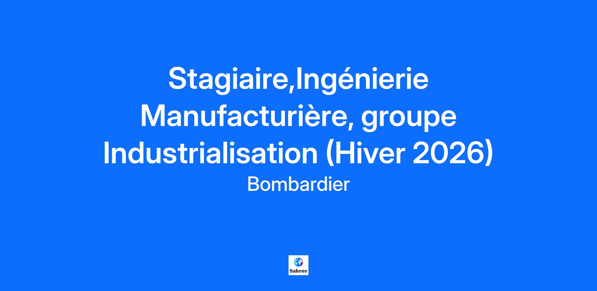 L’innovation est dans notre ADN… est-elle dans le vôtre?Bombardier est un leader mondial de l’industrie de l’aviation en créant des avions novateurs qui changent la donne sur leur marché. Ses produits et services fournissent des expériences de calibre international établissant de nouvelles normes en matière de confort-passager, d’efficacité écoénergétique, de fiabilité et de sécurité. Nous sommes une organisation mondiale axée sur la collaboration et l'esprit d'équipe. Votre billet d’embarquement comprendra… Plusieurs conférences : Rencontrez un.e exécutif.ve Envolée au féminin Apprendre davantage sur Bombardier : Conférence sur Les produits Bombardier Visites des sites Bombardier L’Académie d'apprentissage Bombardier De nombreuses opportunités de réseautage et d'échanges sociaux : Du bénévolat Réseauter pour réussir 5 à 7, repas entre stagiaires, et bien plus encore! Vos contributions à l’équipe: Supporter les tests d’acceptance de machines : Collaborer avec les équipes de production et projet pour planifier et réaliser les tests d’acceptance. Documenter les procédures de test, collecter et analyser les données afin d’évaluer la conformité des machines vis-à-vis des spécifications techniques désignées. Participer à l’identification des non-conformités et à la mise en place de mesures correctives. Supporter l’implantation de différents projets : Collecter des données sur les performances des machines et des processus, et réaliser des analyses statistiques. Contribuer à la rédaction de rapports d’analyse et formuler des recommandations basées sur les résultats. Aider à la rédaction et à la mise à jour des documents de qualification selon les requis établis. Assurer la traçabilité des documents et leur conformité avec les exigences qualité de l’entreprise. Communiquer les résultats sous forme de documents techniques et de présentations. Ce que vous apprendrez: La chaine de valeur de Bombardier. Travailler avec des professionnels de haut niveau à assurer la conformité de nos machines manufacturières. Le domaine aéronautique. Comment vous épanouir dans ce rôle: Compétences techniques : Connaissances générales en aéronautiques. Fort esprit analytique, capable de comprendre des requis techniques pour les appliquer sur un procédé manufacturier. Compétences analytiques : Capacité à analyser des données, à résoudre des problèmes complexes et à proposer des solutions innovantes. Compétences interpersonnelles : Bonnes aptitudes à la communication, sens du travail en équipe et capacité d’adaptation dans un environnement dynamique ainsi qu’un environnement de production. Informatique : Maîtrise de la suite office (MS Office), et outils d’analyse de données (Excel, Minitab (atout) ), Catia V5 (atout) ou autres logiciels de CAO. Être en mesure de travailler en français et et en anglais au quotidien. Information d’embarquement: Site: Marcel-Laurin Plant 1 Durée: 8 mois Travail flexible-Hybride Il est important de noter que nos opportunités de stage sont ouvertes aux étudiants et non aux nouveaux gradués. Tous nos stagiaires peuvent être appelés à voyager occasionnellement à l'extérieur du Canada pour des raisons de formation ou de travail.