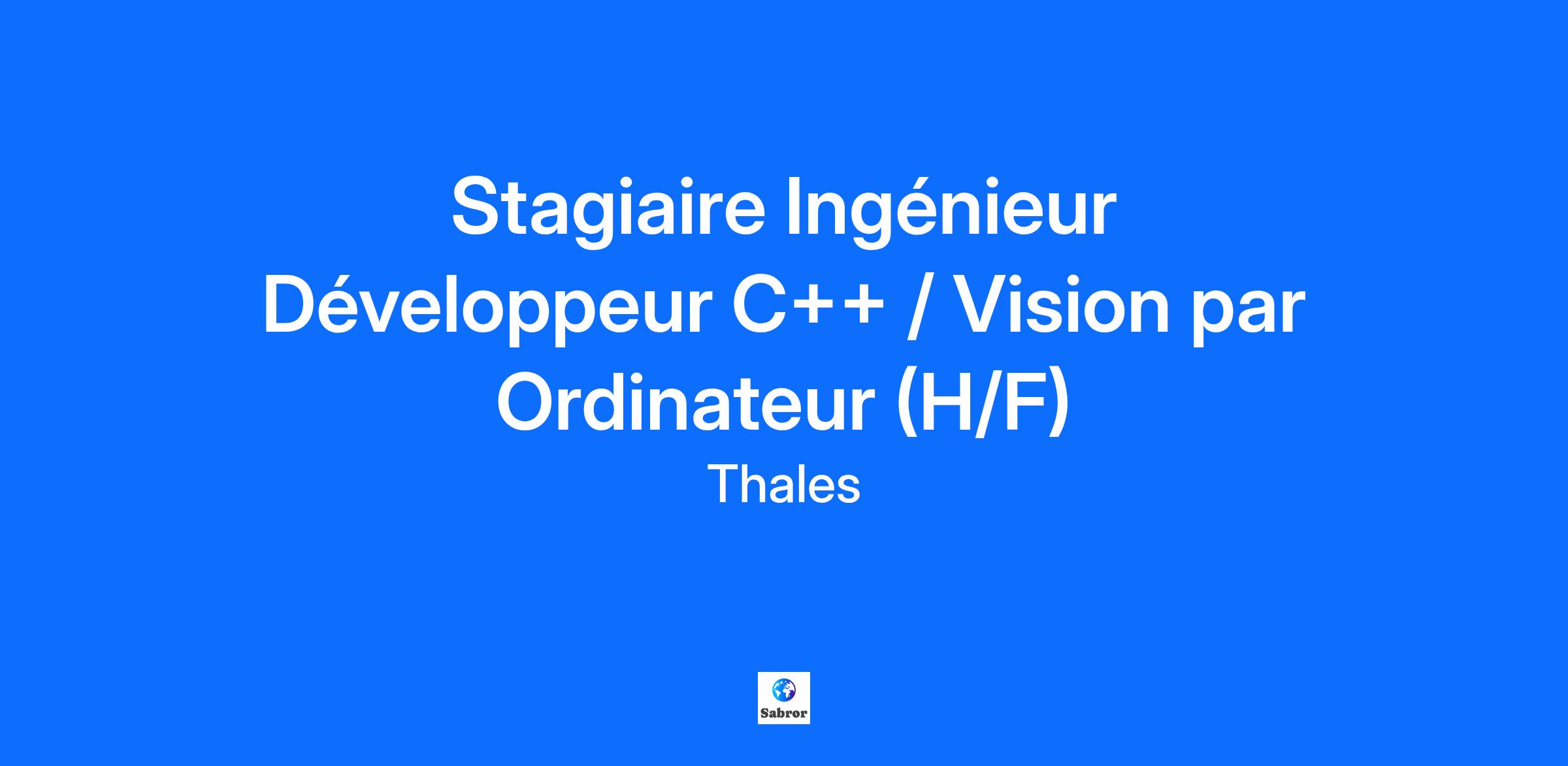 Lieu : Cergy, France Construisons ensemble un avenir de confiance Thales est un leader mondial des hautes technologies spécialisé dans trois secteurs d’activité : Défense & Sécurité, Aéronautique & Spatial, et Cyber & Digital. Il développe des produits et solutions qui contribuent à un monde plus sûr, plus respectueux de l’environnement et plus inclusif. Le Groupe investit près de 4 milliards d’euros par an en Recherche & Développement, notamment dans des domaines clés de l’innovation tels que l’IA, la cybersécurité, le quantique, les technologies du cloud et la 6G. Thales compte près de 81 000 collaborateurs dans 68 pays. Nos engagements, vos avantages Notre savoir-faire technologique Notre attention portée à l’équilibre des collaborateurs Un environnement inclusif et bienveillant Un engagement sociétal et environnemental reconnu (Thales Solidarity, indice CAC 40 ESG…) Votre quotidien A Cergy, vous contribuez aux systèmes d’entraînement et de simulation parmi les plus sophistiqués au monde. Vous rêvez de piloter hélicoptères, avions de chasse ou véhicules blindés ? Rejoignez-nous et relevez les défis des domaines aérien, terrestre, et naval ! Rejoignez Thales, leader mondial des technologies de sûreté et de sécurité pour les marchés de l’Aérospatial, du Transport, de la Défense et de la Sécurité. Fort de 62 000 collaborateurs dans 56 pays, le Groupe bénéficie d’une implantation internationale qui lui permet d’agir au plus près de ses clients, partout dans le monde. Au sein du Centre de Compétences Training et Simulation, vous intégrez le service 3D immersion. Ce service de 25 personnes orienté Produits et Composants développe les logiciels permettant de créer l’environnement virtuel 3D immergeant les entrainés que sont des pilotes d’hélicoptères, d’avions, ou de véhicules terrestres. Dans le cadre du développement de ses activités, TTS recherche un(e) Stagiaire Ingénieur Développeur C++ / Vision par Ordinateur (H/F) basé(e) à Osny, Ile de France. Vos missions : Thales développe ses propres casques de réalité augmentée (projection d’une image sur une surface semi réfléchissante). Avant d’arriver sur la lame semi réfléchissante, l’image est déformée par divers systèmes optiques. Pour chaque casque, il faut trouver la déformation inverse afin que l’image affichée corresponde point par point à l’objet réel à projeter. Cette opération est actuellement effectuée à la main à l’aide d’un banc de calibration en déplaçant les points de contrôle d’une spline 2D qui sont projetés sur la lame semi réfléchissante du casque et qui doivent correspondre aux points de référence non déformés affichés sur l’écran du banc. L’objectif de ce stage est d’automatiser cette étape. À partir du banc déjà existant, l’objectif est de créer un algorithme capable de détecter les points sur les images casques et écran, puis de les aligner tout en considérant les possibles écarts d’alignement entre les différents éléments, à savoir l’écran du banc, la lame semi réfléchissante du casque et les caméras d’observation. Le réglage comporte plusieurs étapes (pré-alignement, rotation, mesure …) que le stagiaire devra maitriser et reproduire dans son développement. Cet algorithme s’intègrera au logiciel déjà existant pour en faire une version améliorée. Votre profil : De formation Bac +5 en école d'ingénieur, avec une spécialisation en informatique. Compétences clés attendues : Développement C++/Python Optique géométrique Vision par ordinateur Compétences appréciées : Connaissance OpenCV Environnements GIT Compilation / Construction de code / Intégration continue Vous êtes reconnu(e) pour votre sens de l’organisation et votre excellent relationnel, et savez faire preuve d’autonomie. Rigoureux(se) et doté(e) d’un bon esprit de synthèse, vous êtes capable de gérer vos missions avec efficacité et clarté. Mot du manager : La perspective de rejoindre les activités de simulation vous motive ? Alors rejoignez-nous en postulant à cette offre ! Tous nos stages sont conventionnés et soumis à une gratification dont le montant est déterminé selon votre niveau d’études. Thales, entreprise Handi-Engagée, reconnait tous les talents. La diversité est notre meilleur atout. Postulez et rejoignez nous !