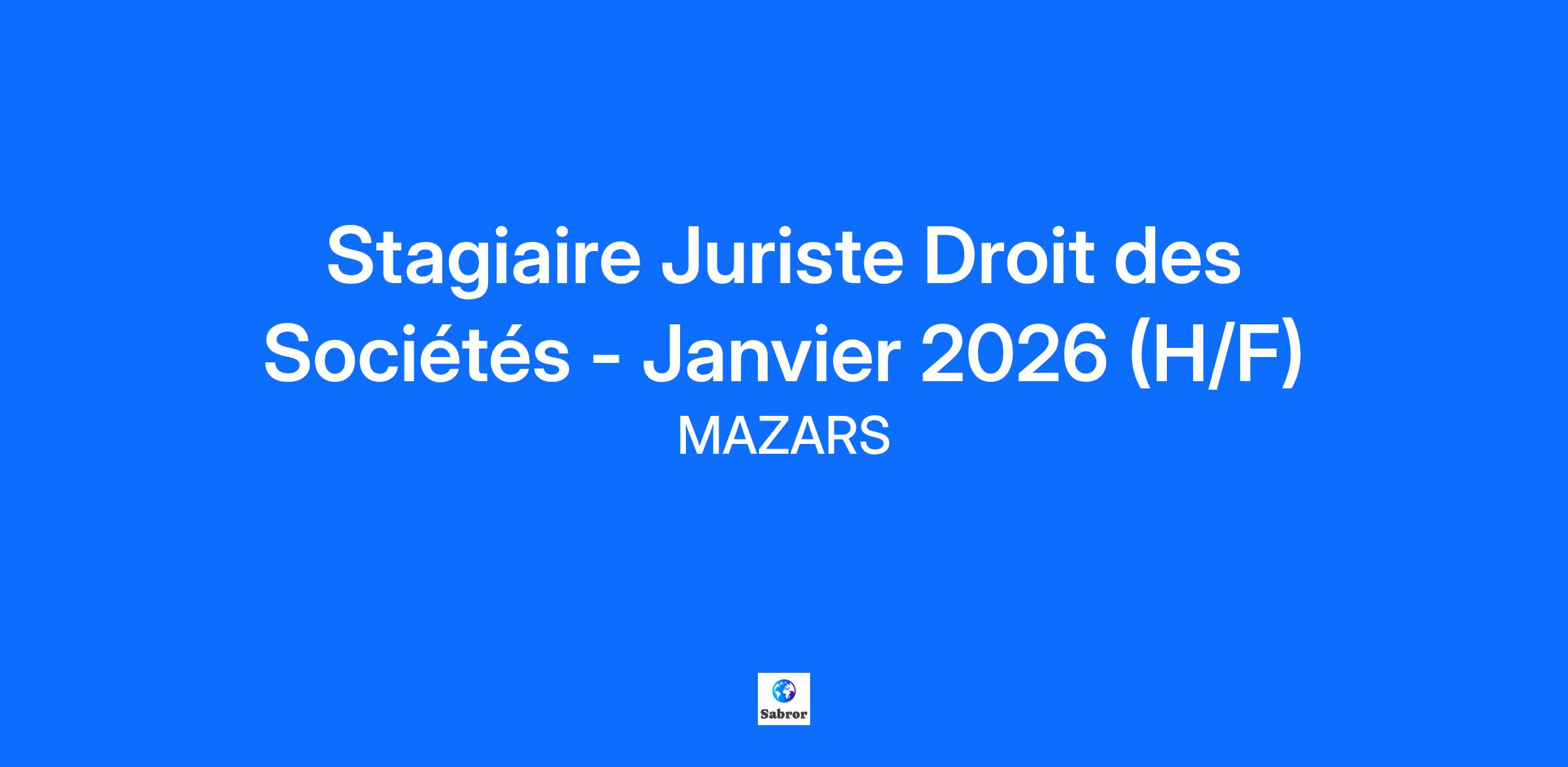 Stagiaire Juriste Droit des Sociétés - Janvier 2026 (H/F)