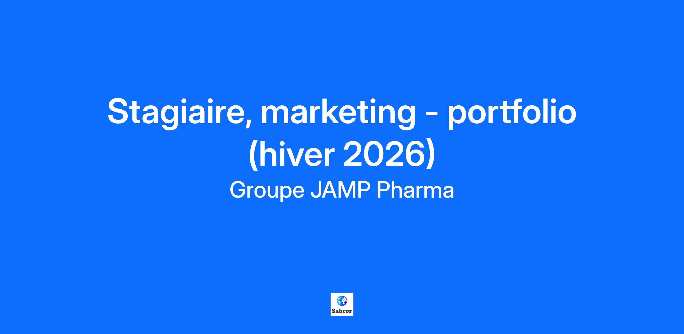 Nous recrutons un(e) Stagiaire, Marketing – Portfolio Depuis plus de 35 ans, nous sommes engagés à soutenir les professionnels de la santé afin qu’ils puissent se concentrer sur le plus important : le bien être des Canadiens. Transformez vos études et combinez vos connaissances à nos ambitions ! Nous sommes à la recherche d'un(e) étudiant(e) en cours de formation en marketing, administration des affaires ou dans un domaine connexe pour compléter un stage dans notre département Marketing. Ce que nous vous offrons : Une expérience professionnelle enrichissante au sein d'une entreprise dynamique; L'opportunité de mettre en pratique vos connaissances théoriques; Un encadrement personnalisé par un professionnel expérimenté. Sous la responsabilité de la directrice principale, marketing et communications, le(la) stagiaire, marketing – portfolio assurera la mise en œuvre de certaines tâches liées aux lancements de produits, à la distribution optimale des nouveaux outils marketing destinés à la force de vente, ainsi qu’à la réalisation d’analyses de marché et de veilles concurrentielles dans le secteur des médicaments génériques. De plus, la personne participera au processus de lancement de nouveaux produits et apportera le soutien nécessaire à l’équipe marketing – portfolio pour leur commercialisation. Ce que vous ferez au quotidien : Suivi des lancements de produits : Production hebdomadaire du rapport de mise à jour des lancements et élaboration des analyses « Trade Dress »; Gestion des envois pour la force de vente : Préparation d’échantillons, d’outils marketing, et envois mensuels de courriels de couvertures provinciales; Analyse de performance : Analyse hebdomadaire des rapports de BO avec synthèse des points clés pour les chefs de produits; Support aux rencontres des ventes : Contribution à la préparation des présentations et au développement des outils de formation (anglais requis, car nous avons des équipes de ventes hors Québec); Veille concurrentielle : Recherche, suivi des tendances du marché générique, et présentations sur les activités de la concurrence; Analyse de marché et portefeuille : Participation aux analyses de portefeuille et projets liés à l’offre concurrentielle. Vous vous démarquerez grâce aux compétences suivantes : Maîtrise de MS Office (Word, Outlook, Excel, PowerPoint); Rigueur, organisation et sens des responsabilités; Expérience en pharmacie (ATP) sera considéré comme un atout. Ce stage est une excellente occasion de découvrir les rouages de l'entreprise et du service marketing, de développer votre réseau professionnel et d'acquérir une première expérience en entreprise. Le Groupe JAMP Pharma souscrit au principe de l’égalité à l’emploi et favorise un milieu de travail équitable, diversifié et inclusif.