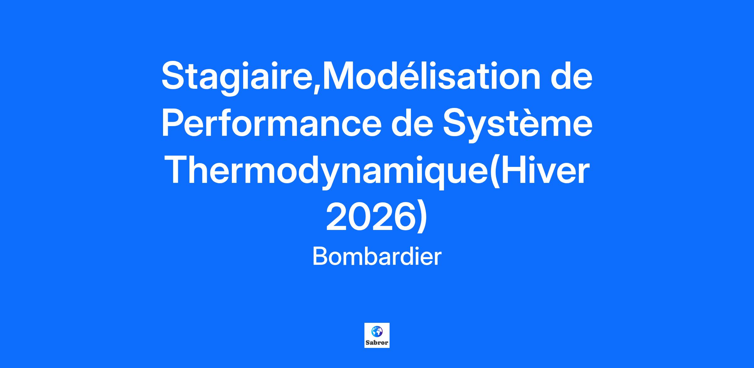 Stagiaire,Modélisation de Performance de Système Thermodynamique(Hiver 2026)