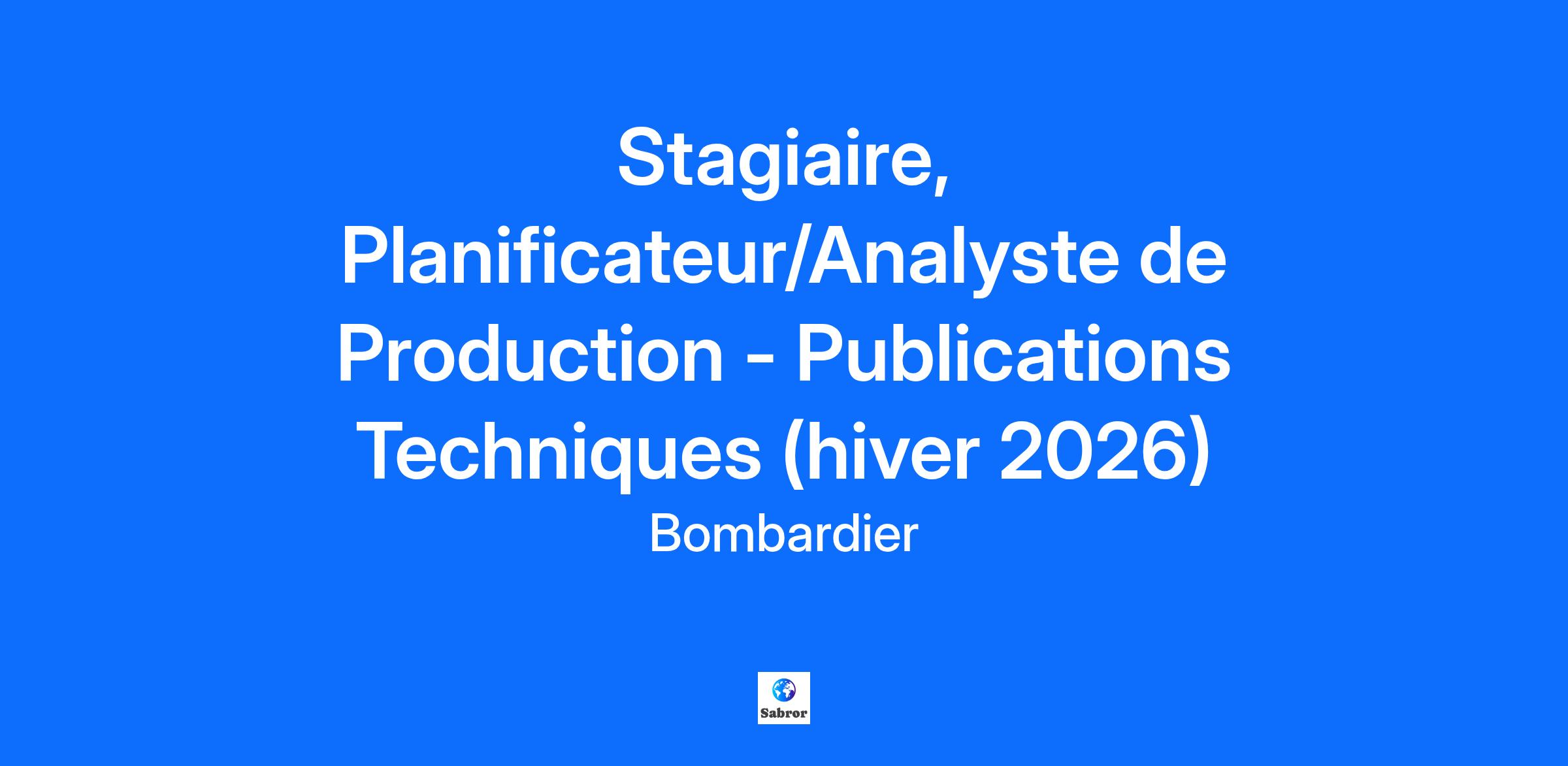L’innovation est dans notre ADN… est-elle dans le vôtre?Bombardier est un leader mondial de l’industrie de l’aviation en créant des avions novateurs qui changent la donne sur leur marché. Ses produits et services fournissent des expériences de calibre international établissant de nouvelles normes en matière de confort-passager, d’efficacité écoénergétique, de fiabilité et de sécurité. Nous sommes une organisation mondiale axée sur la collaboration et l'esprit d'équipe. Votre billet d’embarquement comprendra… Plusieurs conférences : Rencontrez un.e exécutif.ve Envolée au féminin Apprendre davantage sur Bombardier : Conférence sur Les produits Bombardier Visites des sites Bombardier L’Académie d'apprentissage Bombardier De nombreuses opportunités de réseautage et d'échanges sociaux : Du bénévolat Réseauter pour réussir 5 à 7, repas entre stagiaires, et bien plus encore! Quelles sont vos contributions envers l’équipe? Par un suivi actif, assurez-vous que les modifications apportées aux méthodes de production de Bombardier Partner sont conformes au plan directeur Veiller à ce que la planification de la ligne de production du partenaire soit équilibrée pour prendre en charge la configuration de livraison des avions de nos publications. Documenter et communiquer les processus de production, mettre en place les changements requis à notre département de Publications Techniques, par des processus et des méthodes de travail en fonction des principes d'amélioration continue et de "Lean manufacturing". Identifier la résolution des problèmes depuis l'identification des causes profondes jusqu'à la mise à jour de la résolution avec les parties prenantes concernées. Effectuer des tâches administratives pour appuyer les activités des publications techniques au besoin Comment vous épanouir dans ce rôle? Vous complétez présentement un Baccalauréat en, ou vue d’obtenir un diplôme de premier cycle universitaire en gestion, en Engineering ou en administration des affaires. Vous avez un fort sens analytique. Vous avez des excellentes habiletés de présentation des données. Vous avez une solide connaissance dans la suite Microsoft Office dont Word, Excel et Powerpoint. Vous avez une connaissance de l’industrie aérospatiale est un atout. Ce poste est à temps plein, 40 heures par semaine, pour la durée du stage Information d’embarquement: Site: Centre Administratif (CA) Durée: 4 mois Travail flexible-Hybride Il est important de noter que nos opportunités de stage sont ouvertes aux étudiants et non aux nouveaux gradués. Tous nos stagiaires peuvent être appelés à voyager occasionnellement à l'extérieur du Canada pour des raisons de formation ou de travail.