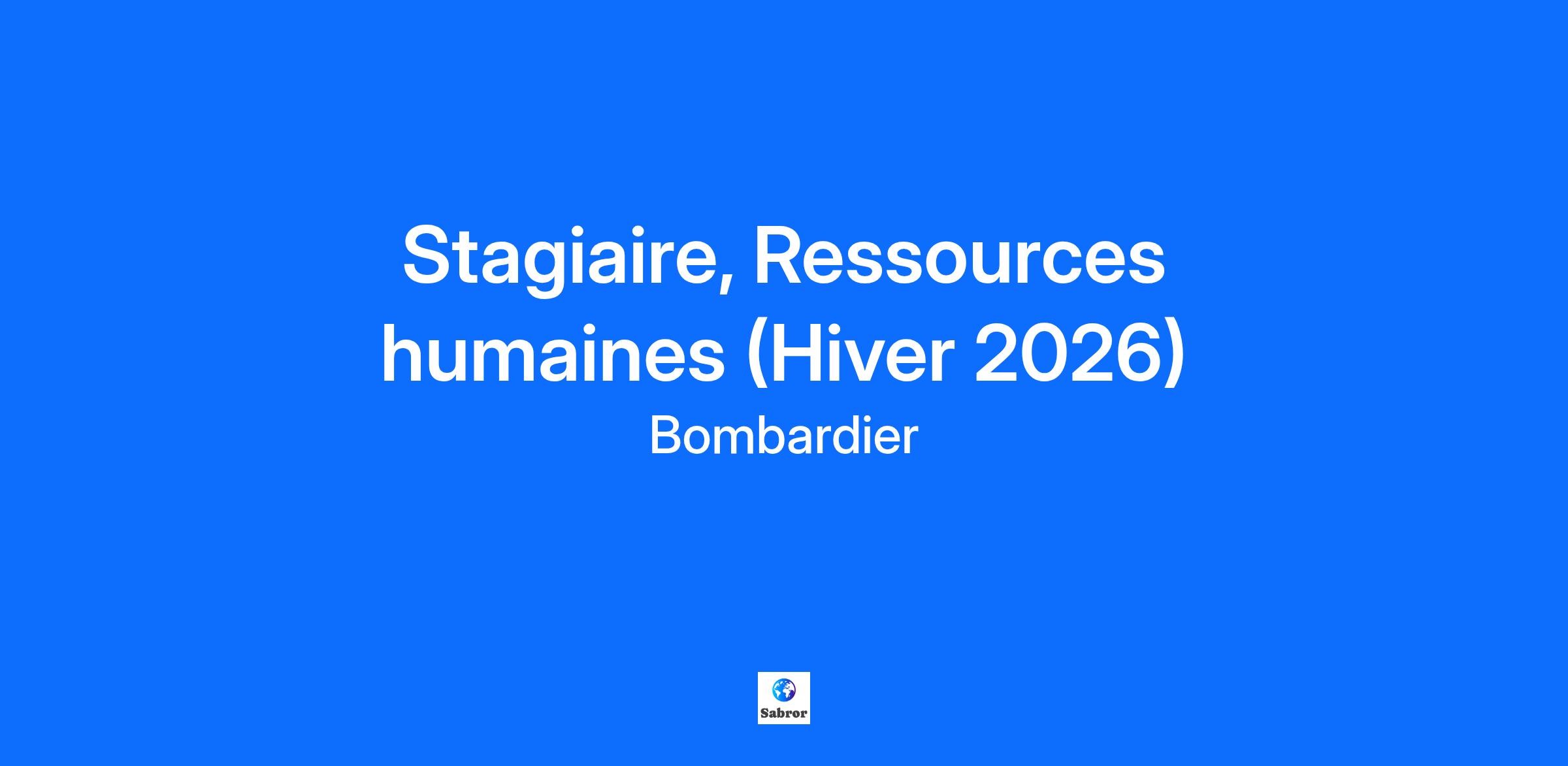 L’innovation est dans notre ADN… est-elle dans le vôtre?Bombardier est un leader mondial de l’industrie de l’aviation en créant des avions novateurs qui changent la donne sur leur marché. Ses produits et services fournissent des expériences de calibre international établissant de nouvelles normes en matière de confort-passager, d’efficacité écoénergétique, de fiabilité et de sécurité. Nous sommes une organisation mondiale axée sur la collaboration et l'esprit d'équipe. Votre billet d’embarquement comprendra… Plusieurs conférences : Rencontrez un.e exécutif.ve Envolée au féminin Apprendre davantage sur Bombardier : Conférence sur Les produits Bombardier Visites des sites Bombardier L’Académie d'apprentissage Bombardier De nombreuses opportunités de réseautage et d'échanges sociaux : Du bénévolat Réseauter pour réussir 5 à 7, repas entre stagiaires, et bien plus encore! Pendant votre stage, vous contribuerez à : Gérer l’ensemble du cycle de vie des employés, de l’embauche à la cessation d’emploi Soutenir les gestionnaires dans l’application des politiques RH et la prise de décisions éclairées Appuyer la mise en œuvre d’initiatives visant à améliorer la rétention et l’engagement des employés Préparer diverses analyses et présentations (reconnaissance des employés, indicateurs clés de performance RH, recrutement, rémunération, activités RH, etc.) Participer à l’amélioration continue des processus RH Pendant votre stage, vous apprendrez : Les différents aspects du rôle de partenaire d’affaires RH tels que la rémunération, l’acquisition de talents, l’accueil et l’intégration, le développement du leadership, la mobilité internationale, la gestion des talents, l’engagement et la rétention, la gestion de la performance, la gestion disciplinaire Comment adapter les pratiques RH aux réalités organisationnelles et aux besoins des équipes Comment utiliser les outils RH numériques (SIRH, plateformes d’engagement, etc.) Comment vous épanouir dans ce rôle? Vous étudiez au baccalauréat en ressources humaines, relations de travail ou administration Vous avez une excellente maîtrise de la série Office et particulièrement des logiciels Excel et Powerpoint Vous avez de bonnes compétences en communication verbale et écrite Vous êtes une personne bien organisée, énergique, rigoureuse et motivée Vous parlez et écrivez le français et l’anglais Information d’embarquement: Site: Centre Administratif (CA) Durée: 4 mois Travail flexible-Hybride Il est important de noter que nos opportunités de stage sont ouvertes aux étudiants et non aux nouveaux gradués. Tous nos stagiaires peuvent être appelés à voyager occasionnellement à l'extérieur du Canada pour des raisons de formation ou de travail.