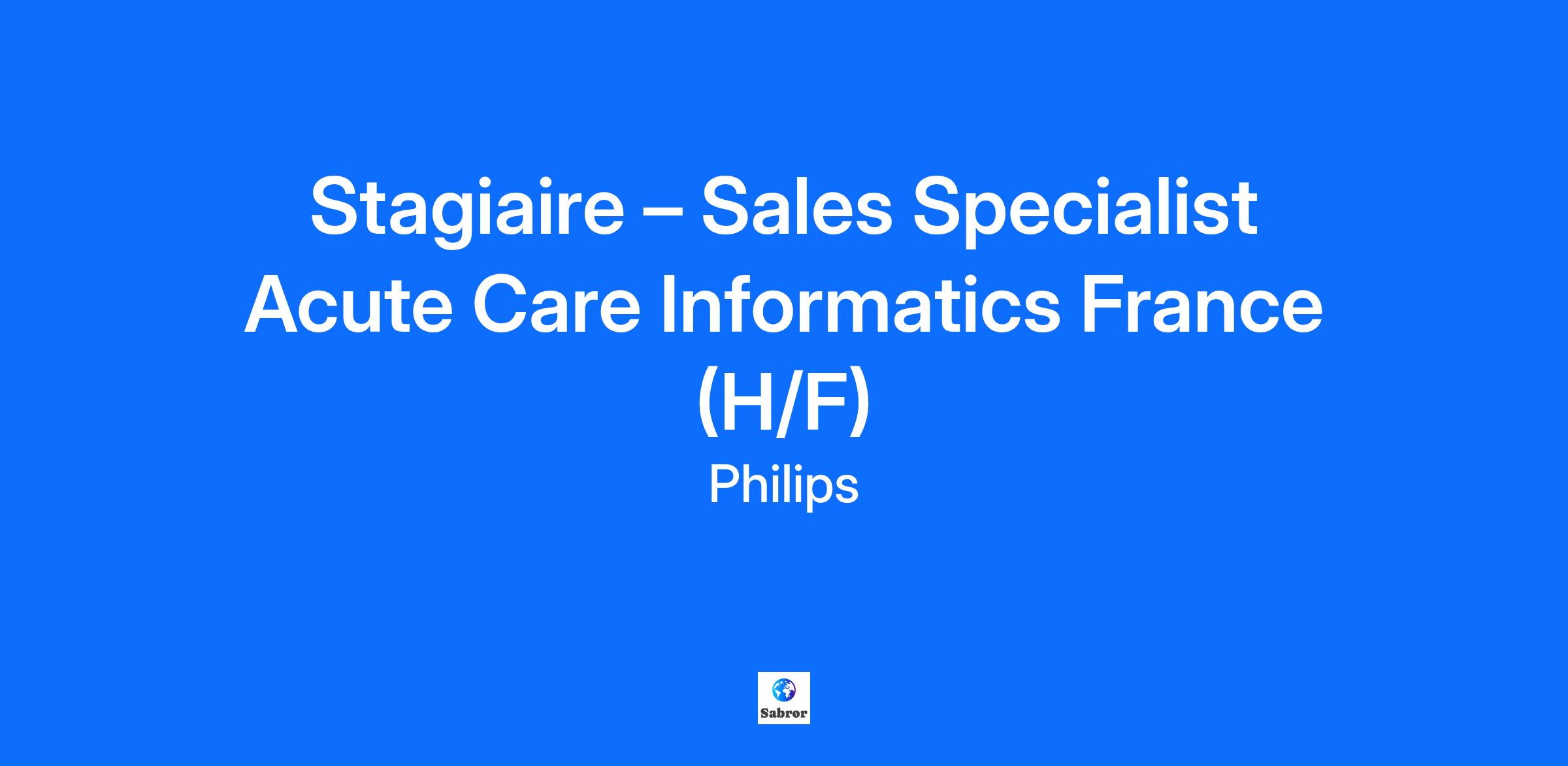 Job Title Stagiaire – Sales Specialist Acute Care Informatics France (H/F) Job Description Lieu : HIP - Paris, France, Hybrid Durée : 6 mois Début : janvier/février 2026 Ce stage vous donne la possibilité de : Découvrir l’univers des solutions Acute Care Informatics : ICCA (IntelliSpace Critical Care & Anesthesia) et MDI (Medical Device Integration) et contribuer à la croissance de ces solutions innovantes en France. Participer aux processus de vente et marketing : de l’analyse des besoins clients à la préparation des démonstrations et des événements. Collaborer avec des équipes commerciales au sein de l’équipe Acute Care, en lien étroit avec les équipes européennes. Être en contact direct avec les clients (customer facing) et développer votre sens relationnel en participant à des échanges stratégiques avec des professionnels de santé. Analyser les attentes et opportunités au sein de la base installée Vos principales missions : 1. Expertise Produit & Engagement Client Assister aux démonstrations ICCA et MDI réalisées par les équipes commerciales et techniques. Contribuer à la communication de la valeur clinique et business des solutions Philips auprès des clients. 2. Support Marketing & Go-to-Market Aider à la dynamisation de supports marketing (brochures, présentations, contenus pour événements) sur un espace dédié. Participer aux congrès et événements professionnels pour soutenir la visibilité des solutions. Participer à l’organisation du club utilisateurs ICCA pour favoriser l’échange et la fidélisation des clients. Réaliser un screening et documentation sur la base installée ICCA 3. Support Commercial & Processus de Vente Aider à la qualification des besoins clients en amont des démonstrations (lecture et analyse des appels d’offres). Préparer des scénarios et présentations pour les démonstrations produites. Assurer le suivi (visites) de la base installée et traiter les demandes de devis d’add-on pour assurer de l’upsell. Participer au renouvellement des contrats de maintenance ICCA et Capsule. 4. Coordination & Reporting Préparer des rapports simples sur les activités commerciales et marketing (suivi des leads, événements). Collaborer avec les équipes transverses (ventes, technique, marketing) pour garantir la fluidité des projets. Profil recherché : Étudiant(e) en école d’ingénierie biomédicale, santé ou informatique de la santé (Bac+4/5). Intérêt pour les technologies de santé et l’IT hospitalier. Bonne maîtrise du français et de l’anglais (oral et écrit). Excellentes compétences en communication, organisation et esprit d’analyse. Vous maîtrisez les outils Microsoft Office (Word, Excel, PowerPoint, Outlook). Vous êtes rigoureux, autonome, organisé et capable de prendre le lead sur des sujets transverses. Ce que nous offrons : Une immersion dans un environnement international et innovant. Une expérience concrète dans le secteur de la santé digitale. Opportunité de développer des compétences en marketing, vente et stratégie.