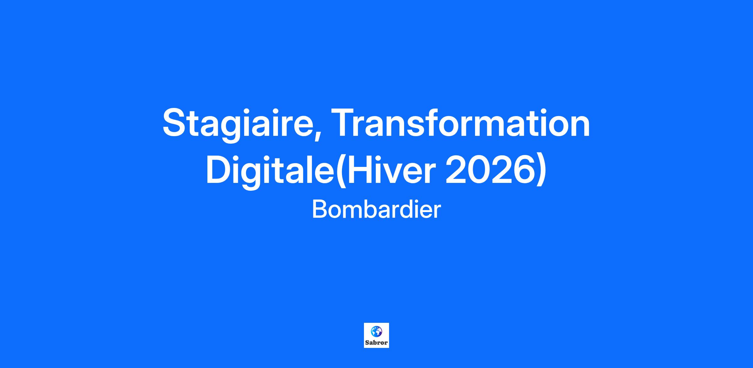 Stagiaire, Transformation Digitale(Hiver 2026)