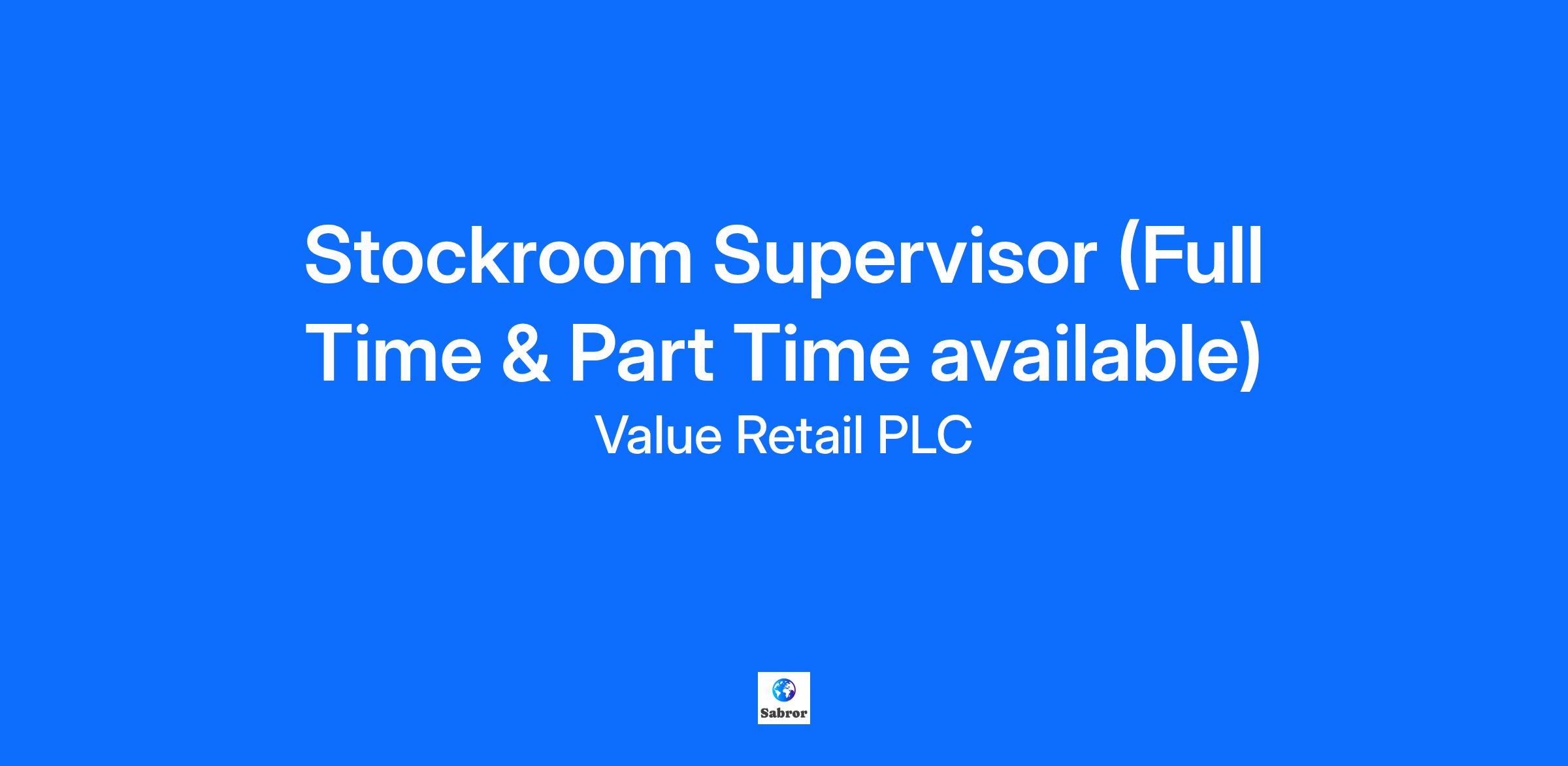 Stockroom Supervisor (Full Time & Part Time available)