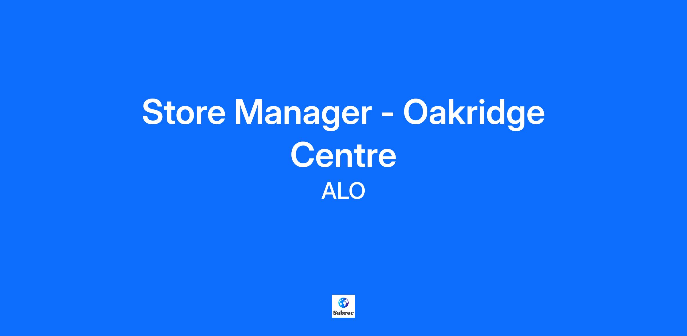 Store Manager - Oakridge Centre