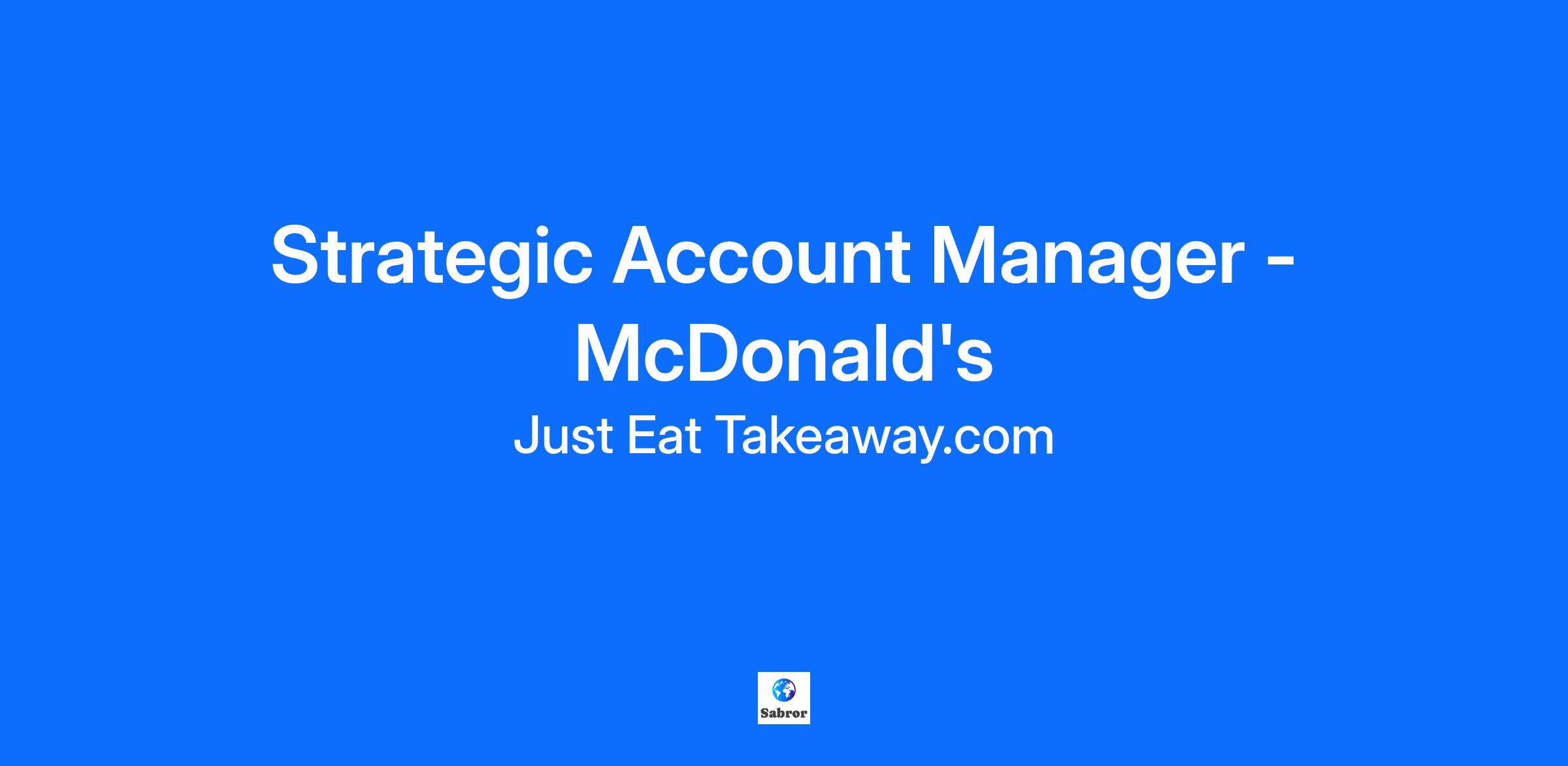 Ready for a challenge? Then Just Eat Takeaway.com might be the place for you. We’re a leading global online delivery platform, and our vision is to empower everyday convenience. Whether it’s a Friday-night feast, a post-gym poke bowl, or grabbing some groceries, our tech platform connects tens of millions of customers with hundreds of thousands of restaurant, grocery and convenience partners across the globe. About this role The Strategic Accounts team is a vital component of Just Eat's strategic UK objectives. We're looking for a superstar Strategic Account Manager to lead the charge in this dynamic and evolving space , driving excellence by delivering on the crucial McDonald's UK partnership with a customer-centric and collaborative approach. Location: Hybrid - 3 days a week from our London office & 2 days wfh Reporting to: Strategic Account Lead McDonald's These are some of the key components to the position: Lead the comprehensive support and management of the McDonald’s UK partnership to ensure successful commercial planning and delivery. Convert intricate data into clear, actionable stories to uncover strategic opportunities and maximise revenue and order volume. Draft and execute Joint Business Plans (JBPs), defining clear objectives and securing buy-in from McDonald's franchise partners. Prepare and present strategic Quarterly Business Reviews (QBRs) to drive accountability with internal and external senior leadership. Design, forecast, and implement innovative marketing & growth plans to deliver commercial outputs. Influence and coordinate cross-functional teams to proactively manage complex relationships and accelerate key initiatives. Oversee the successful, on-time execution of all joint marketing campaigns and new product launches across the McDonald’s estate. What will you bring to the team? Proven success in key account management with a focus on building deep, mutually beneficial partnerships. Strong analytical and data skills (SQL preferred) with the ability to translate complex information into actionable, high-impact strategies. Expertise in leading QBRs and presenting compelling, data-driven insights to both internal and external senior stakeholders. A proactive, self-starter mindset with a track record of delivering exceptional results and driving accountability. Highly organised with the ability to prioritise, manage multiple projects, and deliver complex initiatives on time. Deep passion for the food and hospitality industry with a commercial understanding of market trends and competitive dynamics. At JET, this is on the menu: Our teams forge connections internally and work with some of the best-known brands on the planet, giving us truly international impact in a dynamic environment. Fun, fast-paced and supportive, the JET culture is about movement, growth and about celebrating every aspect of our JETers. Thanks to them we stay one step ahead of the competition. Inclusion, Diversity & Belonging No matter who you are, what you look like, who you love, or where you are from, you can find your place at Just Eat Takeaway.com. We’re committed to creating an inclusive culture, encouraging diversity of people and thinking, in which all employees feel they truly belong and can bring their most colourful selves to work every day. What else is cooking? Want to know more about our JETers, culture or company? Have a look at our career site where you can find people's stories, blogs, podcasts and more JET morsels. Are you ready to take your seat? Apply now! #LI-FT1 With over 60 million active users across 24 countries, here at Just Eat Takeaway.com we’re a global food tech company, connecting our customers from Amsterdam to Auckland with the food they love.
