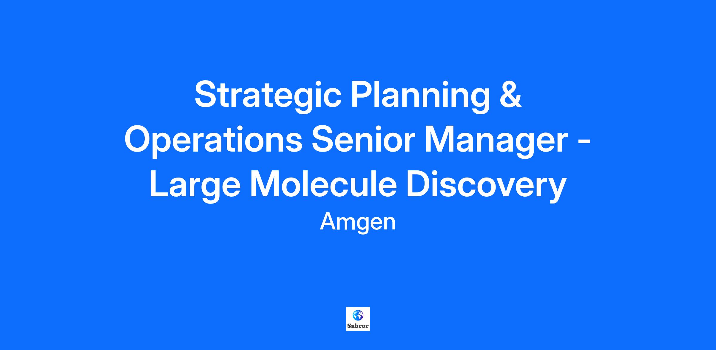Career Category Scientific Job Description Join Amgen’s Mission of Serving Patients At Amgen, if you feel like you’re part of something bigger, it’s because you are. Our shared mission—to serve patients living with serious illnesses—drives all that we do. Since 1980, we’ve helped pioneer the world of biotech in our fight against the world’s toughest diseases. With our focus on four therapeutic areas –Oncology, Inflammation, General Medicine, and Rare Disease– we reach millions of patients each year. As a member of the Amgen team, you’ll help make a lasting impact on the lives of patients as we research, manufacture, and deliver innovative medicines to help people live longer, fuller happier lives. Our award-winning culture is collaborative, innovative, and science based. If you have a passion for challenges and the opportunities that lay within them, you’ll thrive as part of the Amgen team. Join us and transform the lives of patients while transforming your career. Strategic Planning & Operations Sr Mgr - Large Molecule Discovery What you will do Let’s do this. Let’s change the world. At Amgen, we are transforming drug discovery with a bold mission: “Any Target, Every Time.” In this vital role you will partner directly with the Large Molecule Discovery (LMD) VP and senior leaders to drive strategy, optimize operations, and strengthen cross-functional collaboration. This position blends scientific insight, operational excellence, and cross-functional leadership to accelerate transformative therapies to patients worldwide. This role reports directly to the Strategic Planning and Operations Director, Global Research. Key Responsibilities Deliver strategic and operational support to the VP and senior leadership team, ensuring the effective execution of business strategies, initiatives, policies, and procedures that drive departmental success. Actively partner in the planning, development and tracking of goals and initiatives to align with broader organizational objectives. Develop a comprehensive understanding of departmental business needs and challenges, playing an integral role in both long-term strategic planning and change management initiatives to enhance organizational agility and effectiveness. Identify, lead and/or contribute to cross-functional teams in developing and refining innovative strategies and processes that leverage key opportunities. Facilitate the execution of these initiatives across all sites and sub-functions to ensure optimal performance and timely outcomes, including Manage cross-functional initiatives that span LMD&RDS and business partners. Act as a liaison between senior leaders, operational teams and business partner functions, ensuring alignment, progress, and accountability. Draft and manage communications on behalf of the VP and senior leadership team, ensuring clarity and consistency for key initiatives, meetings, and events across the department. Drive internal and external presentation development, including Operating/Business Reviews, All-Staff presentations, & reports on business performance. Help drives a cohesive, inclusive team culture through DE&I activities, staff recognition, and Talent development initiatives. Supervise functional budgets and resource planning processes, working with Finance, HR, and Research Operations. Ensure efficient use of resources across teams and optimize operational workflows. What we expect of you We are all different, yet we all use our unique contributions to serve patients. The qualified professional we seek is a Sr Manager with these qualifications. Basic Qualifications Doctorate degree in Life Sciences, Business or other relevant field and 2 years of project management experience or Master’s degree in Life Sciences, Business or other relevant field and 4 years of project management experience or Bachelor’s degree in Life Sciences, Business or other relevant field and 6 years of project management experience or Associate’s degree in Life Sciences, Business or other relevant field and 10 years of project management experience Preferred Qualifications: PhD, Master's degree or MBA 10+ years work experience in life sciences field, including 5 years of strong project management experience. Experience in planning, operations, and budgeting in a Research and Development organization Demonstrated experience supporting research (non-clinical) partnership activities Deep understanding of the drug development process, preferably in large molecule discovery Experience working in a global, matrix organization Operational excellence: management skills, planning, organization, prioritization, decision making, objective setting, meeting management and plan execution Creative and critical problem solving, a strong strategic thinker Builds strong relationships; networking skills Highly effective at leading and influencing through cross-functional teams and highly matrixed environment Flexibility amidst rapidly changing environment; high tolerance to ambiguity Promote innovation and effective decision making Self-awareness, transparent, approachable, objective, open minded Ability to learn and communicate complex projects and processes Project management and management of cross-functional team deliverables Learning agility: learns quickly; motivates other to adapt quickly to new systems, processes and tools Ability to develop cross-functional relationships (Internal/external) Seeks opportunities to improve delivery of goals/initiatives through partnership and new ways of working Drives for results; delivers outcomes of the highest quality High proficiency with Microsoft Office, Chat GPT, Smartsheet and SharePoint What you can expect of us As we work to develop treatments that take care of others, we also work to care for your professional and personal growth and well-being. From our competitive benefits to our collaborative culture, we’ll support your journey every step of the way. The expected an