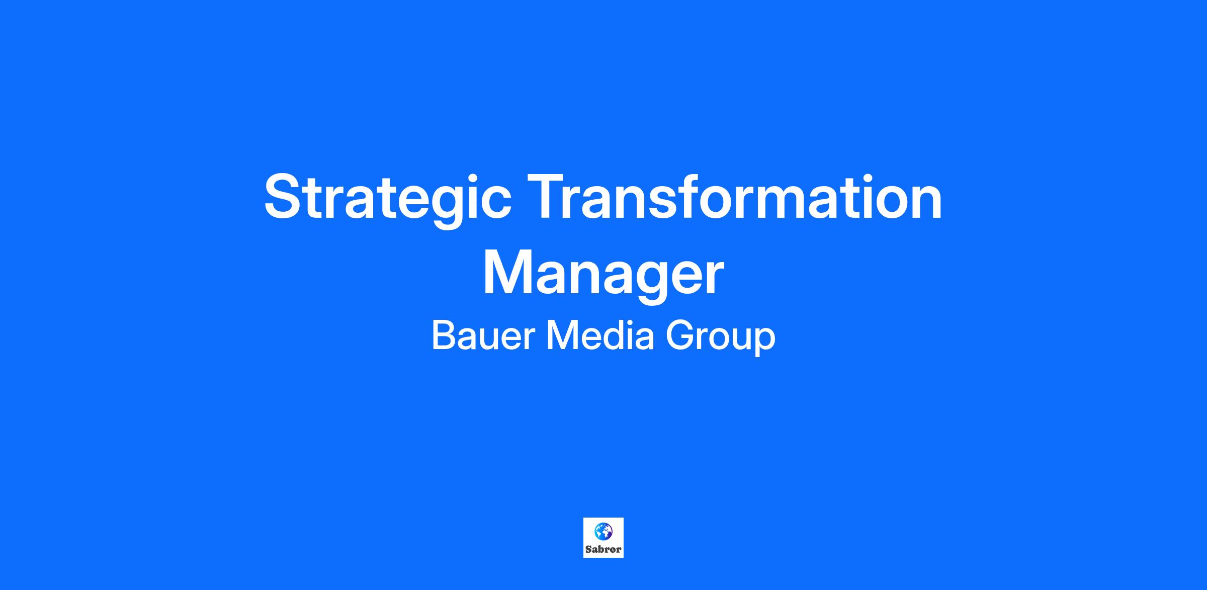 Our Team: How we enrich everyday life You’ll join Bauer Media Audio’s Transformation & Delivery team - a small but high-impact group that partners with senior leaders and cross-functional teams across multiple markets. Together, we deliver our long-term strategy, ensuring Bauer Media Audio continues to innovate and lead in a rapidly evolving industry. The difference you will make: As Strategic Transformation Manager, you’ll play a pivotal role in delivering and shaping Bauer Media Audio’s strategic priorities. You’ll design and run strategic processes, support high-impact initiatives, and act as a trusted advisor to senior stakeholders. This role is about strategy, influence and transformation - not just operational project management - so you’ll be driving change at scale and helping us achieve our ambitious goals. Your role: Responsibilities include but are not limited to: Lead and support market and cross-functional teams in delivering strategic initiatives. Including monitoring or progress, identifying risks and escalating challenges to leadership. Build and manage business-wide strategic processes (e.g. business planning). Act as a core member of the Transformation & Delivery team, ensuring alignment with long-term business goals. The skills you will bring: Required: Extensive experience in strategic consultancy or leading strategic transformation programmes. Strong analytical and problem-solving skills. Excellent communication and stakeholder management, including C-level engagement. Ability to manage multiple priorities in a fast-paced environment, seeing challenges before they arise and ‘getting ahead of the problem’. Strong proficiency in Microsoft Office. Desired: Bachelor’s degree Experience in digital media, audio, or entertainment sectors. Working Pattern / Location: Hybrid role based in London (Euston office), averaging 3 days per week in person. Occasional travel to Europe required (up to ~2 weeks per quarter). At Bauer Media Group, we’re committed to enriching everyday life by creating a place to do great work. Through operational excellence, digital innovation, and a strong customer focus, we foster an inclusive environment where everyone can thrive and be their true authentic selves. If there is anything we can do to support your application, please let us know. About Bauer Media Group We are a media business focused on creating content that matters to millions of people across Europe. Our offering extends from print and online publishing to audio broadcasting and entertainment, alongside investments in other media related sectors. With more than 500 million copies sold each year, we are one of Europe’s largest Publishers. From women’s and celebrities’ magazines to TV listings to food and special interest, we own some of the most popular publishing brands in Germany, UK, Poland and France – both digital and print. But not only that. Reaching over 61 million listeners weekly, we operate over 150 radio and podcast brands in nine countries, spanning the UK, Ireland, Poland, Slovakia, Denmark, Sweden, Finland, Norway and Portugal. Family-owned in the 5th generation, Bauer Media focuses on the long-term, with a consumer-first mindset that guides us across our diverse portfolio. Our workforce of 12,000 shares a common purpose: to deliver content and services that enrich people‘s everyday lives. What’s in it for you You’ll have 25 days holiday, bank holidays & 2 volunteer days to use. Your development matters, so access to our internal training provider – Bauer Academy, is a huge win. We have enhanced Maternity/Adoption, Paternity and Shared Parental Leave Pay. You’ll have the opportunity for flexible working. And much more! Find the full details of our benefits here We are an international employer and equal opportunities are important to us. That's why we welcome everyone in their uniqueness, regardless of e.g. religion, gender, skin color, disability in our house. If you have any feedback regarding our UK recruitment process, please email careershub@bauermedia.co.uk we would love to hear from you.