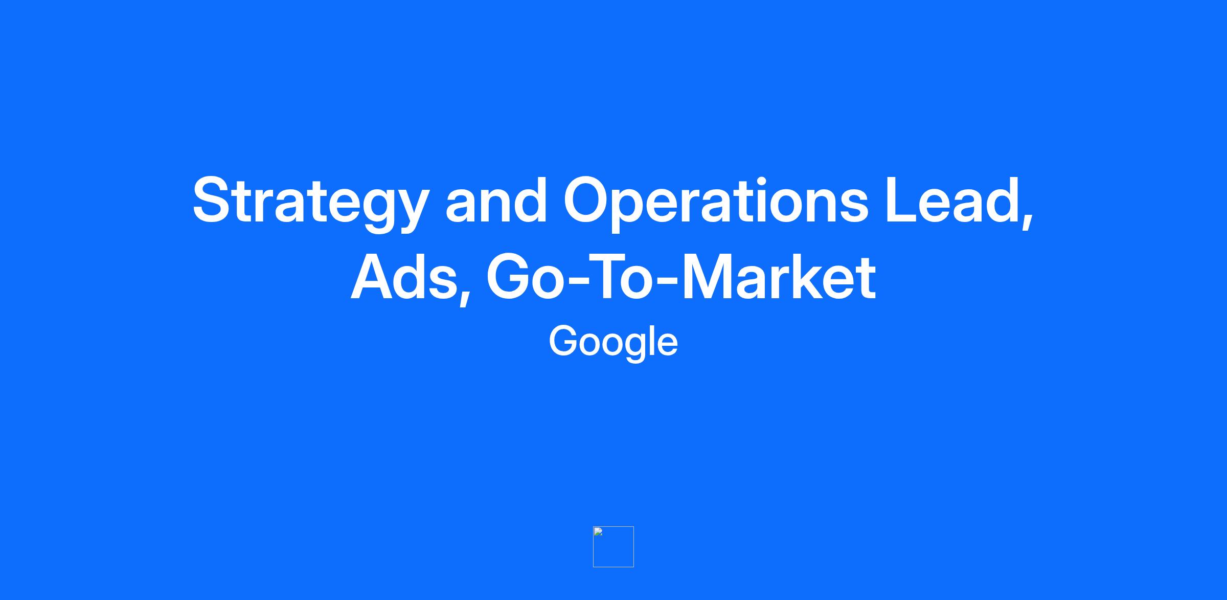 MINIMUM QUALIFICATIONS: * Bachelor's degree or equivalent practical experience. * 6 years of experience in management consulting, sales operations, business strategy, investment banking, venture capital, private equity, or corporate advisory, or 4 years of experience with an advanced degree. PREFERRED QUALIFICATIONS: * Experience managing relationships and working cross-functionally within global organizations. * Understanding of Global Business Organization (GBO) and its business channels and teams (i.e., LCS, GCS, rGTM, GST, etc.). * Ability to understand and articulate the big picture to executive teams, while maintaining attention to execution details. * Excellent communication skills to help teams move with greater speed and efficiency to big outcomes. * Excellent program management skills with, the ability to manage multiple projects simultaneously that span Alphabet’s different divisions. ABOUT THE JOB: In this role, you will act as a member of the Ads Strategist team, to ensure Google delivers the highest performing ads products to its advertisers. You will be responsible for leading cross-Ads and GBO projects with full autonomy to accelerate Google’s Product to Market to Product cycle and drive greater product portfolio strategy. You will influence product executives’ decision making, hold teams accountable for product performance outcomes, and many competing VP-level priorities. You will closely partner with Ads, GTM, PSA, gTech, Finance, etc. leaders. The Go-to-Market Operations (GtM) team ensures Google's complex and ever-evolving Ads business runs smoothly. We are instrumental in setting go-to-market strategy, and ensuring flawless execution and operations against the strategy. We have teams embedded in each of the major Ads business areas as well as global teams that work across the business areas. Team members are analytical and strategic, with a pragmatic sense of how to get things done. The US base salary range for this full-time position is $147,000-$216,000 + bonus + equity + benefits. Our salary ranges are determined by role, level, and location. Within the range, individual pay is determined by work location and additional factors, including job-related skills, experience, and relevant education or training. Your recruiter can share more about the specific salary range for your preferred location during the hiring process. Please note that the compensation details listed in US role postings reflect the base salary only, and do not include bonus, equity, or benefits. Learn more about benefits at Google [https://careers.google.com/benefits/]. RESPONSIBILITIES: * Work cross-functionally with cross-GTM teams, People Operations, Business Finance, Marketing, and communications to scope, manage, and execute projects. * Derive insights from quantitative and qualitative data analysis; communicate key findings to executive leadership with executive-ready presentations and program manage efforts on behalf of stakeholders. * Drive operating for the organization, including optimizing resource allocation, measuring progress against key objectives, and managing business updates or quarterly reviews. * Analyze business processes to identify potential issues and uncover levers for improvement; influence executive stakeholders to implement standardization and optimization strategies.