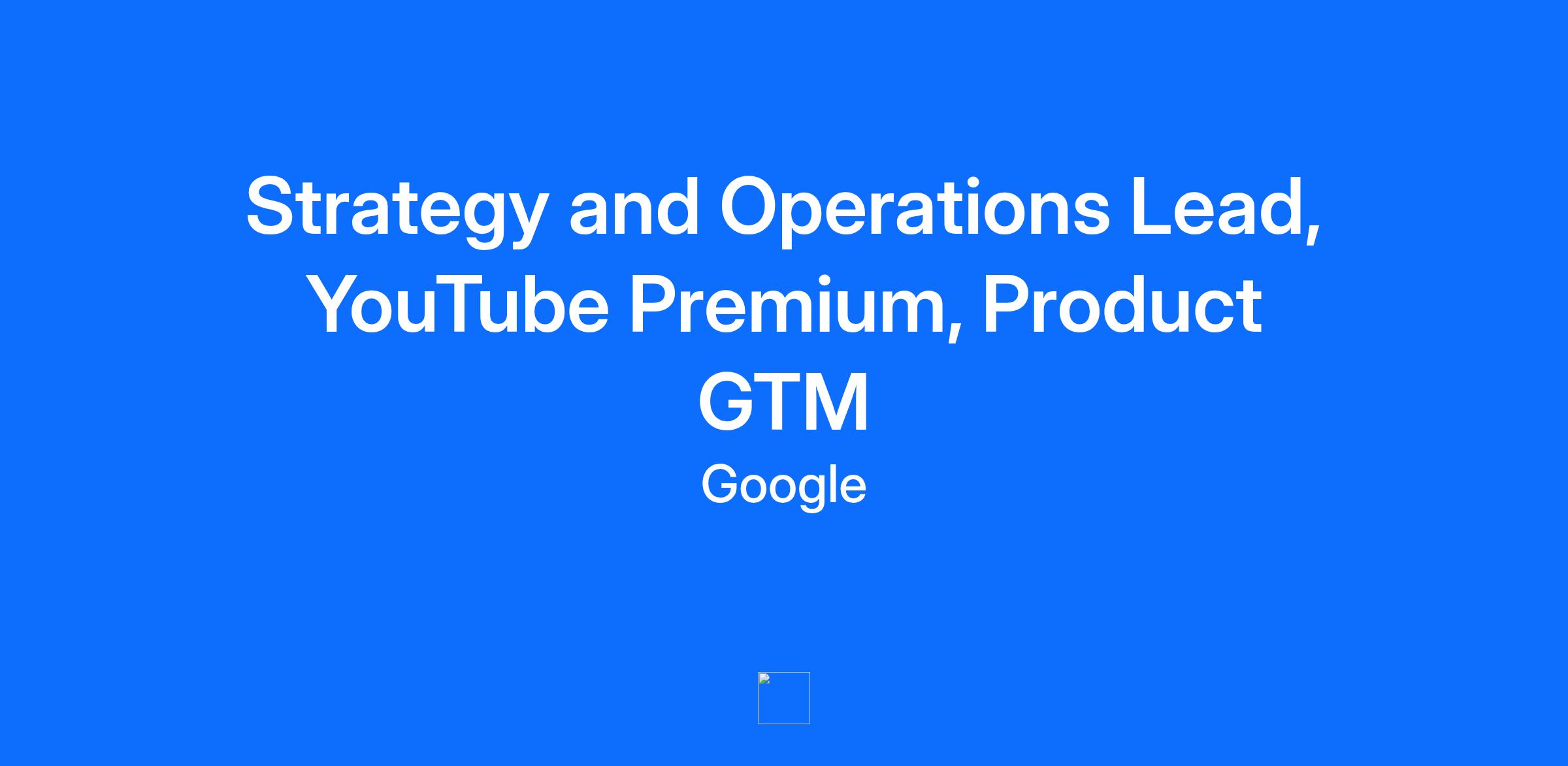 MINIMUM QUALIFICATIONS: * Bachelor's degree or equivalent practical experience. * 6 years of experience in management consulting, sales operations, business strategy, chief of staff positions, or corporate advisory, or 4 years of experience with an advanced degree. PREFERRED QUALIFICATIONS: * Experience in sales or product strategy in traditional or digital advertising. * Track record of building trusted relationships with executive stakeholders. * Understanding of YouTube. * Ability to prioritize initiatives, drive progress and adapt quickly across multiple workstreams. * Ability to translate product offerings into sales facing value propositions in line with customer business and marketing objectives. * Excellent communication skills with the ability to present complex concepts to audiences. ABOUT THE JOB: The Go-to-Market Operations (GTM) team ensures that Google's complex and ever-evolving ads business runs smoothly. We are instrumental in setting the go-to-market strategy and guiding flawless execution and operations against the strategy. We stay focused on aligning the highest-level company priorities with strong day-to-day operations, while also helping to evolve early stage ideas into future-growth initiatives. We have teams embedded in each of the major Ads business areas, and global teams that work across the business areas. Team members sell starters and strategically with a pragmatic sense of how to get things done. This role sits within the Product GTM team, tasked with accelerating YouTube business growth across the region via the development and adoption of products, tools and program best practices. As a Strategy and Operations Lead, you will be responsible for high profile sponsorships and creator engagements. Sponsorship and creator engagements are critical to driving incremental business growth in our upfront partnerships as well as capturing linear and streaming budgets. In this role, you will deliver on the core product go-to-market. You will design and deploy regional activation programs to sellers and video specialists. You will be providing thought leadership on product activation and execution. You will fuel the connectivity with GPS, YouTube, and Sales Specialists. The US base salary range for this full-time position is $147,000-$216,000 + bonus + equity + benefits. Our salary ranges are determined by role, level, and location. Within the range, individual pay is determined by work location and additional factors, including job-related skills, experience, and relevant education or training. Your recruiter can share more about the specific salary range for your preferred location during the hiring process. Please note that the compensation details listed in US role postings reflect the base salary only, and do not include bonus, equity, or benefits. Learn more about benefits at Google [https://careers.google.com/benefits/]. RESPONSIBILITIES: * Lead strategic projects at the Americas scale that shape the future operating model and support long-term business priorities. Oversee multiple strategic opportunities simultaneously and design organization wide strategic processes to ensure long-term goals are being defined and met. * Define, align upon and execute against priority regional product Objectives and Key Results (OKRs) and activation priorities, metrics, and strategies. * Work with internal stakeholders cross-functionally to deliver solutions that meet our business objectives and influence global stakeholders to build solutions for regional needs. * Conduct in-depth analysis of product and business data to identify trends, insights and intelligence to support decision making and activation.