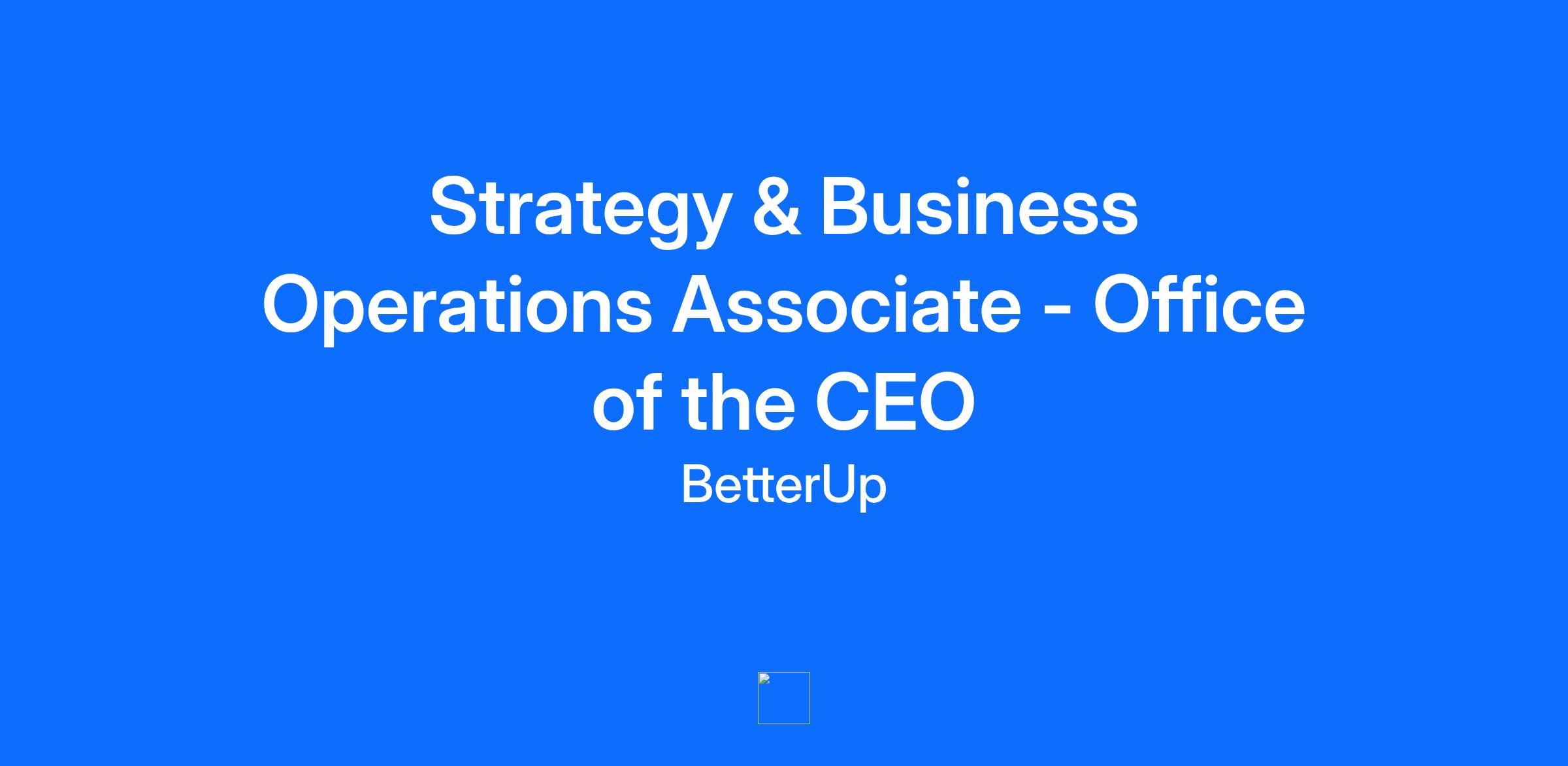 Let’s face it, a company whose mission is human transformation better have some fresh thinking about the employer/employee relationship. We do. We can’t cram it all in here, but you’ll start noticing it from the first interview. Even our candidate experience is different. And when you get an offer from us (and accept it), you get way more than a paycheck. You get a personal BetterUp Coach, a development plan, a trained and coached manager, the most amazing team you’ve ever met (yes, each with their own personal BetterUp Coach), and most importantly, work that matters. This makes for a remarkably focused and fulfilling work experience. Frankly, it’s not for everyone. But for people with fire in their belly, it’s a game-changing, career-defining, soul-lifting move. Join us and we promise you the most intense and fulfilling years of your career, doing life-changing work in a fun, inventive, soulful culture. If that sounds exciting—and the job description below feels like a fit—we really should start talking. We are seeking a passionate, driven individual to join our Business Operations team within the Office of the CEO. The ideal candidate is strongly interested in technology, innovation, and the Employee Experience ecosystem. You have a proven ability to lead projects from ideation to execution with measurable impact. You excel at managing multiple competing priorities, knowing when to focus on details and when to take a step back to see the bigger picture. Impact drives you, and you're always thinking about how to move things forward. You will lead BetterUp’s top strategic projects, including annual planning, acquisition integrations, due diligence, and more. These high-impact, cross-functional initiatives will require a deep understanding of BetterUp’s value chain. Handling sensitive projects, you’ll work closely with the CEO, Chief of Staff, and Executive Leadership Team to deliver strategic insights and measurable results. What you’ll do: Contribute to the top Office of the CEO strategic projects. Historical projects include: Support due diligence for partnerships with luminaries such as Brené Brown, Adam Grant, Pau Gasol, and Shaun White. Conduct research and analysis for BetterUp's European market entry strategy. Build financial models and analyses for BetterUp's 5-year growth plan for the Board of Directors. Analyze pricing and packaging in partnership with a third-party consulting firm. Support annual planning and the company OKR process. Contribute to the Davos activation, fostering connections between BetterUp's CEO and Fortune 100 CXOs. Conduct research and analysis for cross-selling partnerships. Support acquisition due diligence on U.S. and European acquisition targets. Contribute to post-merger integrations. If you have some or all of the following, please apply: 1-3 years of experience in a high-growth scale-up environment or investment banking. Strategic and Analytical Excellence: You combine creative problem-solving with a structured, analytical approach to business challenges and are adept at developing actionable insights that inform strategy. Cross-functional Collaboration: Proven ability to work across organizational levels, building relationships with senior executives and cross-functional partners to drive alignment and deliver results. Execution Mastery: You have a knack for juggling multiple high-priority initiatives while maintaining exceptional attention to detail and organization. Agility and Resilience: Thrive in a fast-paced, ambiguous environment where priorities can shift rapidly, and you remain steadfast in driving impact. Scrappiness: Someone who gets excited about rolling up their sleeves and doing whatever it takes to deliver. You do not hesitate to get involved, from strategic work to the tactical (sometimes thankless) work. Strong interest in organizational behavior, positive psychology, coaching, or behavioral sciences—we geek out over this stuff, daily! Benefits: At BetterUp, we are committed to living out our mission every day and that starts with providing benefits that allow our employees to care for themselves, support their families, and give back to their community. Access to BetterUp coaching; one for you and one for a friend or family member A competitive compensation plan with opportunity for advancement Medical, dental and vision insurance Flexible paid time off Per year: All federal/statutory holidays observed 4 BetterUp Inner Work days (https://www.betterup.co/inner-work) 5 Volunteer Days to give back Learning and Development stipend Company wide Summer & Winter breaks Year-round charitable contribution of your choice on behalf of BetterUp 401(k) self contribution We are dedicated to building diverse teams that fuel an authentic workplace and sense of belonging for each and every employee. We know applying for a job can be intimidating, please don’t hesitate to reach out — we encourage everyone interested in joining us to apply. BetterUp Inc. provides equal employment opportunities (EEO) to all employees and applicants for employment without regard to race, color, religion, sex, national origin, disability, genetics, gender, sexual orientation, age, marital status, veteran status. In addition to federal law requirements, BetterUp Inc. complies with applicable state and local laws governing nondiscrimination in employment in every location in which the company has facilities. This policy applies to all terms and conditions of employment, including recruiting, hiring, placement, promotion, termination, layoff, recall, transfer, leaves of absence, compensation, and training. At BetterUp, we compensate our employees fairly for their work. Base salary is determined by job-related experience, education/training, residence location, as well as market indicators. The range below is representative of base salary only and does not include equity, sales bonus plans (when applicable) and benefits. This range may be modi