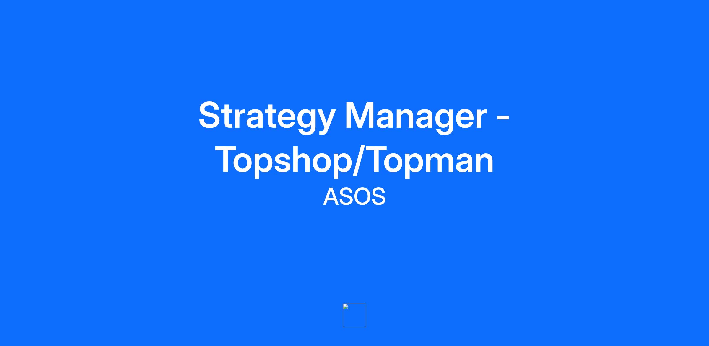 Company DescriptionWe’re ASOS, the online retailer for fashion lovers all around the world.We exist to give our customers the confidence to be whoever they want to be, and that goes for our people too. At ASOS, you’re free to be your true self without judgement, and channel your creativity into a platform used by millions.But how are we showing up? We’re proud members of Inclusive Companies, are Disability Confident Committed and have signed the Business in the Community Race at Work Charter and we placed 8th in the Inclusive Top 50 Companies Employer list.Everyone needs some help showing up as their best self. Let our Talent team know if you need any adjustments throughout the process in whatever way works best for you.Job DescriptionJoin us as a Strategy Manager for Topshop/Topman and play a pivotal role in shaping the future of two of fashion’s most iconic brands. You’ll blend consulting-level problem solving with hands-on operational delivery, driving growth and innovation that impacts millions of customers worldwide.This is your chance to lead high-impact strategic initiatives, influence go-to-market strategies, and collaborate with cross-functional teams to accelerate Topshop/Topman’s success.The DetailsLead strategic initiatives that accelerate growth and elevate the Topshop/Topman customer experience.Define and execute go-to-market strategies for new product launches, optimising pricing, promotions, and channel mix.Build and streamline scalable processes to speed up time-to-market for trend-led collections.Use data analytics and A/B testing to uncover insights, refine product positioning, and drive commercial outcomes.Develop and maintain dashboards and metrics to measure success, inform strategic decisions, and prioritise roadmaps.Drive continuous improvement across products, services, and operations through data-led thinking.Present strategic recommendations and business cases to senior leadership, supporting investment and growth decisions.Collaborate closely with product, operations, marketing, and finance teams - bringing clarity to ambiguity and turning insights into action.Champion Diversity, Equity & Inclusion strategies, supporting our inclusive culture.Supporting our culture by championing Diversity, Equity & Inclusion strategies.We believe being together in person helps us move faster, connect more deeply, and achieve more as a team. That’s why our approach to working together includes spending at least 3 days a week in the office. It’s a rhythm that speeds up decision-making, helps ASOSers learn from each other more quickly, and builds the kind of culture where people can grow, create, and succeed.QualificationsAbout YouConsulting background combined with in-house experience, with a strong track record in strategy, operational delivery, and cross-functional leadership.Experience in e-commerce, retail, or consumer brands - ideally with exposure to product launches, go-to-market strategy, or scaling operations.Comfortable moving from big-picture planning to detailed execution, thriving in fast-paced, complex environments.Skilled at data-driven decision-making, confident with tools like Excel, SQL, Power BI, and dashboarding platforms.Experience presenting to senior leadership, building business cases, and supporting investment decisions is a plus.Curious, proactive, and adaptable—always looking for ways to innovate and improve.Additional InformationBeneFITS’Employee discount (hello ASOS discount!)Employee sample sales25 days paid annual leave + an extra celebration day for a special momentDiscretionary bonus schemePrivate medical care schemeFlexible benefits allowance - which you can choose to take as extra cash, or use towards other benefitsOpportunity for personalised learning and in-the-moment experiences that enable you to thrive and excel in your role