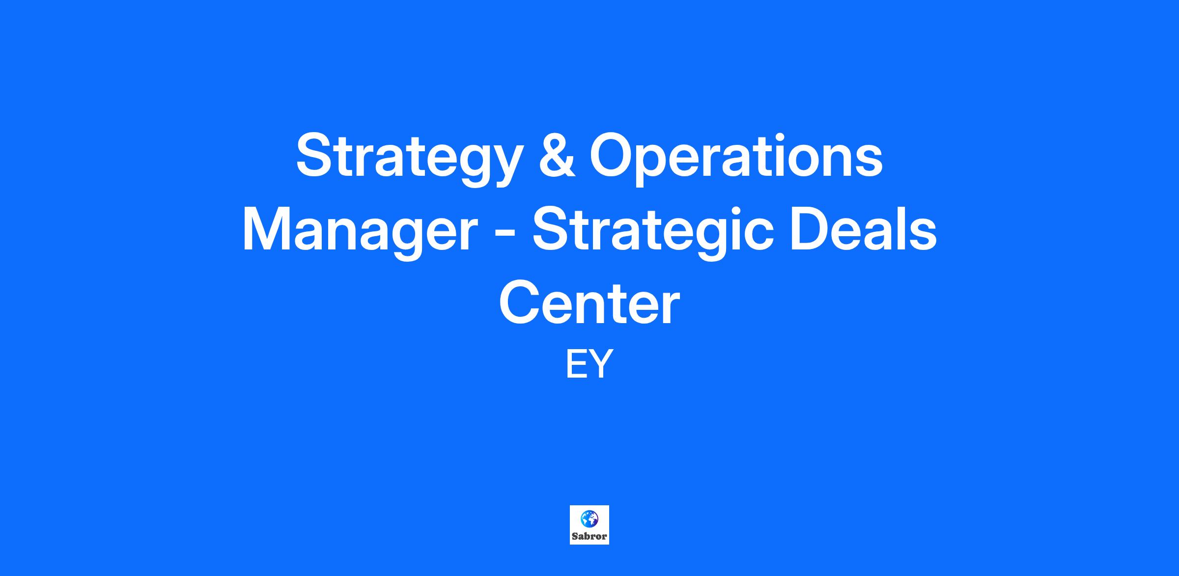 Strategy & Operations Manager - Strategic Deals Center