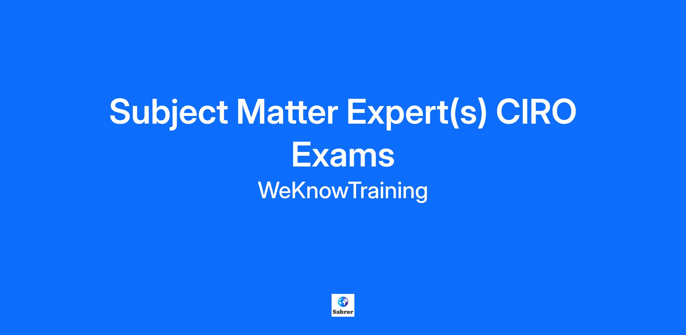 Subject Matter Expert(s) SME – CIRO Exams (Learning Content & Exam Validation)
