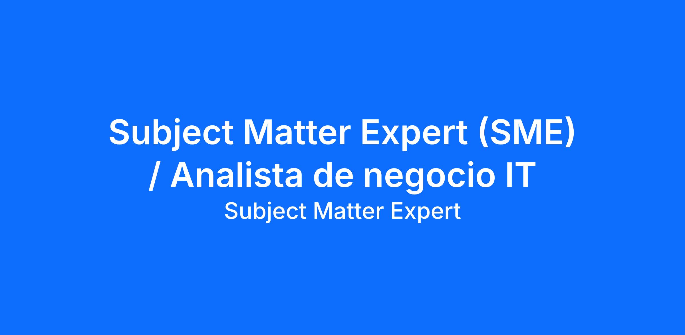 Business Analyst - Experto/a en la Materia (SME) para unirse a nuestro equipo en el área de