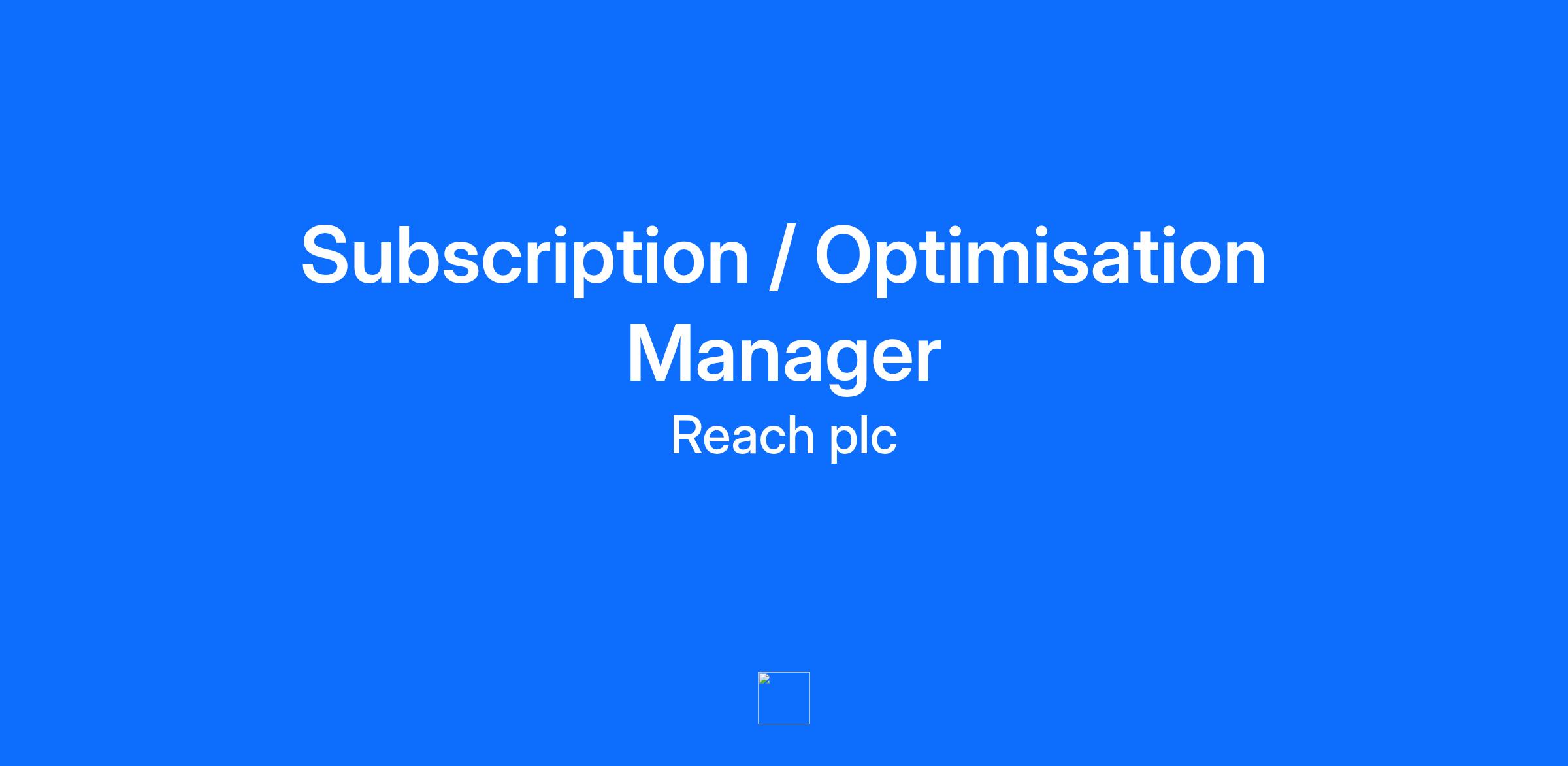 Company DescriptionFamous brands. Millions of daily readers. On a mission to connect with audiences and diversify revenue.Reach is building out our subscription proposition, and product ownership and optimisation is at the core of our audience subscription journey and paywall experience, so we are looking for a Subscription/Optimisation Manager - ideally with a background of working within a media, consumer or content business - to take responsibility for optimising full funnel performance from acquisition and conversion through to retention and lifetime value across all brands. This role is home & hub based with one day a week in the Canary Wharf office, so you can be located anywhere in the UK but must be able to travel into London once a week. About usHello, we’re Reach. Every day, our trusted news, stories and content connect with millions of people where they live - whether that’s on their social feed or at their neighbourhood newsstand; through their local community or their take on the hot topic of the day.We're home to more than 120 trusted brands - from household names like the Mirror, Express, Daily Star and Daily Record, to local titles like MyLondon, BelfastLive, and the Manchester Evening News, and brands making a splash in the US like the Irish Star.It's our ability to understand people and the things that matter to them that makes us the UK and Ireland's largest commercial news publisher. We reach 70% of the UK's online population and speak to over 100 million social followers around the world. And we’re just getting started…Your story, with ReachAs a modern media organisation, we're much more than just news. And it takes a wide range of people and skills to serve diverse audiences, customers and communities like we do.We know everyone has their own story to tell, so we’ve built an environment where every background is respected and every day is a day to explore.We’ll help you build a career that works with your life, while giving you the space to create and grow.What will the role involve Working cross functionally, this role will deliver intuitive, high-converting subscriber journeys, ensuring the entire experience is flawless and supports long term reader engagement and sustainable journalism.You will be setting up and optimising the product national, regional and vertical paywall strategy and owning the end-to-end lifecycle across Reach domains, ensuring smooth delivery across Unknown, Known, ID, Contract, Paywall Billing and Access. Taking a long-term view of our consumer relationships and ensuring the customer remains at the heart of our strategy, your responsibilities will include:Overseeing integrations and managing logic, refunds and failed paymentsCo-managing the product backlog Building out new subscription tiers and shaping subscriber-only experiences to increase demand and capture more valueOptimising conversion and paywall funnel to drive acquisitions Improving flows to deliver fantastic end-to-end user journeys Managing experiments and implementing test and learn workflows across multiple touch points Utilising pricing dynamics to deliver a pricing strategy that drives ARPU and lifetime valueWho are we looking for?Innovative, experimental and data-driven, the successful candidate will be KPI obsessed and have a deep understanding of the subscriptions ecosystem and a demonstrated history of successfully optimising subscription driven models, ideally within a fast paced media environment. You will be acting as subject matter expert and working closely with other teams including designers, UX teams and senior stakeholders, so will need to be an excellent communicator. Extensive experience of using subscription platforms and web development technologies (HTML, CSS, JavaScript) is a must, and knowledge of using the Piano Subscription platform and launching new subscription products into the market are highly desirable.How we'll look after youWe take good care of our people - and that means more than just a pay packet. Whatever your role, you'll get a range of benefits, including:25 days' holiday (plus bank holidays), as well as an extra day after you've been with us for three, five and 10 years. We also have a scheme to help you buy extra holiday if you want to.An extra day's paid leave each year to volunteer for a cause close to your community or your heart.Big moment day - an extra day’s paid leave for a moment that matters to you - like getting married, moving house or welcoming a new addition to the family (human or furry!)Bonus scheme - you'll get a stake in our success and a chance to add to your annual earnings.Help saving for your retirement - we'll match your company pension contributions up to 6% and you can contribute through salary sacrifice.Supportive and progressive people policies - we’re proud to have a range of policies to support people in their lives in and outside work, including enhanced family leave and policies to promote flexibility, inclusion and progression. We believe you shouldn’t have to wait to join us to know what to expect from us, which is why we share this overview of the policies we have in place to support families and carers. If there's something you want to understand more about, just ask - it won’t make a difference to your application.A healthcare cash plan - giving you money back for a range of medical expenses and fast access to doctor's appointments.Car lease scheme - you can buy a brand new electric or hybrid car through our leasing partner, and pay for it through salary sacrifice.Wellbeing support - including a 24/7 assistance programme for you and your family.Access to lots of discounts - including 15% off with Reach's very own online marketplace, Yimbly, where you can buy everything from homewares to beauty products.Interest-free loans - including for season tickets and technology.Additional InformationReach plc believes diversity brings benefits for our customers, our business and our people. Thi