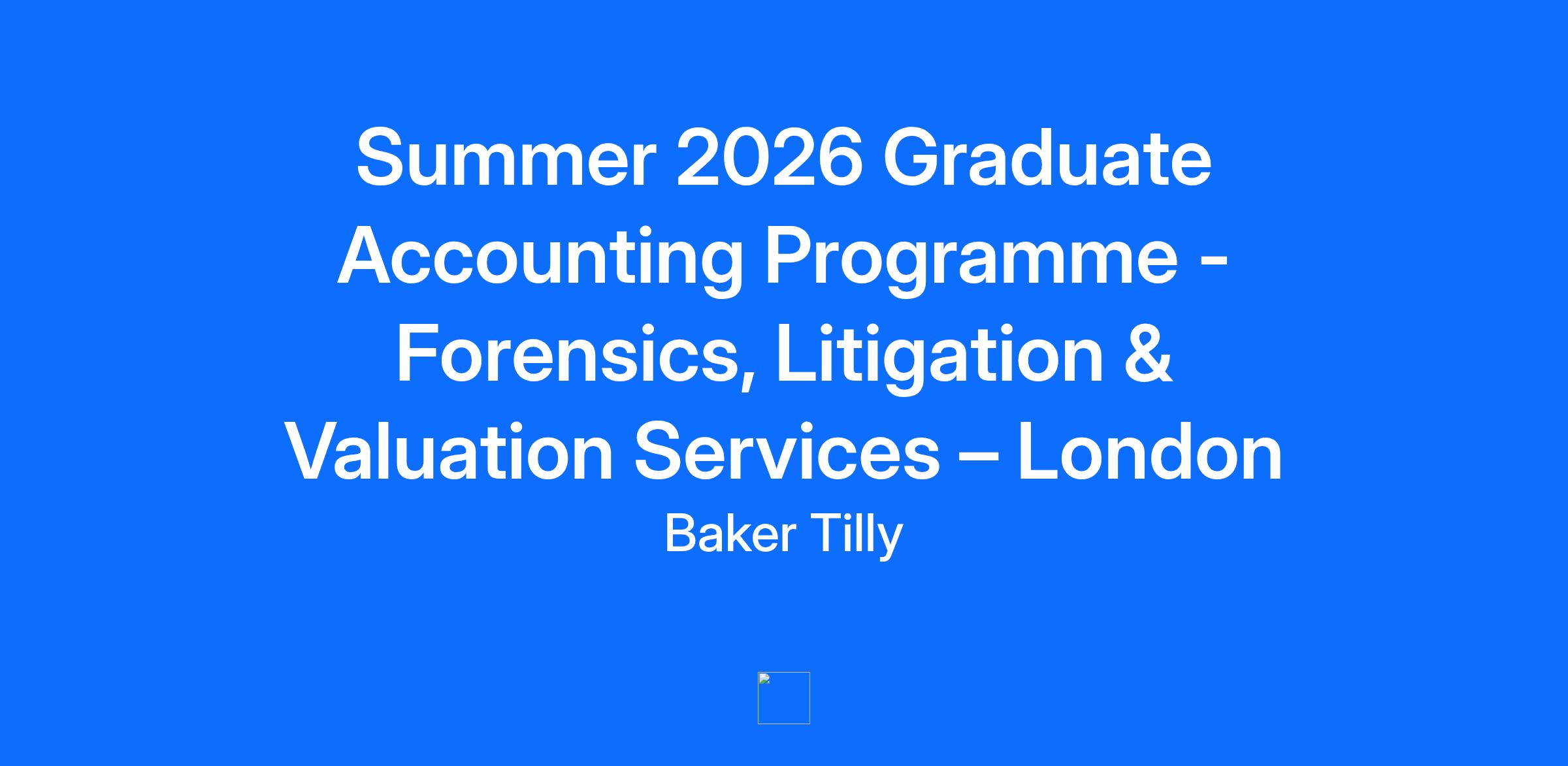 Overview BTVK Advisory is a leading advisory firm whose specialized professionals guide clients through an ever-changing business world, helping them win now and anticipate tomorrow. BTVK Advisory, and its affiliated entities, have operations in North America, South America, Europe, Asia, and Australia. BTVK Advisory’s ultimate parent entity, Baker Tilly US, LLP, is an independent member of Baker Tilly International, a worldwide network of independent accounting and business advisory firms in 141 territories, with 43,000 professionals and a combined worldwide revenue of $5.2 billion. Baker Tilly is an equal opportunity/affirmative action employer. All qualified applicants will receive consideration for employment without regard to race, color, religion, sex, national origin, disability or protected veteran status, gender identity, sexual orientation, or any other legally protected basis, in accordance with applicable federal, state or local law. To be added to all ET through Experienced requisitions Any unsolicited resumes submitted through our website or to Baker Tilly Advisory Group, LP, employee e-mail accounts are considered property of Baker Tilly Advisory Group, LP, and are not subject to payment of agency fees. In order to be an authorized recruitment agency ("search firm") for Baker Tilly Advisory Group, LP, there must be a formal written agreement in place and the agency must be invited, by Baker Tilly's Talent Attraction team, to submit candidates for review via our applicant tracking system. Job Description: Graduate Accounting Programme - Forensics, Litigation & Valuation Services – London About the Programme: As a part of Baker Tilly’s Forensics, Litigation & Valuation Services team, you will find that our global brand and entrepreneurial environment will give you the support you need to apply your industry and technical experience to build your career across a wide range of services to meet our clients’ most important needs. As a member of our forensic team, you will also contribute to some of the most important activities in our firm which include operating and growing the business, serving the client, developing the best people, and shaping our culture. The London Graduate Scheme lasts for three years during which you will work in an exciting, challenging and constantly changing environment. You will learn forensic and investigative accounting skills and experience the diverse nature of our work, as well as studying the ACA syllabus for membership of the Institute of Chartered Accountants in England and Wales (ICAEW). Your ACA studies will be undertaken with one of the top training companies in the UK funded by Baker Tilly. You will be supported with time out of the office for the ACA tuition and exams as well as being supported in your forensic development with ongoing mentoring and on the job coaching, as well as global training delivered through a number of platforms by Baker Tilly's expert professionals. Upon completion of your ACA qualification, Baker Tilly offers continuing education and an environment in which to grow and develop professionally, including excellent opportunities for career progression. Baker Tilly also offer a competitive remuneration and benefits package. Programme Opportunities: As a member of the 2026 Forensics, Litigation & Valuation Services Graduate Accounting Programme, you will have the opportunity to: Learn and execute meaningful engagements as a consultant that have an impact on the business Collaborate with experienced Staff, Seniors, Managers and Partners with specialised experience and technical knowledge across numerous industries and services Engage directly with a variety of clients ranging from privately held businesses to publicly traded multi-national corporations Learn directly from mentors and additional Baker Tilly employees through a series of networking activities, formal training, and an open work environment Participate in our internal Induction Training designed to give you the tools needed to immediately contribute to client engagements and support your personal development Gain experience in our four core service areas – Insurance, Litigation, Valuations & Investigations Opportunities to become part of our internal Diversity, Inclusion and Belonging initiative. Opportunities to utilise any language skills you may have (NB - languages are not a requirement for the role) Qualifications Essential Availability to begin full-time employment in August 2026 The ability to work effectively in a team environment with all levels of client personnel across various industries Excellent written/verbal, communication, analytical and collaboration skills Be eligible to work in the UK without sponsorship as a full-time employee (regrettably, we cannot accept Graduate nor Dependant / Spouse visas) Be available to travel as needed for client projects Desirable Degree – minimum 2:1 in any subject Relevant internship, work experience and/or involvement We welcome applications from those who may not meet all the desirable criteria but can demonstrate the necessary essential skills. Baker Tilly is a leading advisory, tax and assurance firm, providing clients with a genuine coast-to-coast and global advantage in major regions of the U.S. and in many of the world’s leading financial centers – New York, London, San Francisco, Los Angeles, Chicago and Boston. Baker Tilly Advisory Group, LP and Baker Tilly US, LLP (Baker Tilly) provide professional services through an alternative practice structure in accordance with the AICPA Code of Professional Conduct and applicable laws, regulations and professional standards. Baker Tilly US, LLP is a licensed independent CPA firm that provides attest services to its clients. Baker Tilly Advisory Group, LP and its subsidiary entities provide tax and business advisory services to their clients. Baker Tilly Advisory Group, LP and its subsidiary entities are not licensed CPA firms. Baker Tilly A