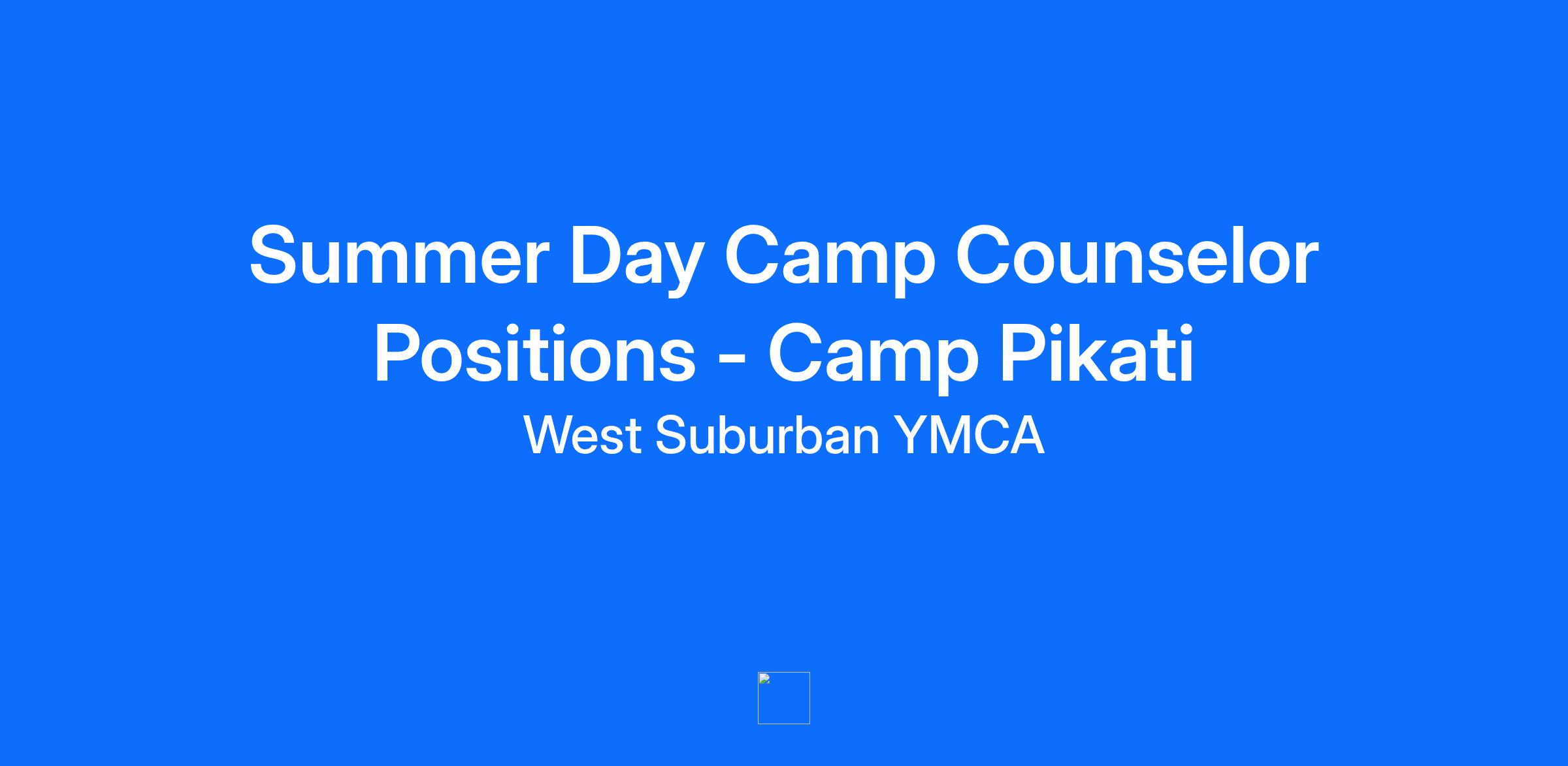 We are hiring for Summer Day Camp Counselor Positions at Camp Pikati for the 2026 Summer season! Please review the attached job descriptions for job qualifications and specifications and apply here if you are interested in joining us as a member of our team for this upcoming summer. Camp Pikati (pike-a-tee) means “camp across the Pike!” Each week campers have fun filling their days with traditional camp games, sports, arts and crafts, swimming, relay races, archery, and camp wide special themes! 2026 Summer Day Camp Counselor Positions: * Day Camp Counselor * August Day Camp Counselor * Pikati Preschool Counselor OUR CULTURE: Our mission and core values are brought to life by our culture. In the Y, we strive to live our cause of strengthening communities with purpose and intentionality every day. We are welcoming: we are open to all. We are a place where you can belong and become. We are genuine: we value you and embrace your individuality. We are hopeful: we believe in you and your potential to become a catalyst in the world. We are nurturing: we support you in your journey to develop your full potential. We are determined: above all else, we are on a relentless quest to make our community stronger beginning with you. MEMBER SERVICE STATEMENT: Members are the heart of this organization. They are the reason we exist. Members are the most important visitors we have, whether they visit by mail, phone or in person. They are not statistics and always deserve our respect. No matter what we are hired to do, satisfying members’ needs and wants is everyone’s first and most important responsibility. The West Suburban YMCA is a charitable organization that welcomes all by creating a community that hires individuals of any age, race, gender, religion, heritage, economic circumstance, or physical ability. We focus on youth development, healthy living and social responsibility to ensure all children, adults and families are healthy, confident and connected. *After completing the application process, you will have the opportunity to complete your Talent Profile by our joining our Talent Community!