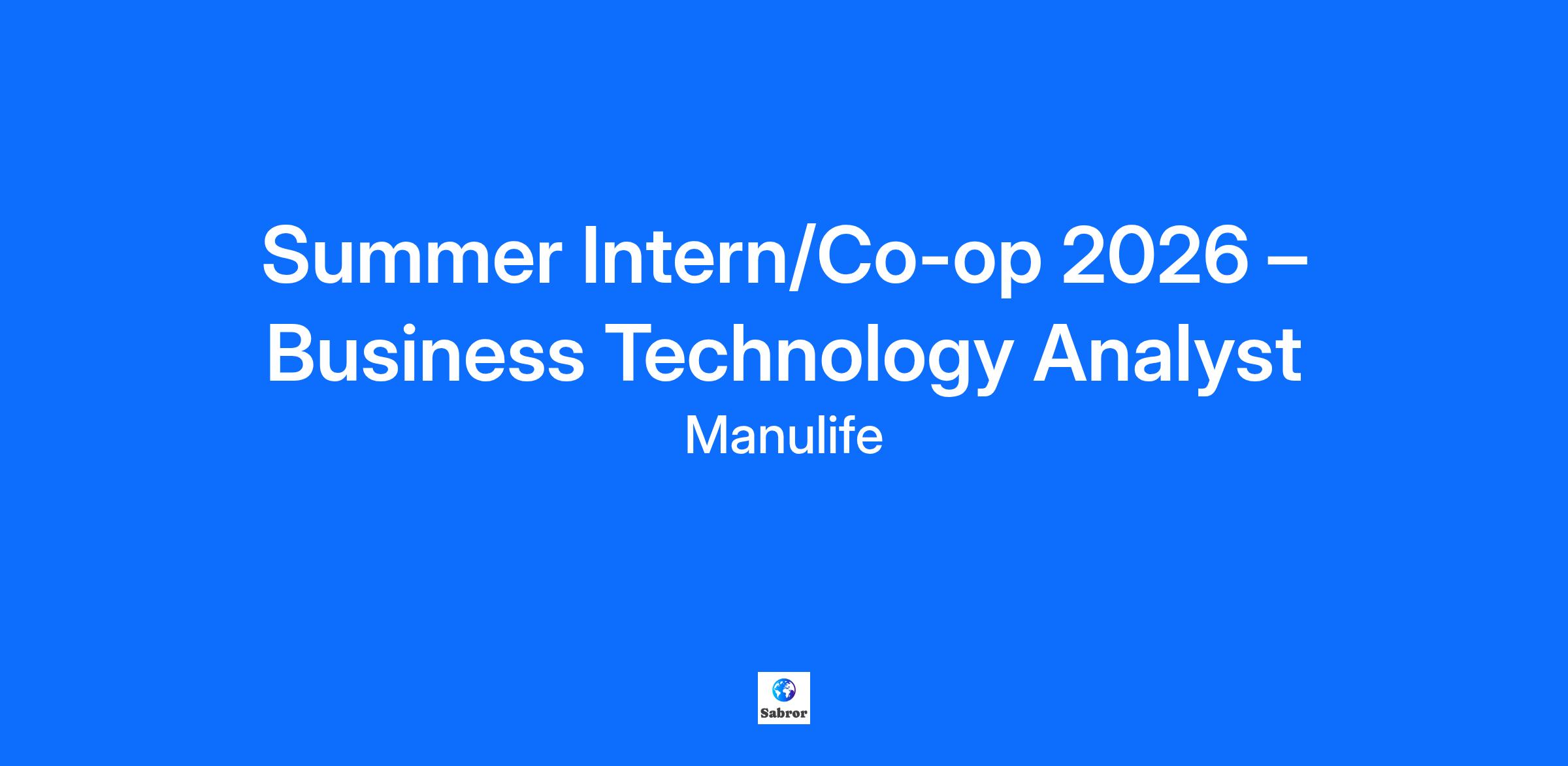 Summer Intern/Co-op 2026 – Business Technology Analyst