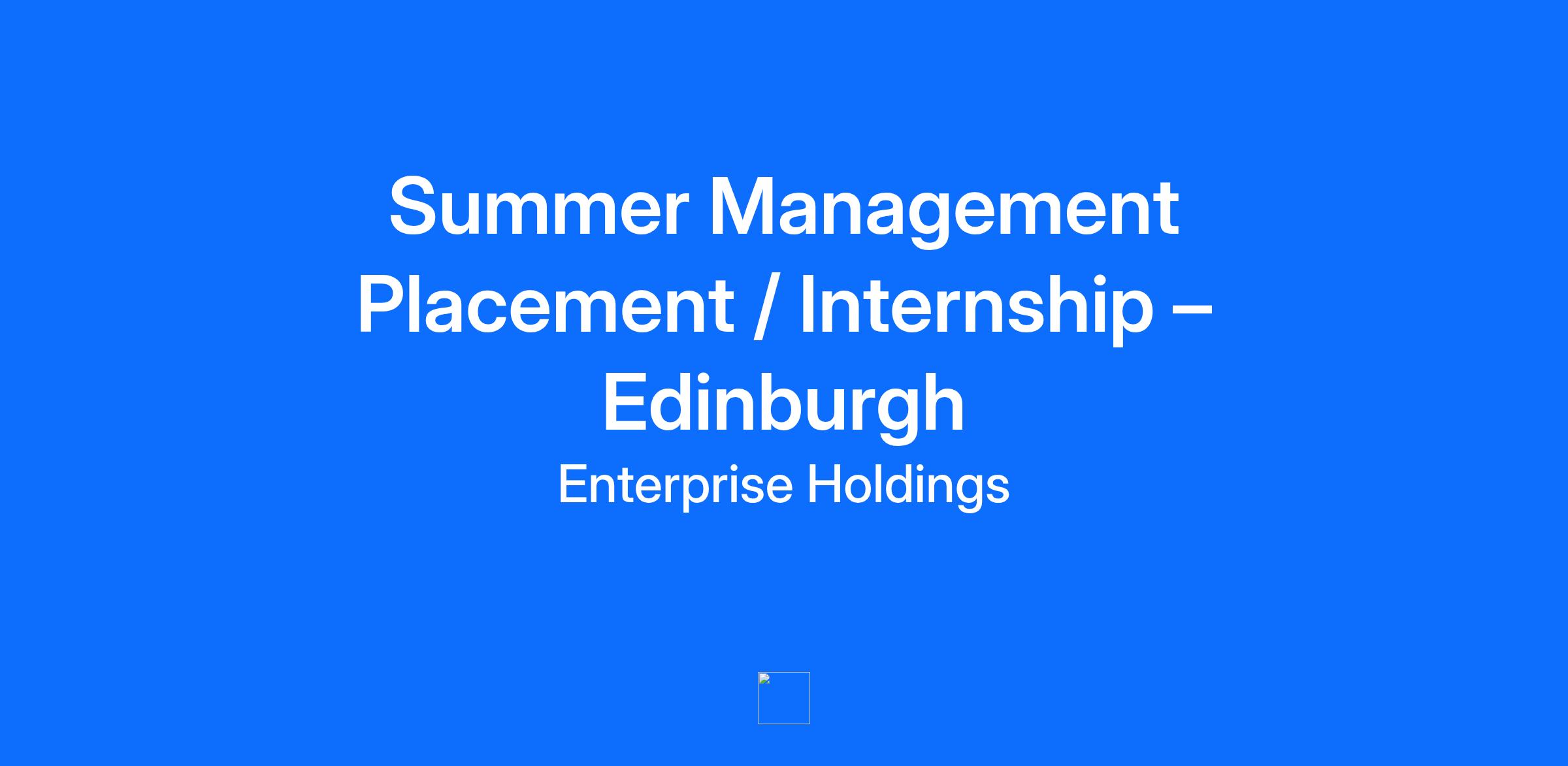 Overview We’re Enterprise Mobility. A family-owned, global mobility leader with a $39 billion turnover, nearly 90,000 team members, and operations in 95 countries. Led by CEO Chrissy Taylor, the third generation of the Taylor family, we’re built on a legacy that gives us the stability to focus on the long-term success of our people, our customers and our business. Join us, and as this year’s Higherin Best Student Employer and a Times Top 100 Graduate Employer, we’ll offer you the freedom to explore your potential. Ready to make your move? Why join the Summer Management Placement Programme? As an Intern, you’ll play a vital role in the success of Enterprise Mobility and receive a comprehensive introduction to our Graduate Management Training Programme. You'll gain valuable, real world business experience that can set you apart when you enter the job market. From day one, we’ll invest in you. Based in one of our retail branches you’ll take on real responsibilities and gain hands-on experience across customer service, sales, marketing, finance, operations, and more - all within a supportive environment. We work hard and reward hard work You’ll be tackling the same challenges as those on our Graduate Management Training Programme, so it’s only fair you enjoy the same benefits. This is a paid position, with opportunities for promotion, performance bonuses, incentives, and employee referral rewards. Award-winning training and development Whether you’re building on existing skills or developing new ones, your growth is our priority. Through classroom learning, on-the-job training, and mentorship, you’ll have the tools and support to take the that first step in your career – and the one after that. Our doors are open As an Intern, your experience at Enterprise Mobility will be as unique as you because you shape who we are as much as we shape your skills, path and potential. We pride ourselves on opening our doors to a variety of voices, giving way to an experience that’s both inclusive and that inspires diversity of thought. Responsibilities You’ll have the chance to apply what you already know, while building a powerful set of hard and soft skills that you might not have expected. You’ll develop skills in: Customer Service: deliver exceptional experiences by confidently handling reservations, resolving enquiries, and building rapport with a diverse range of customers. Sales and Marketing: connect with local business partners, grow your network and develop lasting relationships. Financial Control and Profitability: understand the financial mechanics of a successful business, including cost control and interpreting profit and loss statements. Operations and Logistics: learn how to manage a fleet, plan strategically, and drive performance. Leadership and Development: take the lead in mentoring, training, and developing your own team - with the opportunity to manage and promote others as you grow. Qualifications We accept applications for our Management Placement and Internship Programme from all undergraduate university students regardless of university attended and subjects being studied. Our assessment is based on how you perform against our competencies and will judge you on that alone. You must have a full manual UK or EU driving licence, but we do make accommodations for applicants who don’t drive due to a disability. No drug or alcohol related offence on driving record within the last five years is permitted. Additional Information Please let us know about any accommodations you may need to participate in our recruitment process. Please limit your application to only one job posting based on where you live and/or plan to work. Applying to multiple locations will delay your application being processed. Date question / We have flexibility on start dates between 18th May 2026 - 8th June 2026 pending university schedule and business need. Placement end date will be the 4th September 2026 with the potential to extend based on university schedule and business need. This job posting is for applications within the following locations: Edinburgh..