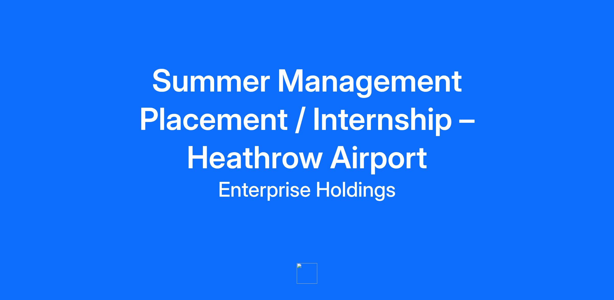 Overview We’re Enterprise Mobility. A family-owned, global mobility leader with a $39 billion turnover, nearly 90,000 team members, and operations in 95 countries. Led by CEO Chrissy Taylor, the third generation of the Taylor family, we’re built on a legacy that gives us the stability to focus on the long-term success of our people, our customers and our business. Join us, and as this year’s Higherin Best Student Employer and a Times Top 100 Graduate Employer, we’ll offer you the freedom to explore your potential. Ready to make your move? Why join the Summer Management Placement Programme? As an Intern, you’ll play a vital role in the success of Enterprise Mobility and receive a comprehensive introduction to our Graduate Management Training Programme. You'll gain valuable, real world business experience that can set you apart when you enter the job market. From day one, we’ll invest in you. Based in one of our retail branches you’ll take on real responsibilities and gain hands-on experience across customer service, sales, marketing, finance, operations, and more - all within a supportive environment. We work hard and reward hard work You’ll be tackling the same challenges as those on our Graduate Management Training Programme, so it’s only fair you enjoy the same benefits. This is a paid position, with opportunities for promotion, performance bonuses, incentives, and employee referral rewards. Award-winning training and development Whether you’re building on existing skills or developing new ones, your growth is our priority. Through classroom learning, on-the-job training, and mentorship, you’ll have the tools and support to take the that first step in your career – and the one after that. Our doors are open As an Intern, your experience at Enterprise Mobility will be as unique as you because you shape who we are as much as we shape your skills, path and potential. We pride ourselves on opening our doors to a variety of voices, giving way to an experience that’s both inclusive and that inspires diversity of thought. Responsibilities You’ll have the chance to apply what you already know, while building a powerful set of hard and soft skills that you might not have expected. You’ll develop skills in: Customer Service: deliver exceptional experiences by confidently handling reservations, resolving enquiries, and building rapport with a diverse range of customers. Sales and Marketing: connect with local business partners, grow your network and develop lasting relationships. Financial Control and Profitability: understand the financial mechanics of a successful business, including cost control and interpreting profit and loss statements. Operations and Logistics: learn how to manage a fleet, plan strategically, and drive performance. Leadership and Development: take the lead in mentoring, training, and developing your own team - with the opportunity to manage and promote others as you grow. Qualifications We accept applications for our Management Placement and Internship Programme from all undergraduate university students regardless of university attended and subjects being studied. Our assessment is based on how you perform against our competencies and will judge you on that alone. A full manual UK or EU driving licence is preferred but not necessary, but we do make accommodations for applicants who don’t drive due to a disability. No drug or alcohol related offence on driving record within the last five years is permitted. Additional Information Please let us know about any accommodations you may need to participate in our recruitment process. Please limit your application to only one job posting based on where you live and/or plan to work. Applying to multiple locations will delay your application being processed. Must be able to commit to the full duration of the internship dates between 15th June 2026 - 4th September 2026 (With the potential to end later, pending university schedule & business need). This job posting is for applications within the following locations: Heathrow Airport.