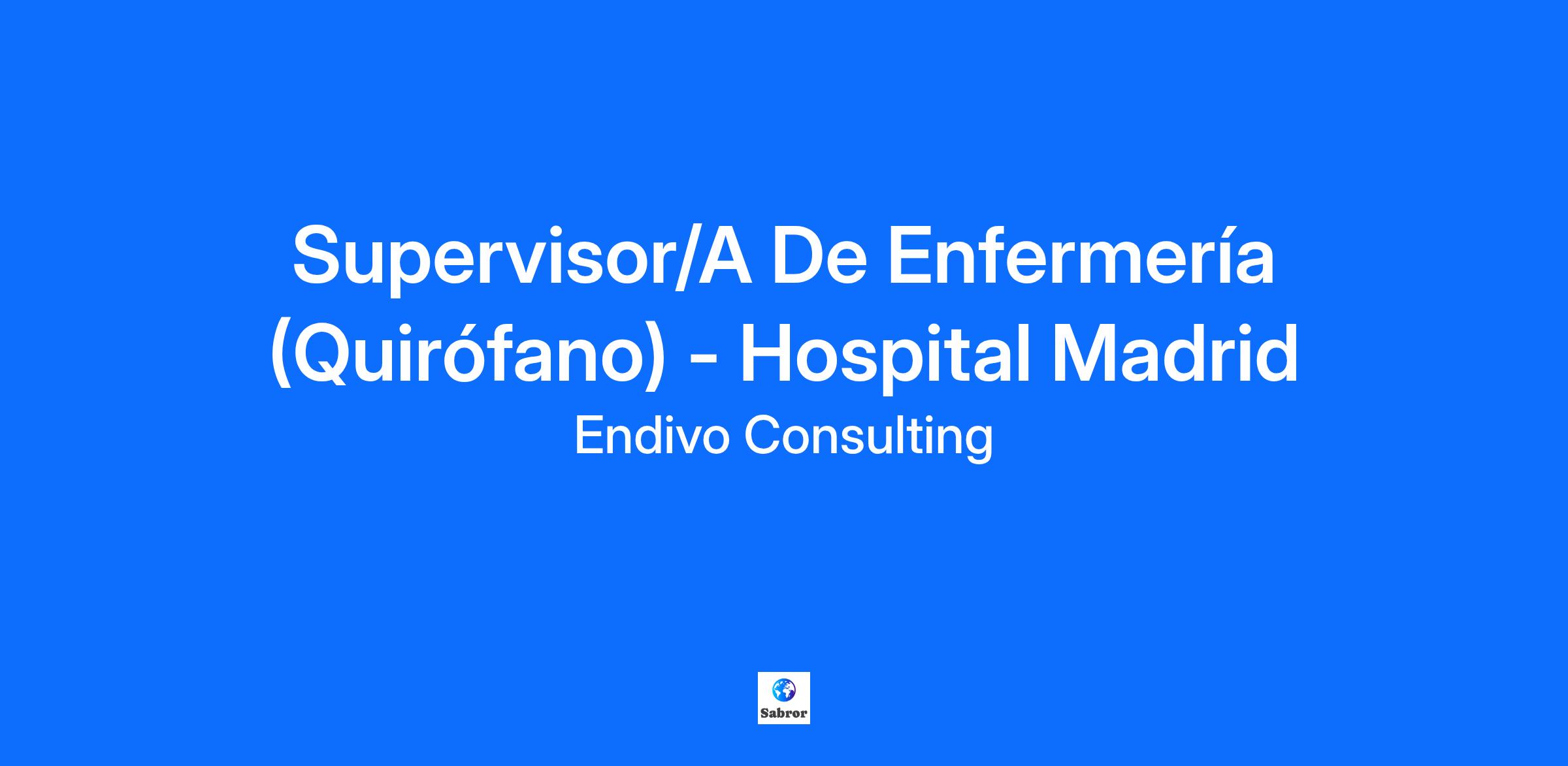Desde Endivo Consulting buscamos un/a Supervisor/a de Enfermería para un importante Hospital Privado ubicado en Madrid para la unidad de Quirófano.