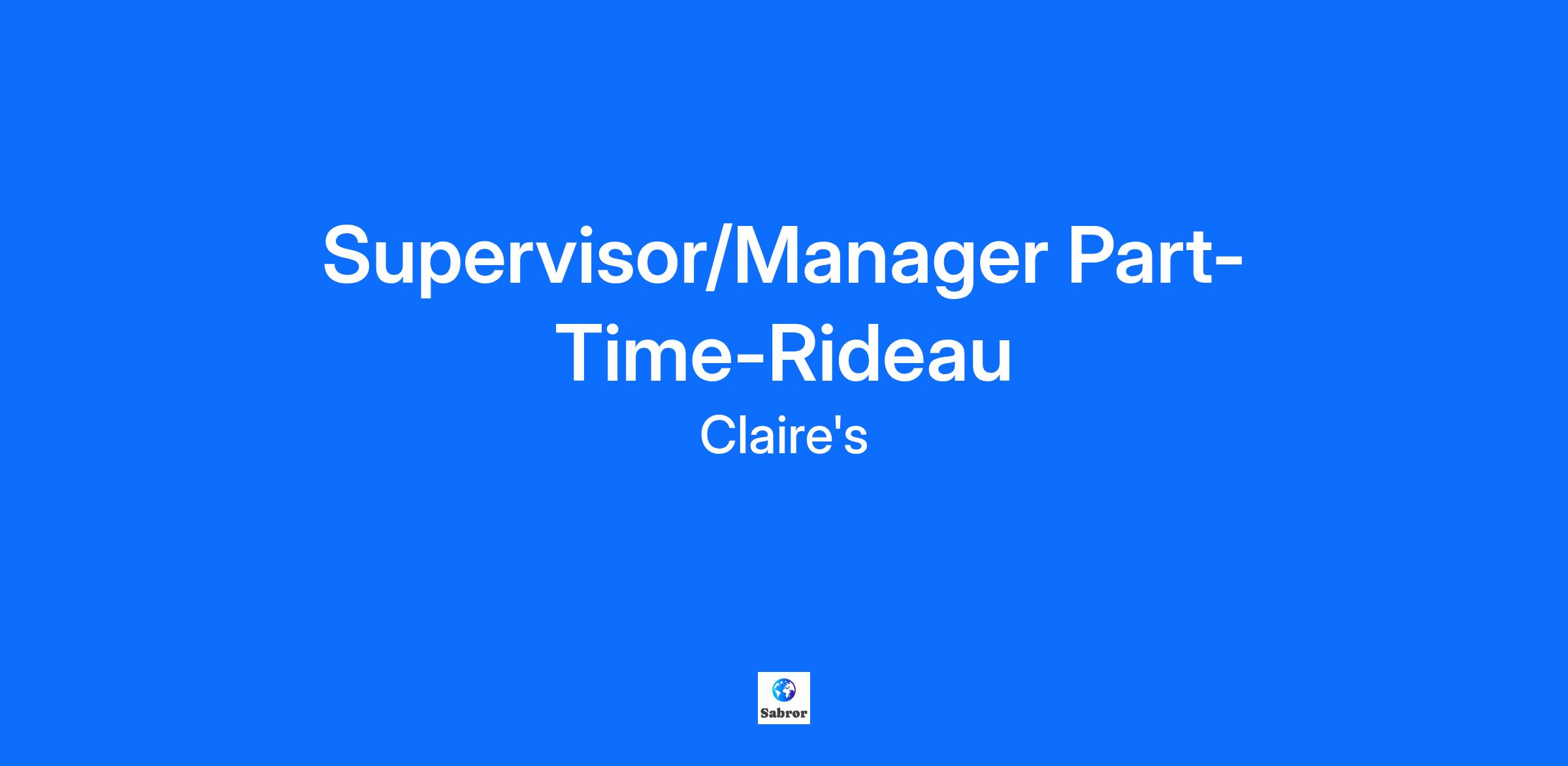 Supervisor/Manager Part-Time-Rideau