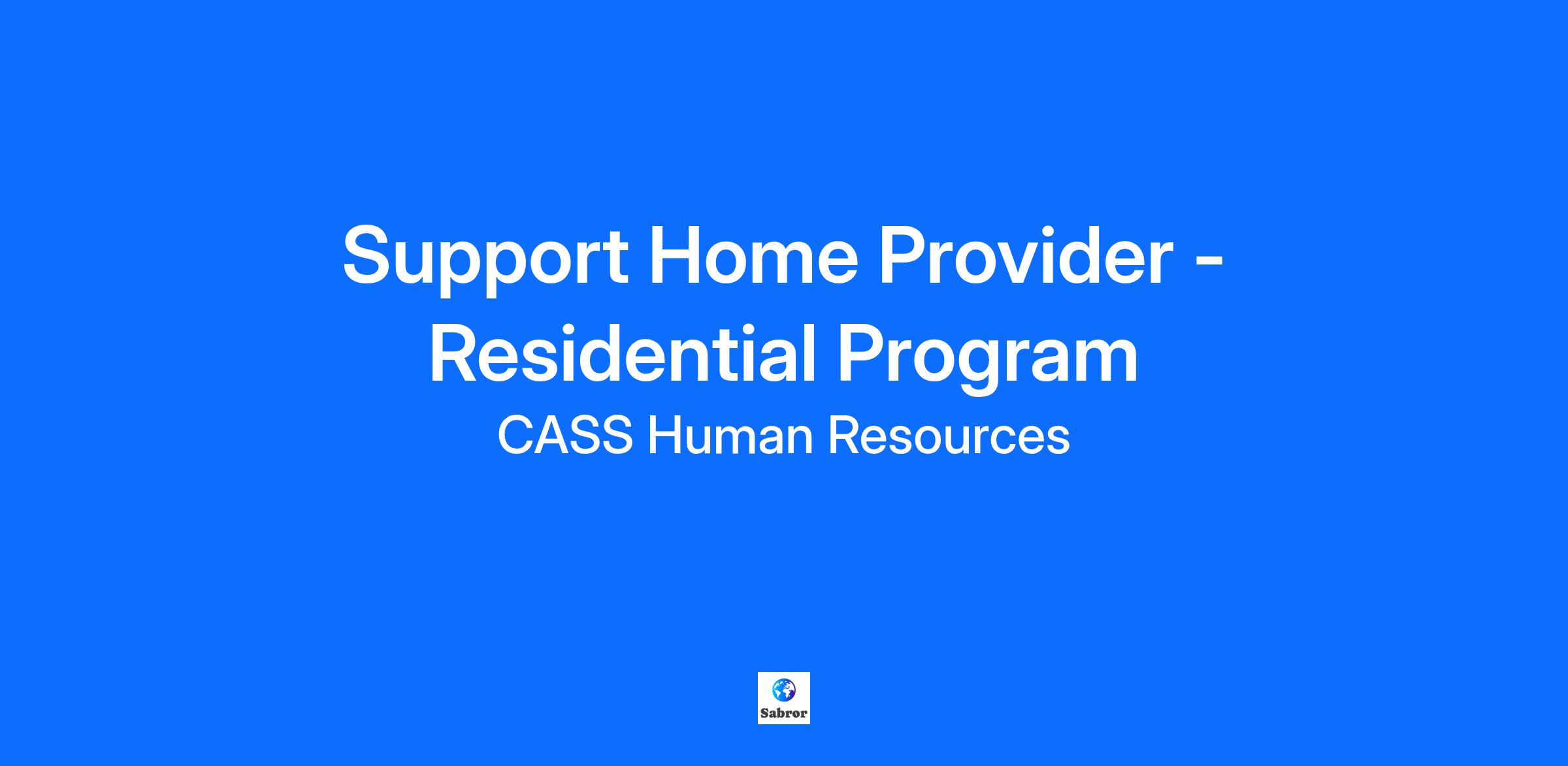 Are you interested in making a difference in the lives of marginalized populations? The field of human services provides meaningful work. What you do has a purpose, and you know it directly impacts and contributes to an individual’s well-being while supporting the development of more inclusive communities which benefit everyone. Calgary Alternative Support Services (CASS) recognizes that the people we employ are our single greatest asset. We endeavour to recruit and mentor human service professionals with talent and commitment for disability advocacy and community engagement. This posting closes on October 2, 2025 Support Home Provider (SHP) A Support Home is a support situation in which a client shares a home with their support person (family or individual), the Support Home Provider (SHP). The client may live in a separate space in the home or share the same living space with the SHP. The SHP generally provides support in all activities of daily living. This includes, but is not limited to, activities such as laundry, housekeeping, making and attending medical appointments, administering medications, planning and preparing healthy meals, budgeting, and recreation and leisure. The supports that SHPs are providing typically occur in the mornings, evenings and weekends, as clients may have a day program, employment, or scheduled activities to attend during the day. However, where this is not the case, the SHP may be responsible for providing support during the day as well. A SHP is classified as a sub-contractor. The sub-contractor is not an employee and therefore does not receive the same benefits as CASS employees, such as vacation time, health benefits or employment insurance contributions. This form of support is considered tax free by the federal and provincial governments, and is not subject to CPP or EI contributions. However, the SHP will receive a T5007 tax form each year and must still declare their income. SHPs provide support to clients in their homes based on the following attributes - education, availability, suitability and level of expertise with specific support requirements - as well as, the safety and suitability of the physical home and area of the city. Required Post secondary education in Human Services Maintains and utilizes current Emergency or Standard First Aid that includes CPR/AED A current police information check with a vulnerable sectors search that is satisfactory to CASS Experience Knowledge in supporting adults with developmental disabilities preferred Required Education Diploma or equivalent experience in Disability Studies Other Required Skills A vehicle and valid driver's license is considered an asset. Referral Program If you have been referred by an existing CASS staff member, please indicate who referred you in your cover letter so that they can be rewarded through our referral program! We thank all applicants in advance for their interest in this position, however, only those selected for an interview will be contacted. No phone calls please.