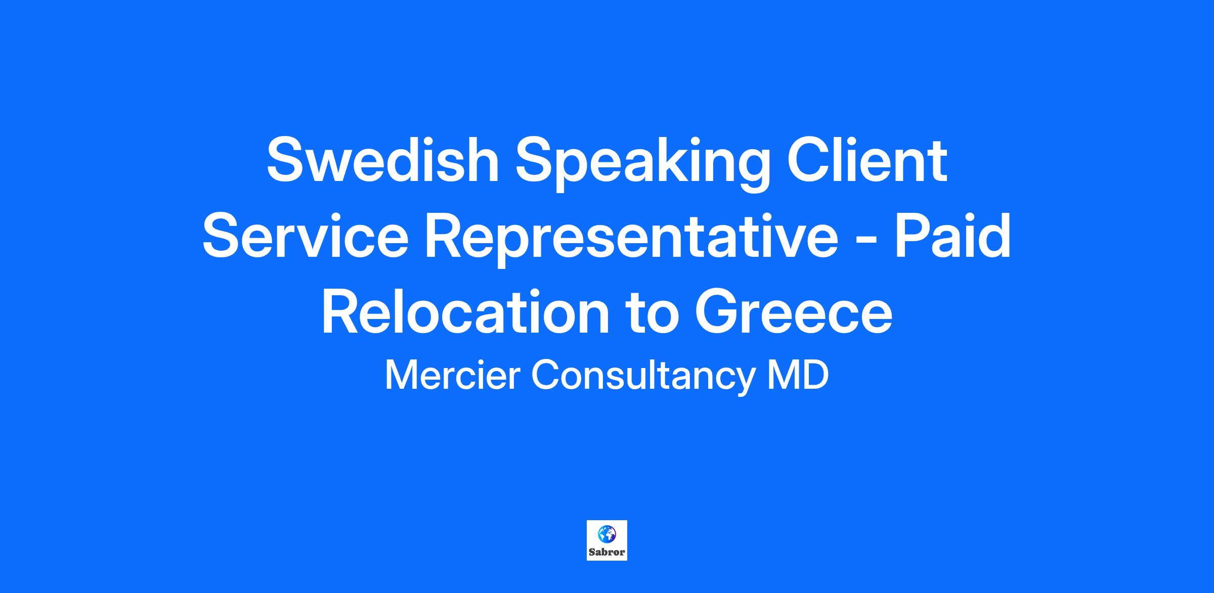 Mercier Consultancy MD is seeking a talented Swedish Speaking Client Service Representative to join our dynamic team. This role offers the exciting prospect of paid relocation to Greece, allowing you to combine your career ambitions with the adventure of living in a beautiful new location! As a Swedish Speaking Client Service Representative, you will be the primary point of contact for our Swedish-speaking clients, ensuring they receive exceptional support and service. Your commitment to client satisfaction will be pivotal in fostering strong relationships and enhancing our service experience. Your Key Responsibilities: Provide high-quality customer support to our Swedish-speaking clients through various channels, including phone, email, and chat. Respond to client inquiries promptly and effectively, ensuring a seamless service experience. Document client interactions accurately in our CRM system for efficient follow-up and service enhancement. Collaborate with internal teams to resolve client issues and improve service delivery. Stay informed about our product offerings to provide accurate information and assistance to clients. What We're Looking For: Fluency in Swedish (both written and spoken); knowledge of English is a plus. Previous experience in customer service or a related field is preferred. Strong communication and interpersonal skills. Ability to approach problems proactively and ensure client satisfaction. Comfortable with technology and able to learn new systems quickly. A friendly demeanor and a strong focus on providing excellent service. Willingness to relocate to Greece and benefit from our paid relocation offer. What We Offer: Competitive Monthly Salary Fully Paid Relocation Package Monthly Performance Bonus 2 Extra Salaries Per Year Health Insurance And Much More...