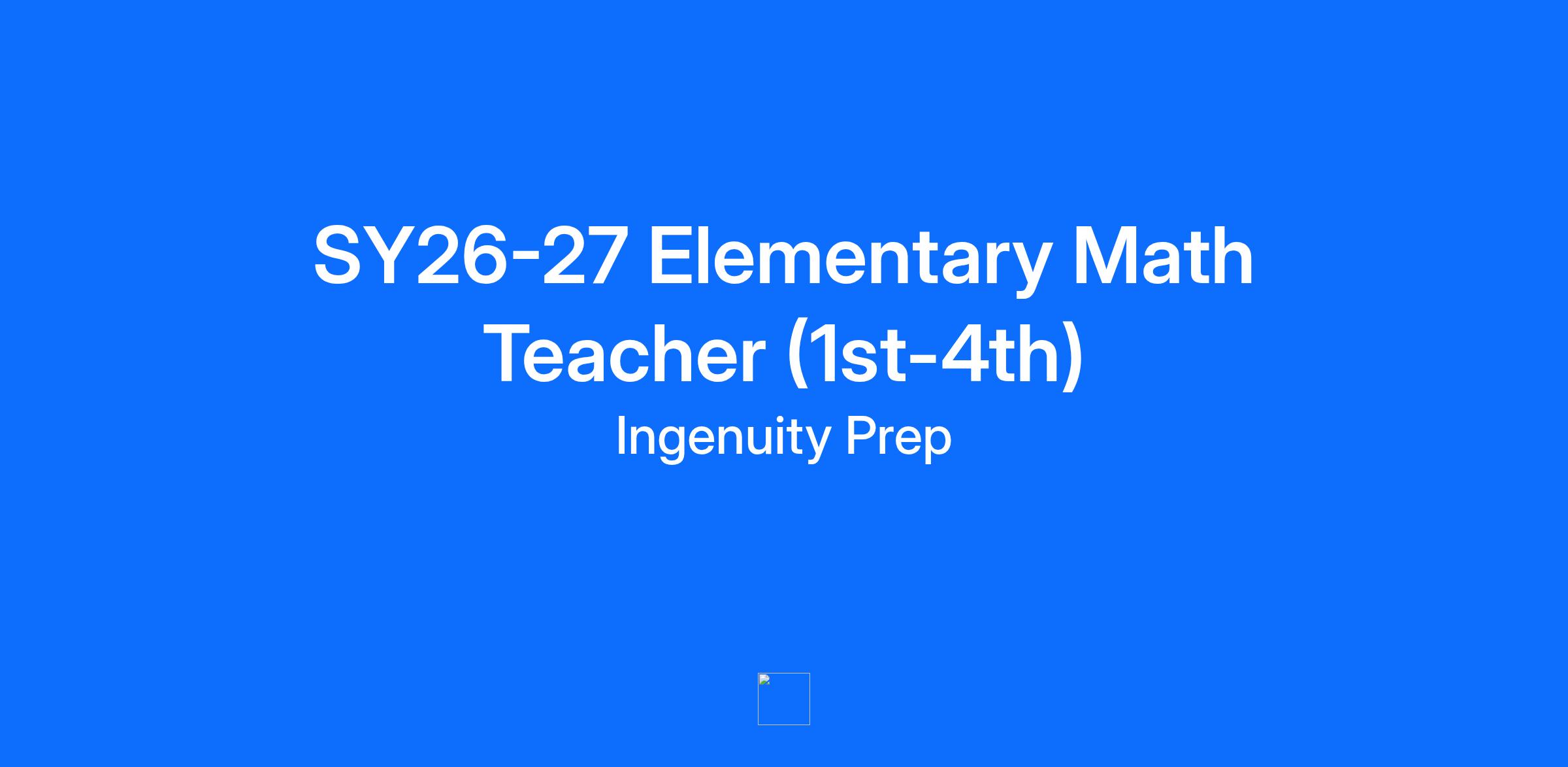 Ingenuity Prep prepares PreK, Elementary, Middle school students in Ward 8 to succeed in college and beyond as impactful civic leaders. Our innovative instructional model promotes small group learning for students, collaborative teaching teams, and robust coaching and professional development opportunities for teachers. Our teacher career ladder rewards strong performance over time, giving teachers the opportunity to earn higher levels of base compensation and bonuses as they demonstrate effectiveness with their students and colleagues. Our instructional leaders are charged with supporting teachers by providing clear expectations, ongoing feedback, and targeted development. We are looking for an Elementary Math Teacher who is deeply committed to students, has a passion for academic rigor and civic leadership, and wants to work closely with their colleagues to continue to build our program for Ingenuity Prep’s students and families during the 2026-2027 school year. WHAT WE’RE ABOUT Mission: We’re closing the opportunity gap. Students and families in Southeast D.C. have too few options for high-quality elementary, middle, and high schools. Ingenuity Prep aspires to right this systemic injustice providing an exemplary educational option for Southeast D.C.’s students and families. Model: We pair high expectations with high support. Too often, our students are underestimated. At Ingenuity Prep, an innovative teacher development model, paired with best-in-class training from strong instructional leaders, allows us to grow great teachers who, ultimately, lead high-expectation and high-support classrooms. Results: Our students are defying expectations. Ingenuity Prep’s students outperform their neighborhood peers on rigorous, national, college-track assessments. Already out-performing many of their more privileged peers around the city, in the coming years, Ingenuity Prep’s students will provide an expectation-defying and achievement-gap-closing proof point — showing what our kids are capable of when we provide the right opportunities, expectations, and support. WHAT YOU’LL DO As an Elementary Math Teacher at Ingenuity Prep, you will: Lead effective whole and small group instruction for students by planning and executing engaging and rigorous lessons based on provided curriculum. Create a joyful, efficient, learning-focused classroom experience for students that leads to exemplary student growth -- both in academic achievement and in leadership skills. Create a strong classroom culture built on trusting relationships and effective, efficient routines and procedures. Engage in ongoing data analysis and lesson revision to ensure you are meeting all students academic needs, including daily exit ticket review and weekly assessment analysis. Collaborate with colleagues to build an effective co-teaching relationship that ensures all students' academic and social emotional needs are met throughout the day. Communicate and work closely with students’ families. Receive regular, individualized coaching from IP’s instructional leadership team to grow your practice. WHO WE’RE LOOKING FOR Ingenuity Prep may be the right fit for you if: You have experience and/or desire to serve as a lead elementary school teacher in a low-income school. You have a passion for providing rigorous instruction for students You want to work closely with your peers in a collaborative teaching setting. You want to work in a feedback-rich culture, and are eager to grow your practice through individual coaching and professional development opportunities. You have a history of effectively using academic data to drive whole-group and small-group instruction. You believe effective instruction is full of joy and rigor. You have consistently built strong relationships with students and partnered with families as part of your plan for student success. You have a track record of holding high expectations for yourself and your students. MORE ABOUT US Ingenuity Prep offers among the strongest compensation and benefits packages of any public charter school in Washington, D.C. Our compensation and benefits package includes: Highly competitive compensation. 100% of medical and dental premiums for employees paid for by Ingenuity Prep, along with 100% of dependent premiums. 100% of employee’s short and long-term disability and life insurance plans paid for by Ingenuity Prep. A minimum of two weeks maternity/paternity leave, up to 6 weeks, at 100% of pay (60% from IP and remaining pay from DC Paid Family Leave ) for all staff — regardless of gender. A 100% match -- up to 3% -- on your 401K retirement plan. A 100% Ingenuity Prep-paid cell phone plan. You can even bring your current number into our plan. MacBook Air computer for professional and personal use. Salary: $64,890 - $81,039 (commensurate with 1-10 years of experience) Ingenuity Prep does not make hiring decisions on the basis of race, color, creed, ethnicity, national origin, gender, gender identity, sexual orientation, socio-economic background, age, disability, veteran status, religion, political affiliation or any other characteristic protected by state, federal, or local law. However, at this time we do not provide job sponsorship for international candidates, and proof of COVID-19 vaccination is required prior to the first day of employment.