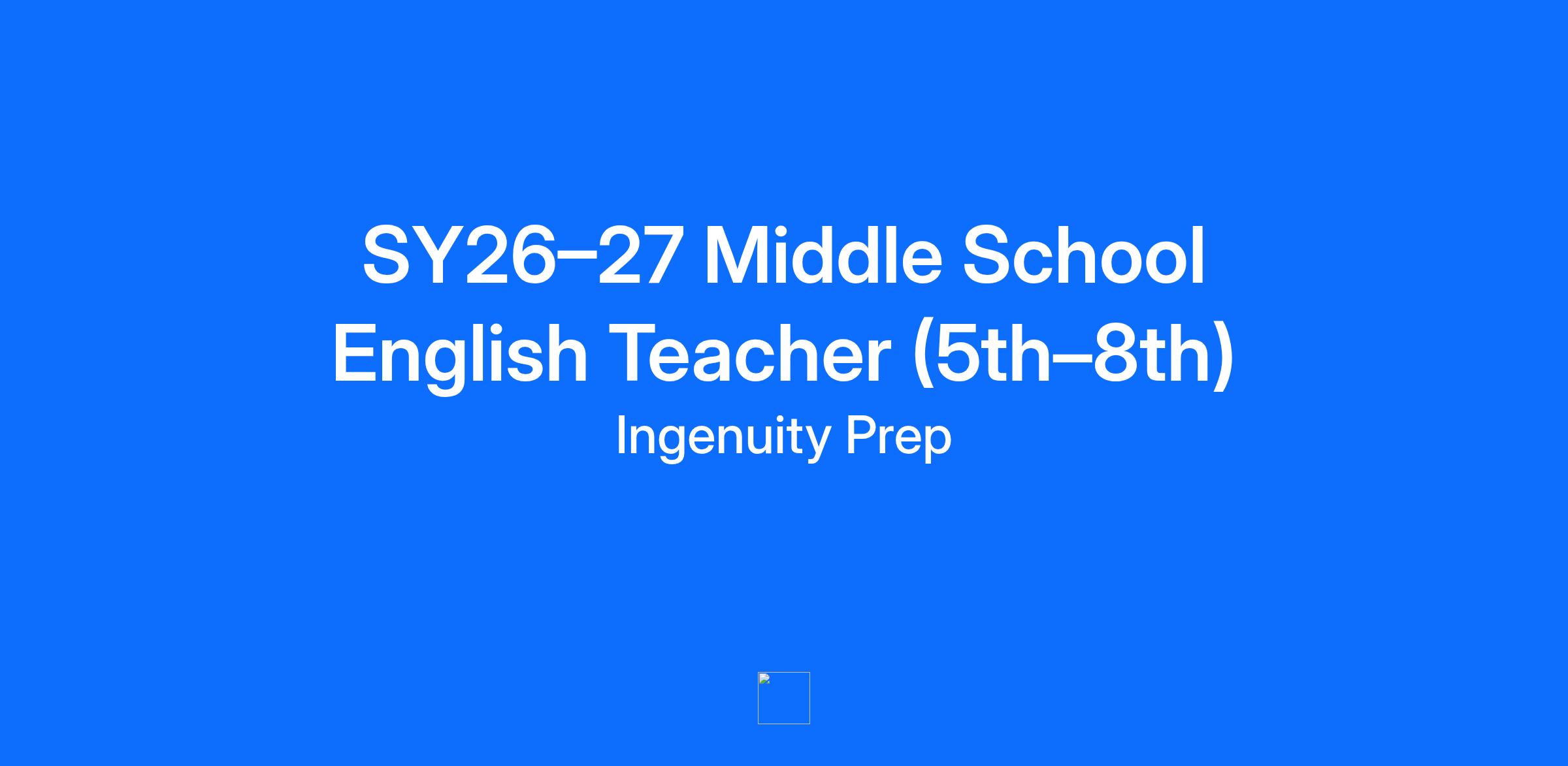 Ingenuity Prep prepares PreK, Elementary, Middle school students in Ward 8 to succeed in college and beyond as impactful civic leaders. Our innovative instructional model promotes small group learning for students, collaborative teaching teams, and robust coaching and professional development opportunities for teachers. Our teacher career ladder rewards strong performance over time, giving teachers the opportunity to earn higher levels of base compensation and bonuses as they demonstrate effectiveness with their students and colleagues. Our instructional leaders are charged with supporting teachers by providing clear expectations, ongoing feedback, and targeted development. We are looking for a Middle School English Teacher who is deeply committed to students, has a passion for academic rigor and civic leadership, and wants to work closely with their colleagues to continue to build our program for Ingenuity Prep’s students and families during the 2026-2027 school year. WHAT WE’RE ABOUT * Mission: We’re closing the opportunity gap. Students and families in Southeast D.C. have too few options for high-quality elementary, middle, and high schools. Ingenuity Prep aspires to right this systemic injustice providing an exemplary educational option for Southeast D.C.’s students and families. * Model: We pair high expectations with high support. Too often, our students are underestimated. At Ingenuity Prep, an innovative teacher development model, paired with best-in-class training from strong instructional leaders, allows us to grow great teachers who, ultimately, lead high-expectation and high-support classrooms. * Results: Our students are defying expectations. Ingenuity Prep’s students outperform their neighborhood peers on rigorous, national, college-track assessments. Already out-performing many of their more privileged peers around the city, in the coming years, Ingenuity Prep’s students will provide an expectation-defying and achievement-gap-closing proof point — showing what our kids are capable of when we provide the right opportunities, expectations, and support. WHAT YOU’LL DO As an Middle School Teacher at Ingenuity Prep, you will: * Lead effective whole and small group instruction for students by planning and executing engaging and rigorous lessons based on provided curriculum. * Create a joyful, efficient, learning-focused classroom experience for students that leads to exemplary student growth -- both in academic achievement and in leadership skills. * Create a strong classroom culture built on trusting relationships and effective, efficient routines and procedures. * Engage in ongoing data analysis and lesson revision to ensure you are meeting all students academic needs, including daily exit ticket review and weekly assessment analysis. * Collaborate with colleagues to build an effective co-teaching relationship that ensures all students' academic and social emotional needs are met throughout the day. * Communicate and work closely with students’ families. * Receive regular, individualized coaching from IP’s instructional leadership team to grow your practice. * Work collaboratively in a co-teaching environment to establish routines, provide instruction and and analyze date to improve student outcomes WHO WE’RE LOOKING FOR Ingenuity Prep may be the right fit for you if: * You have experience and/or desire to serve as a lead middle school teacher in a low-income school. * You have a passion for providing rigorous instruction for students * You want to work closely with your peers in a collaborative teaching setting. * You want to work in a feedback-rich culture, and are eager to grow your practice through individual coaching and professional development opportunities. * You have a history of effectively using academic data to drive whole-group and small-group instruction. * You believe effective instruction is full of joy and rigor. * You have consistently built strong relationships with students and partnered with families as part of your plan for student success. * You have a track record of holding high expectations for yourself and your students. * You have a Bachelor's Degree from an accredited university. MORE ABOUT US Ingenuity Prep offers among the strongest compensation and benefits packages of any public charter school in Washington, D.C. Our compensation and benefits package includes: * Highly competitive compensation. * 100% of medical and dental premiums for employees paid for by Ingenuity Prep, along with 100% of dependent premiums. * 100% of employee’s short and long-term disability and life insurance plans paid for by Ingenuity Prep. * A minimum of two weeks maternity/paternity leave, up to 6 weeks, at 100% of pay (60% from IP and remaining pay from DC Paid Family Leave ) for all staff — regardless of gender. * A 100% match -- up to 3% -- on your 401K retirement plan. * A 100% Ingenuity Prep-paid cell phone plan. You can even bring your current number into our plan. * MacBook Air computer for professional and personal use. Salary: $64,890 - $81,039 (commensurate with 1-10 years of experience) Ingenuity Prep does not make hiring decisions on the basis of race, color, creed, ethnicity, national origin, gender, gender identity, sexual orientation, socio-economic background, age, disability, veteran status, religion, political affiliation or any other characteristic protected by state, federal, or local law. However, at this time, we do not provide job sponsorship for international candidates, and proof of COVID-19 vaccination is required prior to the first day of employment.
