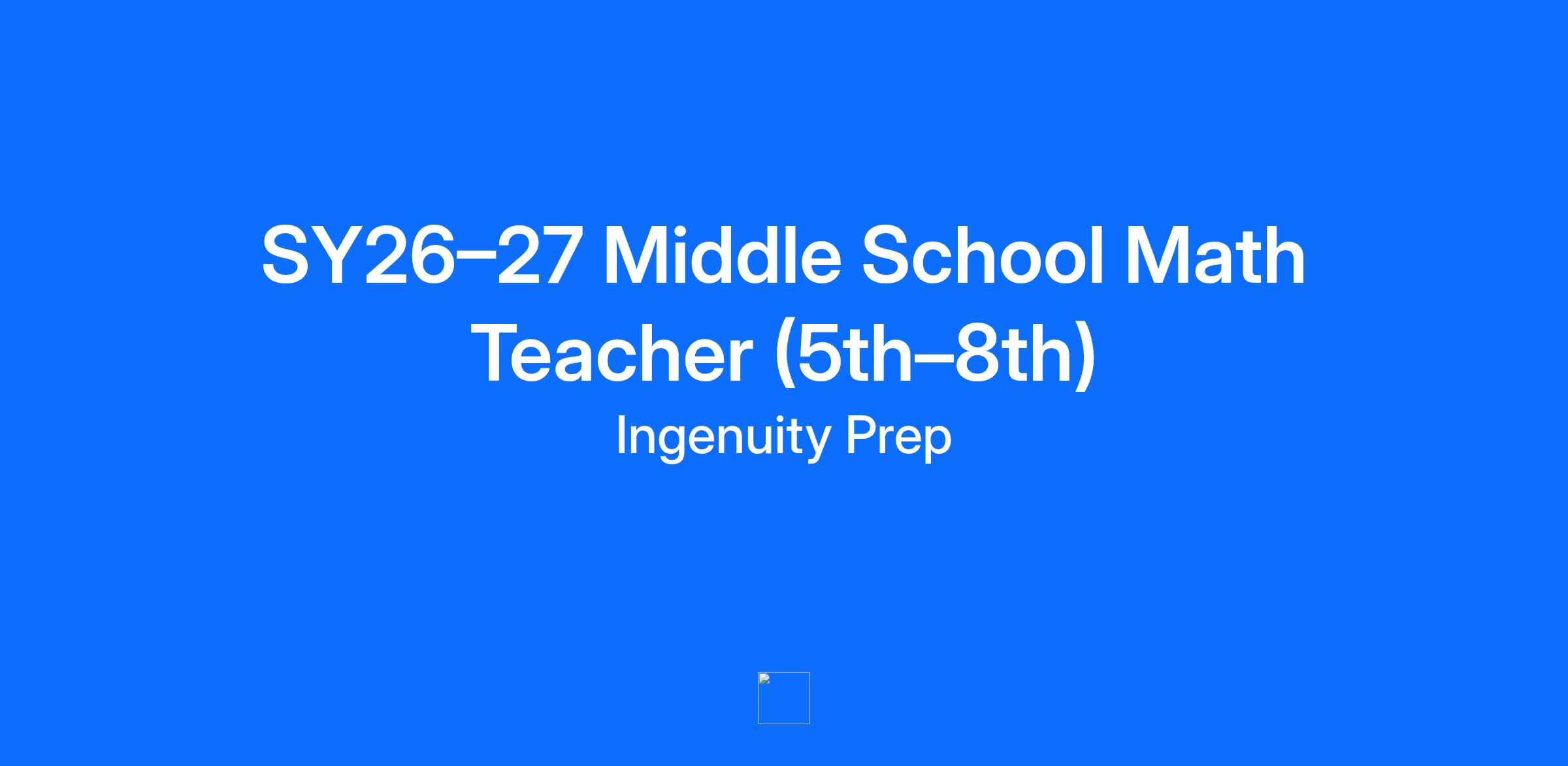 Ingenuity Prep prepares PreK to 8th grade students in Ward 8 to succeed in college and beyond as impactful civic leaders. Our innovative instructional model promotes small group learning for students, collaborative teaching teams, and robust coaching and professional development opportunities for teachers. Our teacher career ladder rewards strong performance over time, giving teachers the opportunity to earn higher levels of base compensation and bonuses as they demonstrate effectiveness with their students and colleagues. Our instructional leaders are charged with supporting teachers by providing clear expectations, ongoing feedback, and targeted development. We are looking for a teacher who is deeply committed to students, has a passion for both math and civic leadership, and wants to work closely with their colleagues during the 2026-2027 school year. WHAT WE’RE ABOUT Mission: We’re closing the opportunity gap. Students and families in Southeast D.C. have too few options for high-quality elementary, middle, and high schools. Ingenuity Prep aspires to right this systemic injustice providing an exemplary educational option for Southeast D.C.’s students and families. Model: We pair high expectations with high support. Too often, our students are underestimated. At Ingenuity Prep, an innovative teacher development model, paired with best-in-class training from strong instructional leaders, allows us to grow great teachers who, ultimately, lead high-expectation and high-support classrooms. Results: Our students are defying expectations. Ingenuity Prep’s students outperform their neighborhood peers on rigorous, national, college-track assessments. Already out-performing many of their more privileged peers around the city, in the coming years, Ingenuity Prep’s students will provide an expectation-defying and achievement-gap-closing proof point — showing what our kids are capable of when we provide the right opportunities, expectations, and support. WHAT YOU’LL DO As a Middle School Math Teacher at Ingenuity Prep, you will: Build meaningful relationships with your students. Lead math instruction for 5th-8th grade students, from planning to executing engaging and rigorous lessons. Lead instruction for one elective course, with a focus on preparing students to understand coding and technology. Create a joyful, efficient, learning-focused classroom experience for students that leads to exemplary student growth -- both in academic achievement and in leadership skills Collaborate with and support colleagues in the classroom as you build and refine a new middle school program and through weekly professional development opportunities. Provide emotional constancy and support for your students -- and your colleagues. Communicate and work closely with students’ families. Utilize Teach Like a Champion teaching techniques to ensure that effective teaching practices are promoted in the learning environment. Receive regular, individualized coaching from IP’s instructional leadership team to grow your practice. WHO WE’RE LOOKING FOR Ingenuity Prep may be the right fit for you if: You have experience and/or desire to serve as a lead middle school teacher in a low-income school. You have a passion for math and some knowledge of coding. You want to work closely with your peers in a collaborative teaching setting. You want to work in a feedback-rich culture, and are eager to grow your practice through individual coaching and professional development opportunities. You have a history of effectively using academic data to drive whole-group and small-group instruction. You believe effective instruction is full of joy and rigor. You have consistently built strong relationships with students and partnered with families as part of your plan for student success. You have a track record of holding high expectations for yourself and your students. You have a Bachelor’s Degree. MORE ABOUT US Ingenuity Prep offers among the strongest compensation and benefits packages of any public charter school in Washington, D.C. Our compensation and benefits package includes: An innovative compensation structure (salary and bonus) for instructional positions based on demonstrated effectiveness and retention. Highly competitive compensation for non-instructional positions. 100% of medical and dental premiums for employees paid for by Ingenuity Prep, along with 100% of dependent premiums and 50% of spouse’s or domestic partner’s premiums. 100% of employee’s short and long-term disability and life insurance plans paid for by Ingenuity Prep. A minimum of two weeks maternity/paternity leave, up to 6 weeks, at 100% of pay (60% from IP and remaining pay from DC Paid Family Leave ) for all staff — regardless of gender. A 100% match -- up to 3% -- on your 401K retirement plan. A 100% Ingenuity Prep-paid cell phone plan. You can even bring your current number into our plan. MacBook Air computer for professional and personal use Ingenuity Prep does not make hiring decisions on the basis of race, color, creed, ethnicity, national origin, gender, gender identity, sexual orientation, socio-economic background, age, disability, veteran status, religion, political affiliation or any other characteristic protected by state, federal, or local law. All candidates are required to be fully vaccinated prior to their first day of employment.