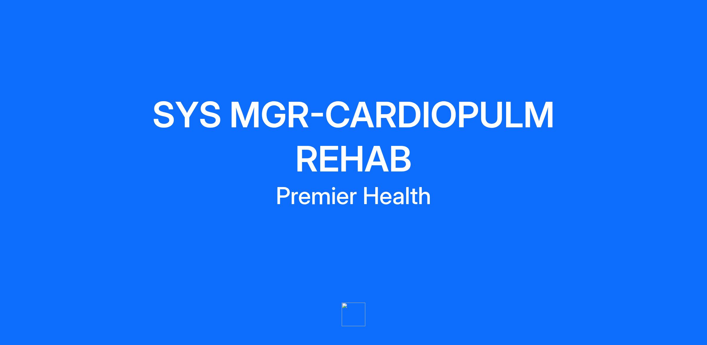 The System Manager – Cardipulmonary Rehab will be responsible for operations of all Premier Health Cardiopulmonary Rehabilitation Sites and Diagnostic testing centers to ensure comprehensive evaluation and rehabilitation of patients who participate in the cardiopulmonary rehabilitation program. The system manager also will oversee cardiovascular diagnostic testing operations of stress lab, and EKG at the Miami Valley Hospital campuses and offsite locations. The position requires a thorough knowledge of fiscal management, human resource management, program development, current trends, and regulatory requirements as it relates to cardiopulmonary rehab and diagnostic services. The Manager must be able to work with the team to enhance patient flow and offer top decile patient experience. Exceptional interpersonal communication is required as the Manager must be able to build relationships with multiple physician practices, as well as promote the services across all markets in Premier’s service area. SYS MGR-CARDIOPULM REHAB FT, 8a-4:30p, 80 hrs/pay The System Manager – Cardipulmonary Rehab will be responsible for operations of all Premier Health Cardiopulmonary Rehabilitation Sites and Diagnostic testing centers to ensure comprehensive evaluation and rehabilitation of patients who participate in the cardiopulmonary rehabilitation program. The system manager also will oversee cardiovascular diagnostic testing operations of stress lab, and EKG at the Miami Valley Hospital campuses and offsite locations. The position requires a thorough knowledge of fiscal management, human resource management, program development, current trends, and regulatory requirements as it relates to cardiopulmonary rehab and diagnostic services. The Manager must be able to work with the team to enhance patient flow and offer top decile patient experience. Exceptional interpersonal communication is required as the Manager must be able to build relationships with multiple physician practices, as well as promote the services across all markets in Premier’s service area. Education: Minimum Level of Education Required: Bachelor's degree Additional requirements: · Type of degree: Bachelor’s Degree · Area of study or major: Healthcare Administration or other applicable field. · Preferred educational qualifications: Registered Respiratory Therapist (RRT), Registered polysomnographic technologist (RPSGT) · Position specific testing requirement: N/A · Licensure/Certification/Registration · Registered Nurse (RN) Experience Minimum Level of Experience Required: 5 - 7 years of job related experience Prior job title or occupational experience: Progressive leadership experience Prior specific functional responsibilities: N/A Preferred experience: N/A Other experience requirements: N/A