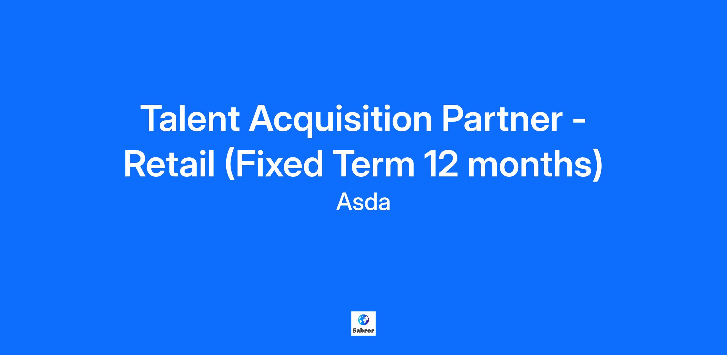 Job Title Talent Acquisition Partner - Retail (Fixed Term 12 months) Location Asda House Employment Type Full time Contract Type Fixed Term Hours Per Week 37.5 Salary Competitive salary plus benefits. Category HR Generalists Closing Date 4 December 2025 Talent Acquisition Partner – Retail This is a fixed term role for 12 months covering maternity leave with a start date needed of 1st February, there will be a requirement to be in Leeds 3 days per week. “Find your role” As a Talent Acquisition Partner, you’ll play a key role in delivering exceptional recruitment support for our retail business. You’ll manage end-to-end hiring for salaried roles across our stores in the South, ensuring we attract and secure the best talent to keep our business thriving. This role is hands-on, requiring strong sourcing skills, market insight, and the ability to engage passive candidates in a competitive market. You’ll work closely with hiring managers to understand their needs, provide expert advice, and deliver a seamless candidate experience that reflects our brand values. From crafting compelling job adverts to headhunting for critical roles, you’ll be a trusted partner who helps shape our retail talent pipeline. Key Responsibilities Manage end-to-end recruitment for salaried retail roles across multiple locations. Partner with hiring managers to understand requirements and deliver tailored hiring solutions. Use advanced sourcing techniques, market mapping, and competitor analysis to identify and engage passive talent. Create job adverts and manage candidate attraction through multiple channels. Ensure a positive candidate experience throughout the recruitment process. Maintain compliance with recruitment policies and diversity initiatives Provide insights on market trends and talent availability to support workforce planning. Let’s Find Out About You Essential Skills Proven experience in end-to-end recruitment, ideally within retail or high-volume environments, we are very open-minded on background, but candidates from an in-house talent acquisition or agency recruitment team will certainly find synergy with this role Strong headhunting and sourcing skills, with the ability to engage passive candidates. Excellent stakeholder management and influencing skills. Ability to work in a fast-paced environment and deliver against tight deadlines. Familiarity with ATS systems and recruitment technology. Strong communication skills and a commitment to delivering an outstanding candidate experience. Knowledge of employment legislation and diversity best practices. You will possess genuine enthusiasm and curiosity for Talent Acquisition and a lifelong learning mentality to ensure you stay relevant in your field for your stakeholders. Everything you'll love To ensure we balance moments where we know we need to collaborate together and the need for flexibility, Asda has a hybrid way of working with a minimum 3 days a week in one of our Home Offices. Over and above this, each area of Asda may have additional requirements which may require spending more days in the office, visiting suppliers, stores or depots. You will also get an excellent benefits package including: Discretionary company bonus Company pension up to 7% matched 15% colleague discount in store and online Free access to wellbeing services such as Stream, 24/7 virtual GP, counselling, health and dental cash plans and a 24/7 employee assistance helpline, alongside discounts across a range of services and activities, from airport parking, enhanced to theme parks and cinemas. Asda Allies Inclusion Networks – helping colleagues to make sure everybody is included and that our differences are recognised and celebrated Excellent parental leave policies, including maternity & adoption leave, paternity leave, shared parental leave, neonatal care leave, and support for those doing fertility treatments. We want all colleagues to be able to bring their best and true selves to work, every day. Simply put, we want our colleagues to be Proud to be Asda and proud to be themselves Asda is Reimagining Retail It’s hard for anyone to imagine how many different career possibilities there are at Asda. Ours is a big business, and beyond the roles you might be familiar with there are hundreds more you don’t often get to see. In fact, because our business is changing we're creating new roles all the time! So take the time to look around. Once you’ve had the chance to explore our current open positions, apply to the ones you feel suit you best. And don't forget you can keep an eye on new positions and check how your current applications are progressing by visiting regularly.