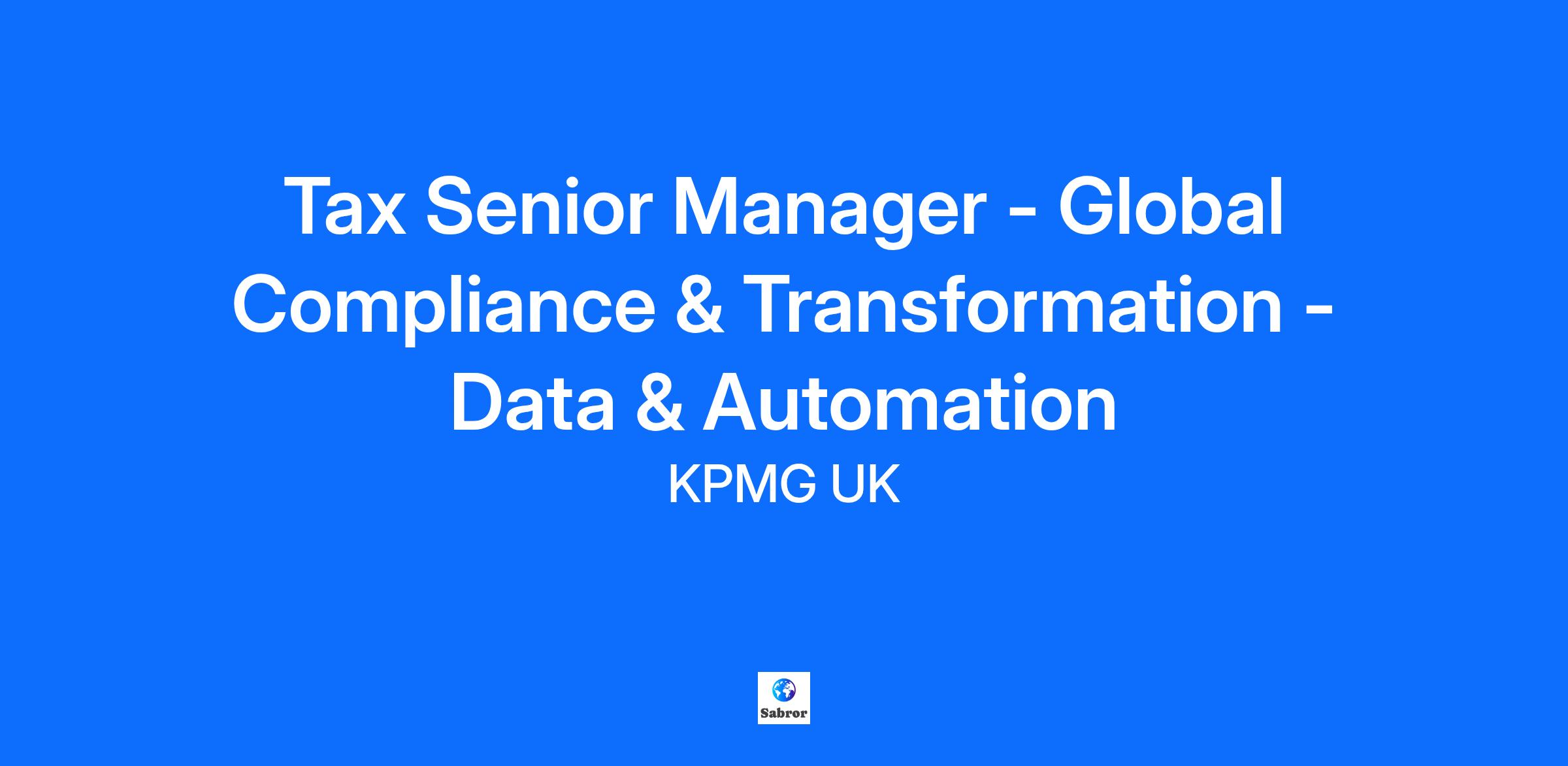 At KPMG we have re-imagined careers in Global Compliance & Transformation (GCT). A key focus for KPMG’s GCT team is to help multinational groups and financial services clients manage their global tax compliance, reporting and statutory accounting obligations, through outsourcing, co-sourcing, transformation and technology.   Our clients leverage KPMG’s compliance and transformation expertise and technology to drive better visibility, greater efficiency and improved risk management across their organisation.  Ultimately we prepare groups for the future of digital compliance helping them develop a sustainable, technology- enabled and holistic future state operating model.   We are winning new clients and are rapidly growing our team as a result of these investments and successes. As part of an established KPMG network of expert teams and delivery centres, you will have a fantastic opportunity to experience the global nature of these services. Delivery is underpinned by our innovative KPMG Digital Gateway platform. This is an exciting time to be part of our GCT team at KPMG where reimagining tax is a strategic priority for our UK and Global business.  We have a diverse client base, from mid-market to FTSE listed groups, from public sector to real estate to financial services. The role involves working on clients of all sizes and across a wide range of sectors.    We are offering full time roles with flexible working arrangements which include, early or late starts to fit around other commitments, shorter working days etc.  We would be happy to discuss your own requirements and our range of flexible working arrangements in more detail, should that be of interest.  You will also have the opportunity to develop your career in a dynamic part of the business, within a team that embraces diversity and personal development.  We are actively recruiting experienced individuals across the following areas.   BEPs: Help clients transform their operating model, processes, systems, data in preparation for Pillar 2 Managed Services: Provide compliance services to global clients across a range of tax, accounting, transfer pricing obligations under a managed service arrangement Technology: Help clients leverage the right technology, tools and platforms to transform their tax function Tax Operating Model: Collaborate with clients to build and operate a leading tax function, managing tax risk, opportunities, reputation and compliance Data Management: Support client tax teams to maximise the use of data available in the organisation in order to effectively manage the Tax Function    Senior Manager - Data and Automation   We are looking for talented Senior Managers to join us in Canada Square, London (although flexibility on location will be considered) with experience in a broad range of areas including: Deep tax compliance, automation and reporting expertise, particularly around indirect taxes, including EMEA compliance Familiarity with end-to-end finance processes (Accounts Payable, Accounts Receivable, Record-to-report) and their integration with tax Advising on appropriate tax technology to support compliance and reporting processes Deep tax technology implementation experience, including requirements gathering from a tax, IT & User Interface perspective, and creating and reviewing design documentation Tax transformation experience, including tax governance, process design and improvement Project management Client and engagement management   In addition to these key areas, other desirable but not essential skills include: Data, data bases, data transmission and data transformation including an understanding of structured query language (SQL) Analysing large volumes of data Designing cloud-based practical applications from a tax perspective Acting as a functionality translator, being the primary liaison between technology teams and tax teams   Roles & Responsibilities:   Leading and managing the overall delivery of tax transformation and technology projects, often as part of a wider finance transformation program Helping clients to design, build and deploy automation solutions which are designed for Tax Supporting our clients in designing systems which address tax requirements in different countries in the optimal way Working together with Tax Transformation and GCT colleagues as well as other teams in KPMG such as Consulting Helping clients develop robust global governance and control frameworks Develop our service offerings and service delivery models Establishing and maintaining strong client relationships with our clients Performance manage managers and assistant managers and oversee the output from offshore resource in order to deliver client projects; Identify opportunities to provide additional services that the client may need and liaise with subject specialists Coaching and technical support for other team members Follow KPMG best practice and policy.   Knowledge and Experience:   At senior manager level you will be proactive, curious, committed and invested in self development and learning.  You will demonstrate resilience, accountability, flexibility, be experienced in leading others, managing significant size engagements and client relationships, driving results and managing risk.    Across GCT we would welcome applications from those qualified by experience, as well as ATT / CTA / ACA or equivalent qualifications.  Project Management qualifications along with specific transformation skills (e.g. Lean Six Sigma) are also welcome.  Further skills and experience are outlined below:   Awareness of technology and automation to drive efficiency, risk management and value Experience in process, risk and controls design Excellent interpersonal skills with strong oral and written communication skills. Communicates with impact, in a way that is open, honest, consistent and clear; Takes personal responsibility and accountability for own work. Sustains a high level of drive, sho