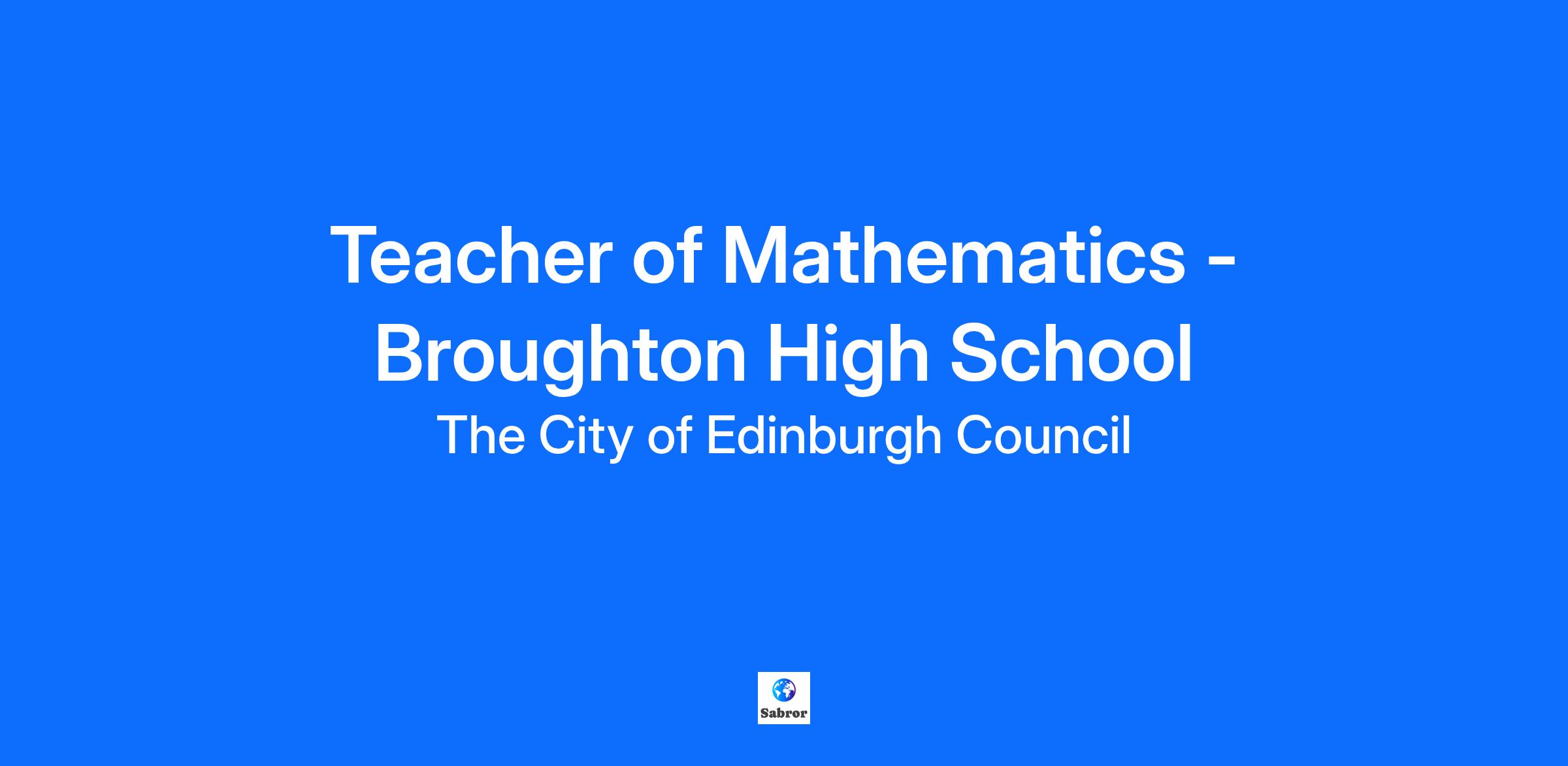 Teacher of Maths - fixed term until 26/06/2025 Broughton High School Salary: £34,938 - £52,614 Hours: 35 per week Broughton High School is founded on the values of respect, inclusion and integrity. We have high aspirations for our young people and believe that together we achieve more. Located to the north of Edinburgh’s City Centre, our school building is a superb example of modern architecture: its appearance inspires those who learn and work here, and it operates very effectively as a learning environment. Broughton fully integrates and embraces three specialist provisions into the life and work of the school: the Edinburgh Music School, the SFA Performance School and the Specialist Dance Unit. We believe in enabling every young person to fulfil their potential as an individual and as a member of their wider community. We emphasise the importance of excellent teaching and learning and strive to deliver flexible learning pathways that meet the needs of all young people. We are seeking an enthusiastic and skilled Teacher to join our thriving Mathematics team on a fixed term basis. This post is suitable for interested Secondary Maths Teachers and Primary Teachers with experience of Teaching Maths / Numeracy across BGE levels of CfE. You will be well supported by a collaborative and forward-thinking department committed to ensuring success in learning for all. This post is regulated work with children and/or protected adults under the Protection of Vulnerable Groups (Scotland) Act 2007. The preferred candidate will be required to join the PVG Scheme or undergo a PVG Scheme update check. Where an individual has spent a continuous period of 3 months or more out with the UK in the last 5 years, an Overseas Criminal Record Check will be required. You will be required to provide this check. An unconditional offer of employment and commencement in the post will be subject to the outcome of both these pre-employment checks being deemed satisfactory. Salaries will be in accordance with the Scheme of Salaries and Conditions of Service for Teaching Staff in School Education. We're committed to creating a workplace culture where all our people feel valued, included and able to be their best at work, and we recognise the benefits that a diverse workforce with different values, beliefs, experience, and backgrounds brings to us as an organisation. As part of our goal to improve our organisational culture and create a great place to work together for the people of Edinburgh, we want to make sure that we’re bringing the best people into our roles, not just in their skills and experience but also in their approach to work. You can find out more on Our Behaviours web page Our Behaviours – The City of Edinburgh Council Happy to talk flexible working. Follow us on X at @edincounciljobs View Teacher job description View Teacher person specification