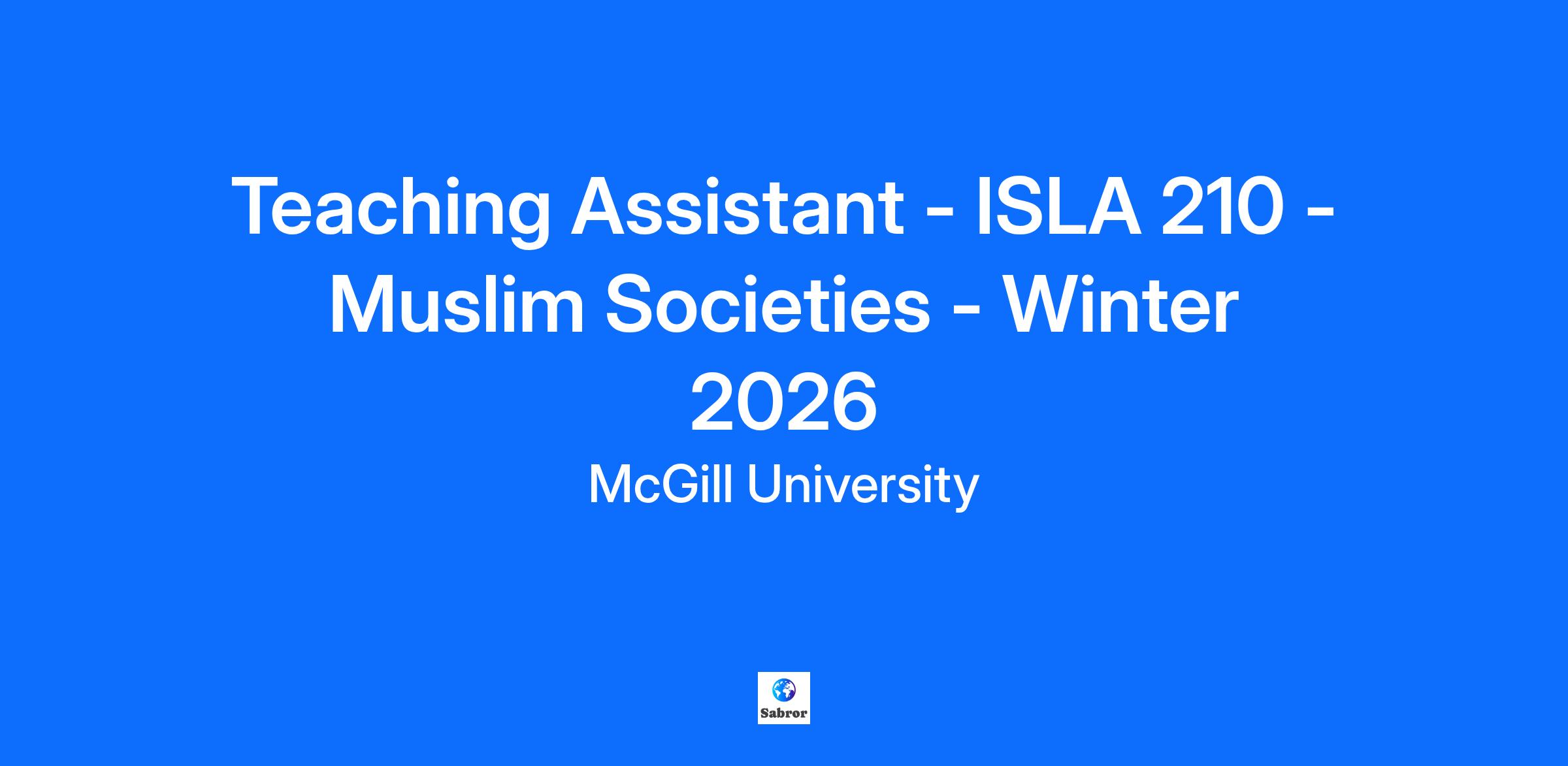 Please refer to the How to Apply for a Job (for External Candidates) job aid for instructions on how to apply. If you are an active McGill employee (ie: currently in an active contract or position at McGill University), do not apply through this Career Site. Login to your McGill Workday account and apply to this posting using the Find Jobs report (type Find Jobs in the search bar). Hiring Unit: Institute of Islamic Studies Course Title and Course Number: ISLA 210 - Muslim Societies Estimated Number of Positions: 3 Total Hours of Work per Term: 180 Position Summary: The successful applicants will facilitate weekly student conferences, attend lectures, and confer with students during regular office hours in space designated by the Institute. T. A.'s will also evaluate student work, including exams. Invigilation may also be required. T. A.'s will be expected to develop and present some course content. Tasks will also include meeting with course supervisor, reading required material for the class and preparation for and leading of conferences and class discussions. Qualifications: Preference will be given to graduate students in the PhD program at the Institute of Islamic Studies; -Applicants must be in good standing in their academic program; -Demonstrable knowledge of contemporary Islamic history and Muslim societies and issues are required. Language Requirements: English; reading knowledge of at least one Islamic language is preferred. McGill University is committed to equity and diversity within its community and values academic rigour and excellence. We welcome and encourage applications from racialized persons/visible minorities, women, Indigenous persons, persons with disabilities, ethnic minorities, and persons of minority sexual orientations and gender identities, as well as from all qualified candidates with the skills and knowledge to engage productively with diverse communities. At McGill, research that reflects diverse intellectual traditions, methodologies, and modes of dissemination and translation is valued and encouraged. Candidates are invited to demonstrate their research impact both within and across academic disciplines and in other sectors, such as government, communities, or industry. McGill further recognizes and fairly considers the impact of leaves (e.g., family care or health-related) that may contribute to career interruptions or slowdowns. Candidates are encouraged to signal any leave that affected productivity, or that may have had an effect on their career path. This information will be considered to ensure the equitable assessment of the candidate’s record. McGill implements an employment equity program and encourages members of designated equity groups to self-identify. It further seeks to ensure the equitable treatment and full inclusion of persons with disabilities by striving for the implementation of universal design principles transversally, across all facets of the University community, and through accommodation policies and procedures. Persons with disabilities who anticipate needing accommodations for any part of the application process may contact, in confidence, accessibilityrequest.hr@mcgill.ca. All qualified applicants are encouraged to apply; however, in accordance with Canadian immigration requirements, Canadians and permanent residents will be given priority. Located in one of the world’s great multicultural and multilingual cities, McGill University is internationally recognized for its excellence as a leading institution of higher education and research. For nearly 200 years, through the work of dedicated people, McGill has been breaking ground in diverse fields and contributing solutions to some of the world’s most significant issues. McGillians are proud to be part of a community that is both global and local, inspired by challenge and committed to shaping a better future. McGill received a Platinum STARS rating in sustainability, is among Canada’s greenest employers, and is a top Montreal Employer. Grandescunt Aucta Labore. By work, all things increase and grow. Find a sense of purpose. Develop your future. Join us today.