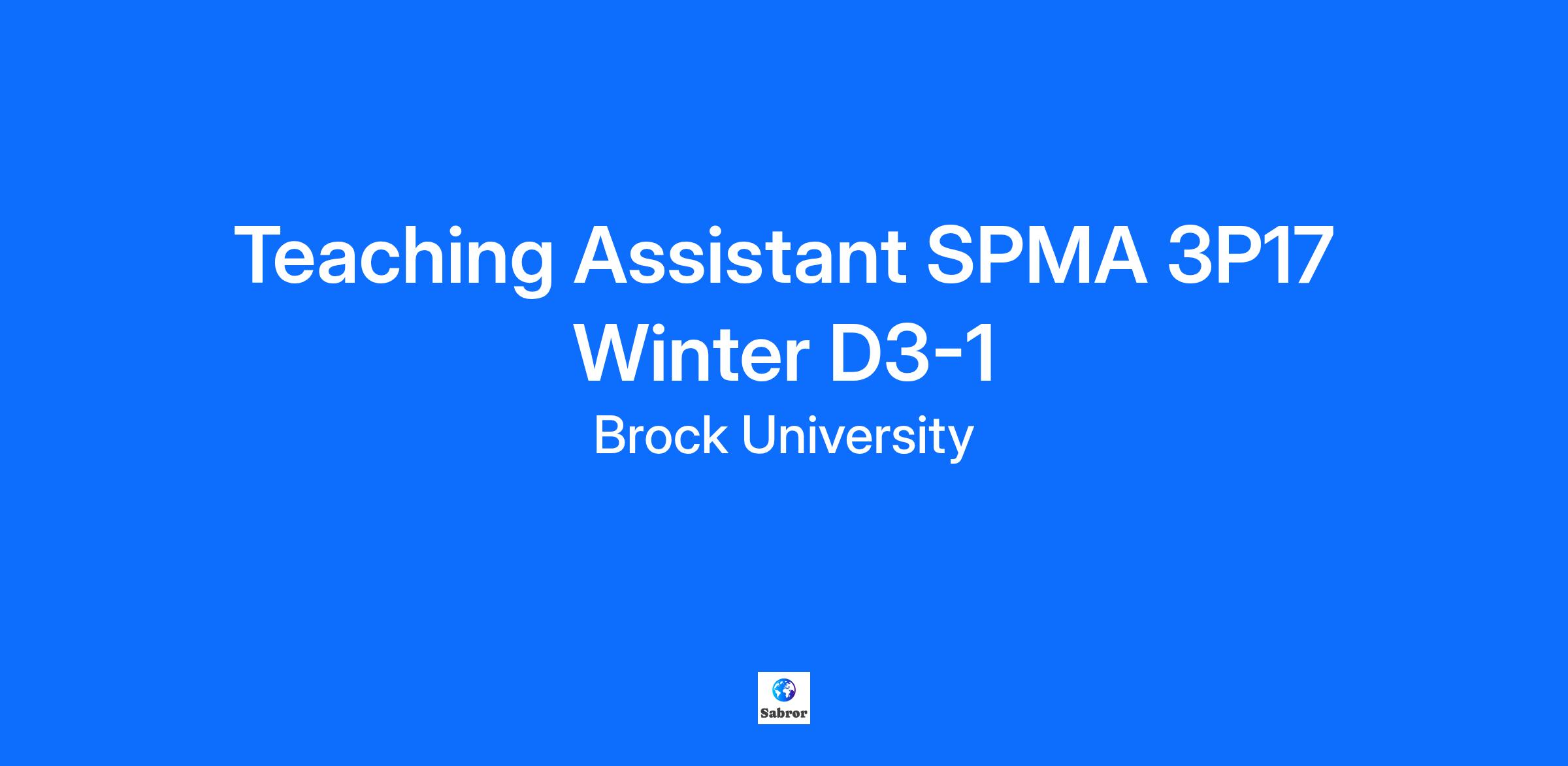 Teaching Assistant SPMA 3P17 Winter D3-1