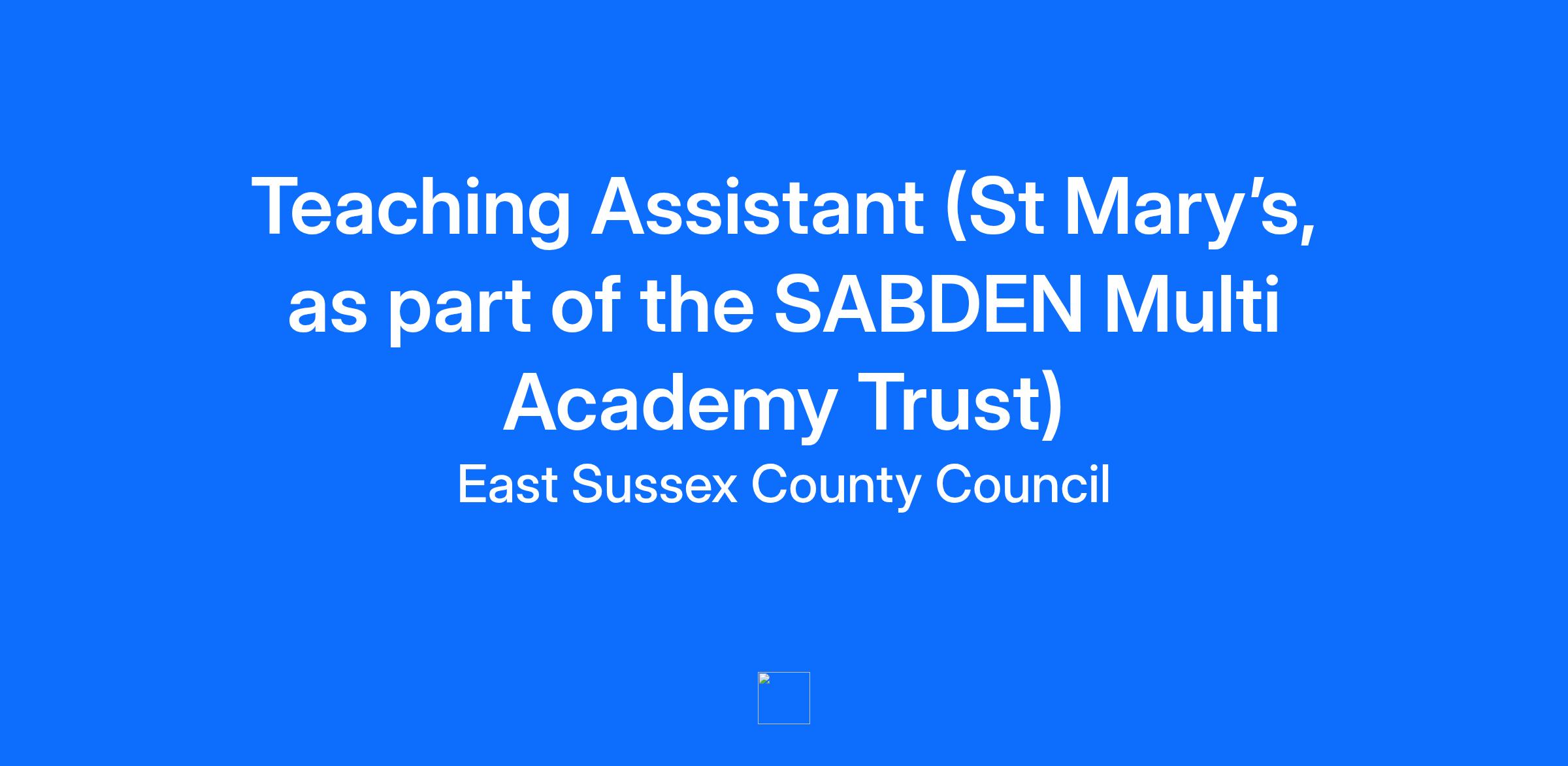 Hours of work: 32.5 Working pattern: Part-time, Term-time only (As the position is part-time/term-time only, the above salary will be pro rata) Closing date: 12 noon, Thursday 8th January 2026 For more information and to apply for the above post, please contact: St Mary’s, as part of the SABDEN Multi Academy Trust Maynards Green Heathfield East Sussex TN38 9QU Phone: 01323 691000 Email: Office.sm@sabden.org.uk Website: www.sabden.org.uk Please note, we do not accept CVs. St Mary’s School Teaching Assistant 3 Permanent - Term Time Only 30 hours per week 39 weeks worked per year, 46.2 weeks paid per year (FTE Grade 4/SSP09-10 £25,185 to £25,583) Pro-rata salary starting from £18,142 per annum The SABDEN Multi Academy Trust, is an aspirational and supportive Trust, aiming to create a warm, caring, stable, supportive environment in which all staff and pupils feel safe. We are three special schools and a vocational free school across East Sussex. We strive to discover success through learning, self-belief and achievement. Pupils are empowered to take responsibility through a personalised curriculum supported by secure systems. St Mary’s School is seeking to appoint a number of Teaching Assistants across our school, who are innovative, enthusiastic and have empathy towards children with SEN. You are someone who: • Enjoys being part of a tutor team that supports pupils to learn inside and outside of the classroom. • Understands the benefits of a bespoke curriculum for vulnerable, hard to reach children. • Feels they could effectively manage pupils in the classroom and outdoors in a range of contexts. • Would like to secure a range of coaching qualifications and outdoor skills as part of your personal CPD. • Is able to reflect on their own practice to improve the outcomes for our pupils. You will need to be: • A highly skilled communicator • Prepared to manage pupils with a range of complex needs • Can Inspire and Motivate pupils to want to learn new skills • A person who is calm, consistent and has high expectations • A person who can follow the School structure, policies and procedures with the highest level of consistency The working pattern is two days per week, Monday to Friday, from at least 08:30/45am to 15/15:15pm, term time only. Working hours to be discussed at interview and agreed on successful appointment. We are a friendly and supportive team, with additional benefits, such as free daily lunch. The successful candidate will be joining a Trust and school that continues to be ambitious in its drive to improve outcomes for our pupils. You will join a highly dedicated and professional staff team and be part of a supportive working and learning environment, where your professional development is highly valued. The SABDEN Multi Academy Trust are also committed to professional development and have strong induction, ECT and unqualified teacher programmes. For an application pack, please visit the vacancy section of the SABDEN Multi Academy Trust website here: www.sabden.org.uk/216/vacancies The closing date for completed applications is by midday, Thursday 8th January 2026 Please send completed applications to recruitment@sabden.org.uk Please note CVs will not be accepted. For further information about SABDEN please visit our website here: www.sabden.org.uk The school has a proven commitment to 'Equality of Opportunity' and actively promotes the welfare and safeguarding of young people. Successful applicants will be subject to an enhanced check from the Disclosure and Debarring.