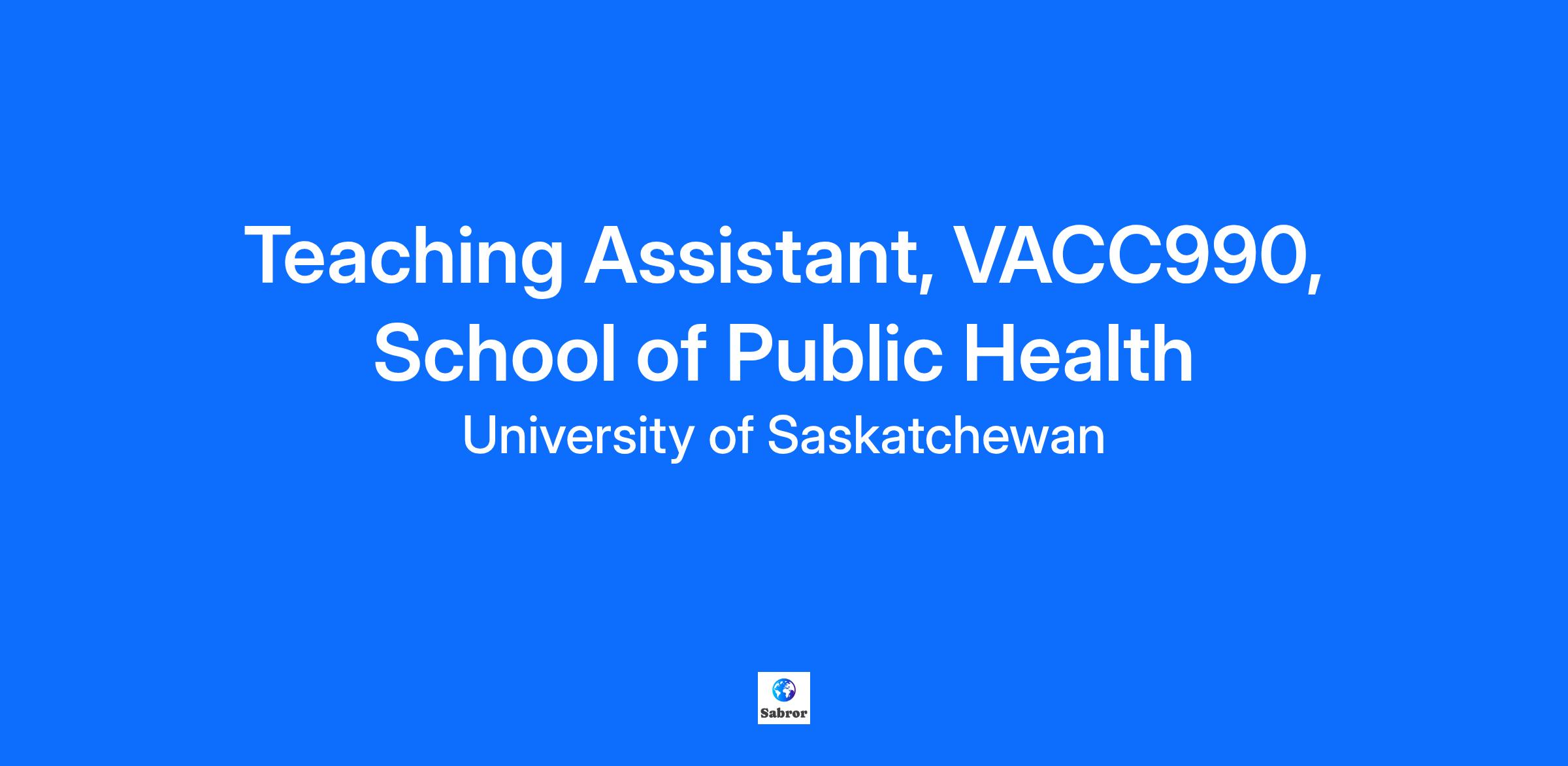 Teaching Assistant, VACC990, School of Public Health Rate of Pay: See current rates of pay Required Number of Hours: 260 hours during the academic term or 10 hours per week Duration of Employment: 2025 Fall Session Course Name, Abbreviation and Number: VACC 990 – Graduate Seminar Start and End Dates: September 1 – April 30, 2025 Duties: In the appointment of Teaching Assistant, your general duties and responsibilities will be as follows: Developing assignment questions Marking exams, assignments, online posts, helping with securing guest speakers, and hosting online office hours to review exam grades. Hosting class-based online group activities. Hosting on-campus classes You will report directly to your supervisor Dr. Suresh Tikoo Qualifications: (Skills and Abilities) Enrollment in any health-related graduate program. To Apply: Interested applicants must include the following in their application: cover letter, curriculum vitae via email to: suresh.tikoo@usask.ca no later than September 24, 2025. Inquiries for this position can be directed to Dr. Tikoo. Where a graduate student is appointed to this position, it will be in scope of PSAC Department: School of Public Health Status: Term Employment Group: Graduate Students - PSAC Rate of Pay: Current rates of pay Posted Date: 9/17/2025 Closing Date: 9/24/2025 Number of Openings: 1 Work Location: On Campus #LI-DNI The University of Saskatchewan aspires to be what the world needs and embraces equity, diversity and inclusion as foundational to excellence and innovation. We actively seek to create a welcoming environment where all individuals feel empowered to thrive, contribute, and grow. Applications from equity-deserving groups are encouraged as part of our ongoing efforts to reflect the diversity of the communities we serve: EDI Framework for Action. We continue to grow our partnerships with Indigenous communities across the province, nationally, and internationally and value the unique perspective that Indigenous employees provide to strengthen these relationships. Verification of Indigenous Membership/Citizenship at the University of Saskatchewan is led and determined by the deybwewin | taapwaywin | tapwewin: Indigenous Truth policy and the Standing Committee in accordance with the processes developed to enact the policy. Successful candidates that assert Indigenous membership/citizenship will be asked to complete the verification process of Indigenous membership/citizenship with documentation. The University of Saskatchewan provides an accessible and inclusive workplace. Should you require support through any stage of the recruitment process, please contact Human Resources for assistance.