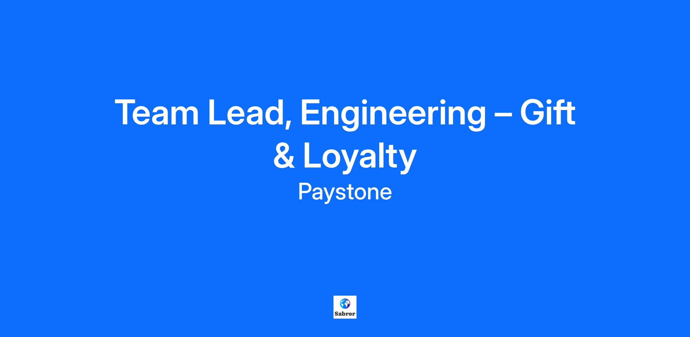 Team Lead, Engineering – Gift & Loyalty