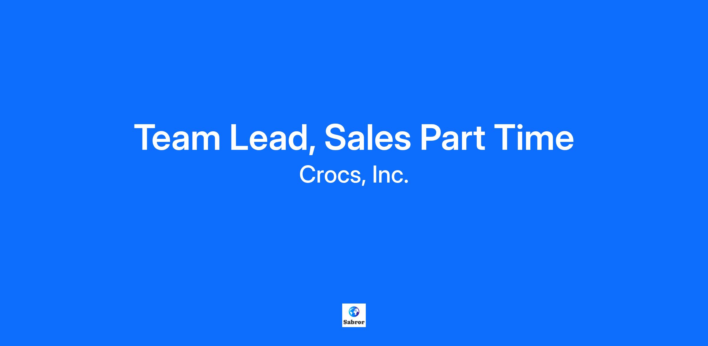 At Crocs, Inc., every career offers a chance to make a real impact. No two journeys look the same. And that's exactly how we like it. Whether you’re welcoming customers into our stores, collaborating with global teams at our headquarters, or keeping operations moving at our distribution centers, your impact is real and valued. At Crocs, Inc. you’re not expected to fit a mold. You’re encouraged to break it and create something better. Overview As a Sales Team Lead you will play a pivotal role in providing valuable experiences and world class service to our consumers every day. In this position, you will be responsible for overseeing all opening and closing procedures, educating team members on products and promotions, and driving daily sales targets to achieve company goals and initiatives. This role offers the opportunity to grow alongside some of the industry’s finest teammates and partners.What You'll Do Deliver outstanding service to our consumers using our C.H.A.R.M.S service model Proactively contribute to creating an enjoyable team environment that encourages the sharing of suggestions, ideas and concerns Coordinate, delegate, prioritize and meet store deadlines, ensuring follow up on daily activities within the building Learn & assist in various departments within the store including consumer service, product knowledge and placement, visual presentation, and stock room management. Support team members in the daily execution of retail operations i.e., POS system management and use, stock replenishment, pricing and markdown processes, promotion of loyalty programs, and maintaining cleanliness and recovery standards Leads by example and collaborates with Store Management to improve personal key performance indicators through sales-driven techniques Adhere HEYDUDE Asset Protection policies and procedures, including shortage prevention, inventory control, and compliance proceduresWhat You'll Bring to the Table Must be 18 years or older 2 – 3 years of total retail experience; with a preference for candidates with previous store leadership roles Demonstrated leadership abilities, with a passion for challenging, empowering, and driving team results Proven communication skills (written and verbal) to store team, operations managers, District Managers & corporate partners Valid driver’s license and clean driving record may be required Desire to succeed in a high growth, fast-paced retail environment Flexibility in work schedule, including availability for nights, weekends, holidays and extended hours, with regular attendance being essential The work environment and physical demands described here are representative of those that an employee will encounter while performing the essential functions of this job. Reasonable accommodations may be made to enable individuals with disabilities to perform the essential functions. Ability to move merchandise with appropriate equipment to and from backroom and sales floor daily Ability to place and arrange items on all shelves and racks daily Ability to climb and descend ladders carrying merchandise daily Ability to lift 30 pounds or more with assistance daily Ability to be on your feet for at least 8 hours per shift and to continuously move around all areas of the store daily daily Ability to also be required to stand, walk, kneel, or balance for a duration of time daily Ability to read instructions, reports, and information on computer/register screens and to key information into computer daily The Company is an Equal Opportunity Employer committed to a diverse and inclusive work environment. All qualified applicants will receive consideration for employment without regard to race, color, religion, sex, sexual orientation, gender identity, national origin, or disability, or any other classification protected by law. Title: Team Lead, Sales Part Time Salary or Pay Range: - Pay is dependent on experience and geographic area. Job Category: Retail