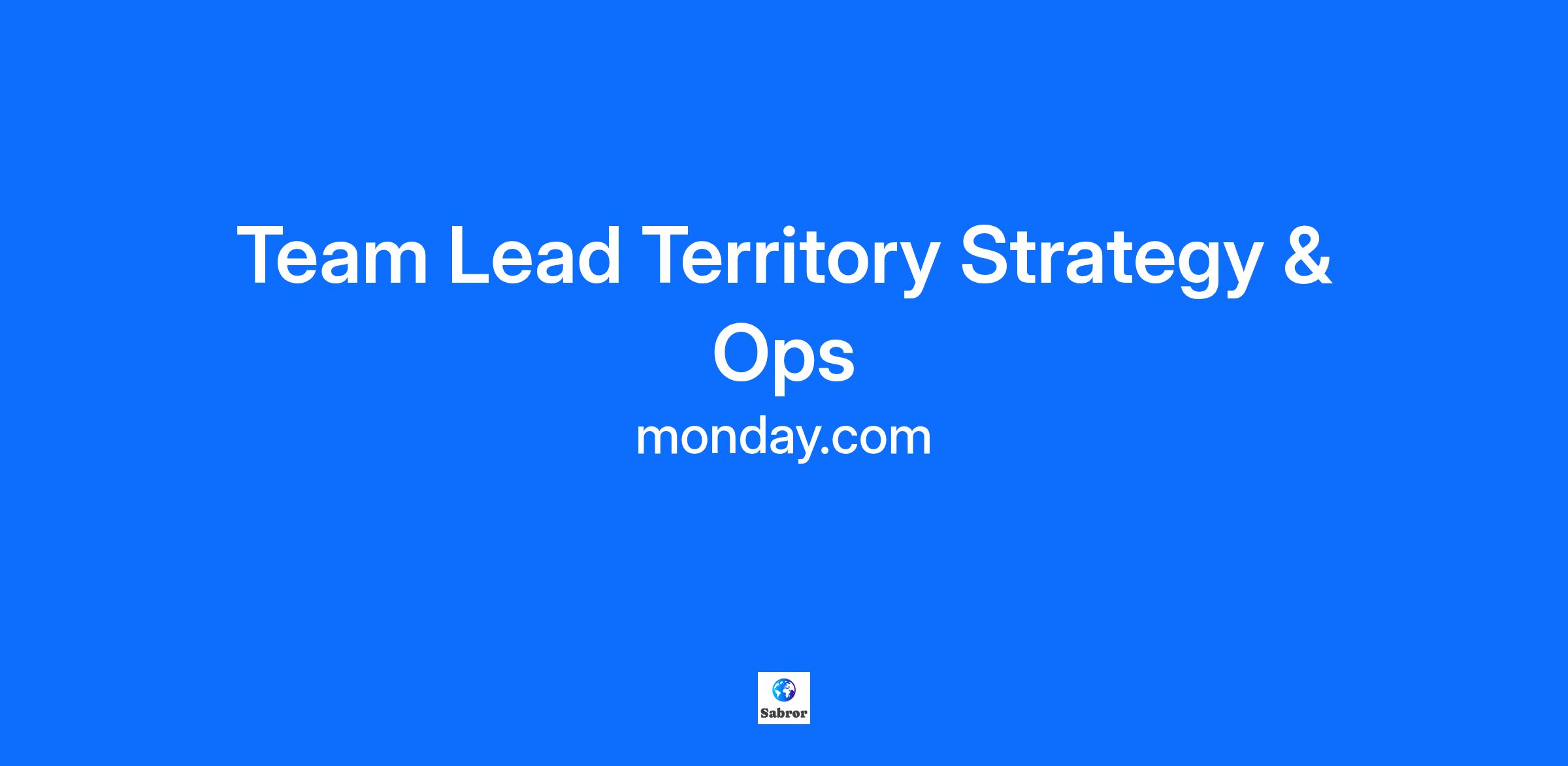 We’re looking for a strategic, analytical, and execution-oriented leader to head our Territory Strategy & Ops team, a function at the center of how we scale revenue at Monday.com. This team is responsible for designing the territory frameworks, intelligence models, and operational systems that connect market opportunity to seller success. You’ll lead a high-impact GLOBAL function that drives annual rebalancing, account segmentation, ownership governance, and AI-powered book design - partnering closely with Sales, RevOps, BizApps, and leadership across the company. If you have a passion for building structure, navigating complexity, and enabling go-to-market success at scale, this role is for you. About The Role Strategic Domains You’ll Lead 1. Annual Territory Rebalancing (Carving): Lead and execute territory planning and rebalancing across all segments and motions, ensuring alignment with growth strategy and coverage principles. 2. System Enablement & Planning Infrastructure- Partner with BizApps and GTM Systems to implement policy in Salesforce and scale territory operations through Pigment (planning tools) 3. Account Intelligence & Whitespace Strategy - Build TAM and whitespace models to guide outbound book design, segmentation, and market penetration strategy. 4. Smarter Book Design through AI - Leverage AI and analytics to optimize seller books, improving focus, conversion potential, and go-to-market productivity. Requirements What You Bring 8+ years of experience in Revenue Operations, Sales Strategy, or GTM Planning 3+ years of leadership experience, driving results in a global team Direct ownership of territory design, book structuring, or account segmentation at a fast-scaling company Experience working in or alongside large-scale SaaS organizations Familiarity with Salesforce and territory-related tooling (e.g., Pigment, Clari, Tableau etc.) Strong analytical skills and comfort working with CRM data and TAM models Ability to influence cross-functional stakeholders and communicate with clarity and structure Strategic mindset with a strong execution muscle and operational attention to detail A passionate, resilient Do-er, with a smile. Social Title null Social Description null Our Team null Position Type null